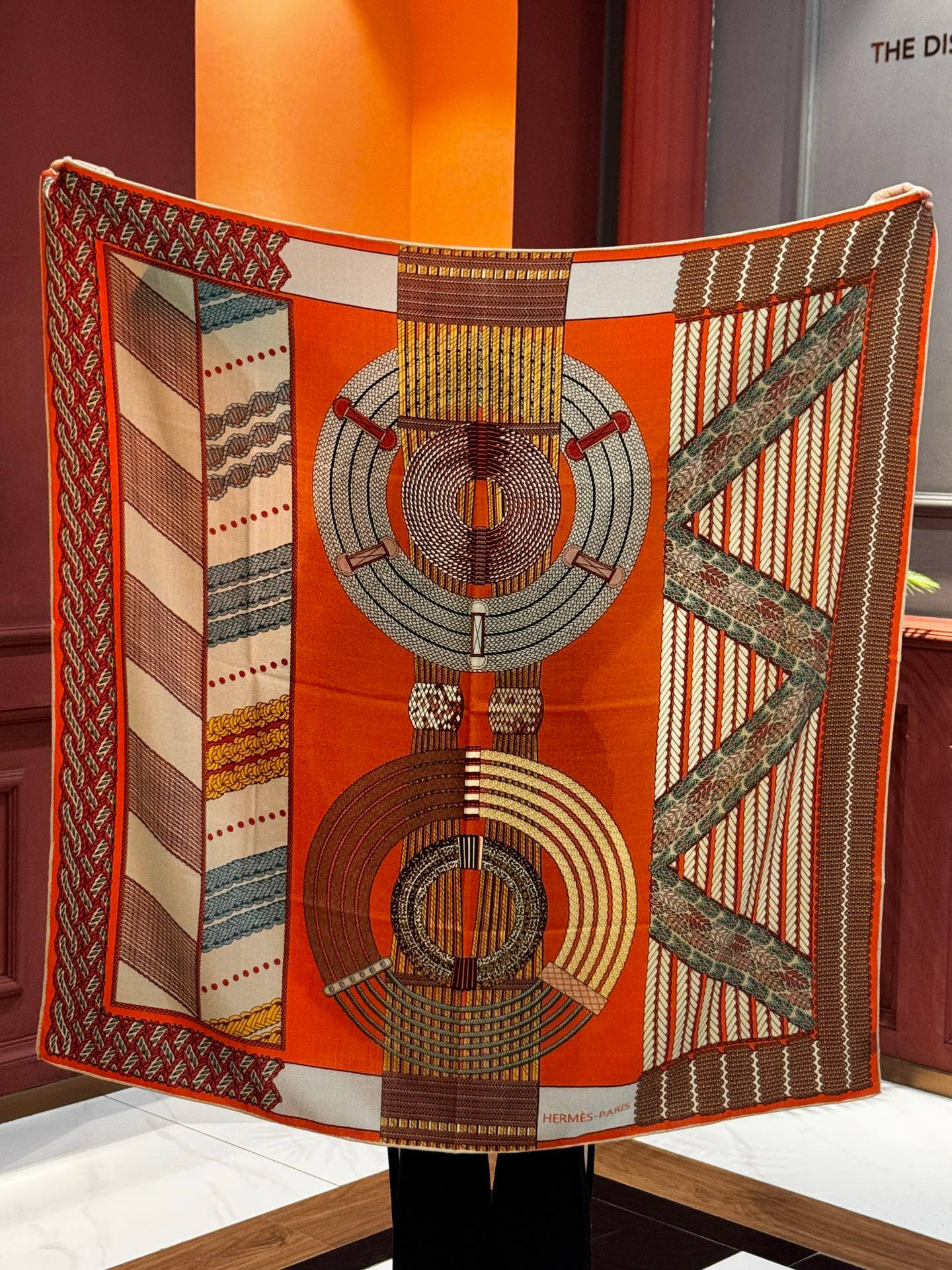 HM Dressage Tressage 140 CM Orange White Colorful Cashmere And Silk 293225