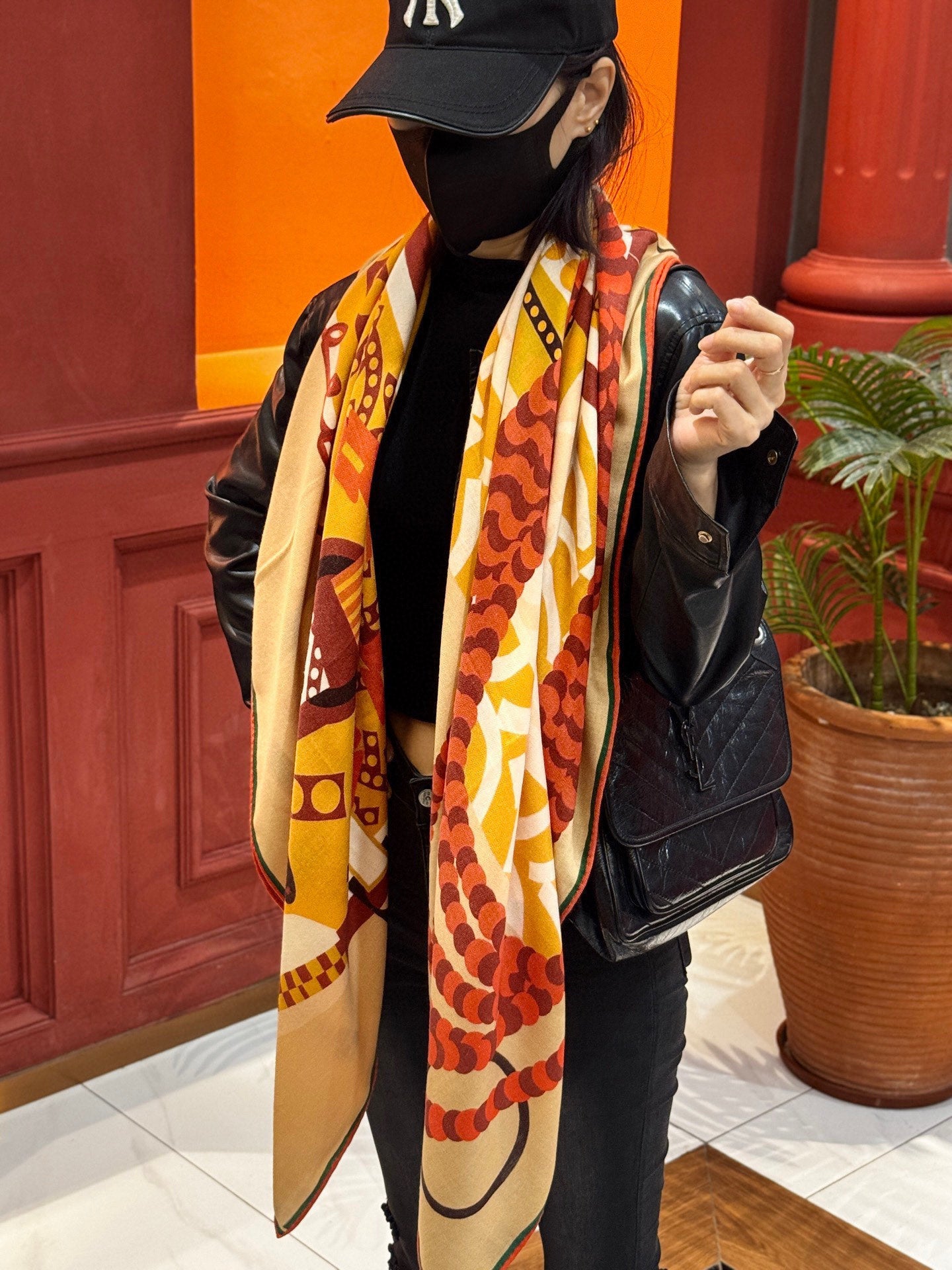 HM Dressage Tressage 140 CM Beige Red Colorful Cashmere And Silk 293229