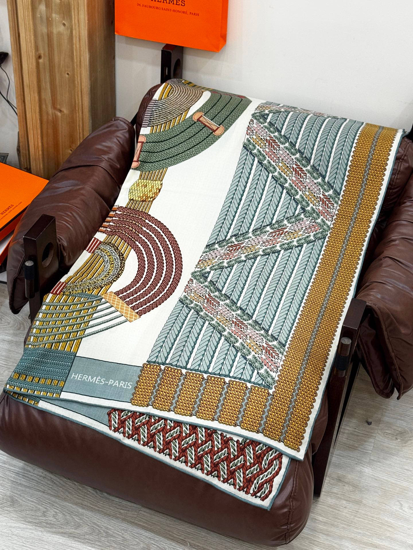HM Dressage Tressage 140 CM Yellow Green Colorful Cashmere And Silk 293222