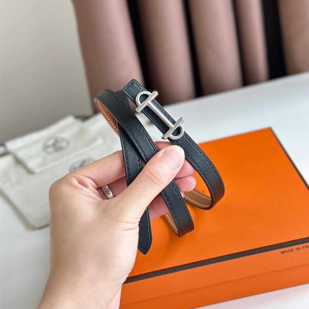 HM GAMMA BUCKLE & REVERSIBLE BRONZE BROWN AND BLACK LEATHER STRAP 13MM SILVER HARDWARE