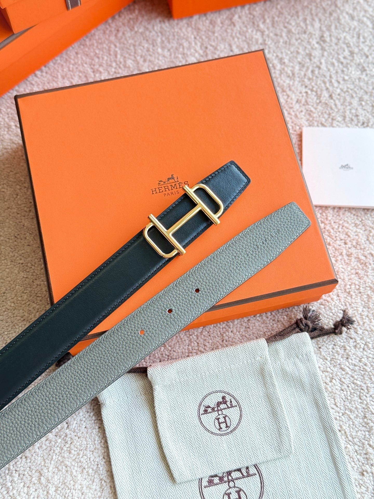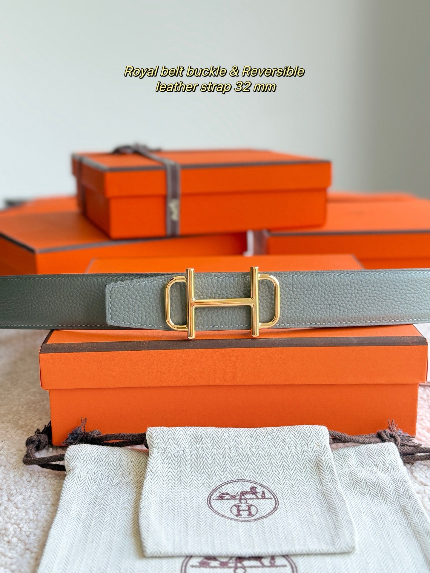HM Gold Buckle 32mm Royal Belt Gray Brown Leather 188423
