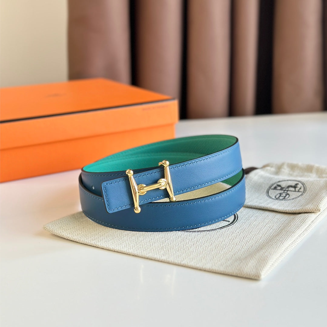 HM Gold Mors H buckle & Reversible 24 mm belt Blue Green leather 125357