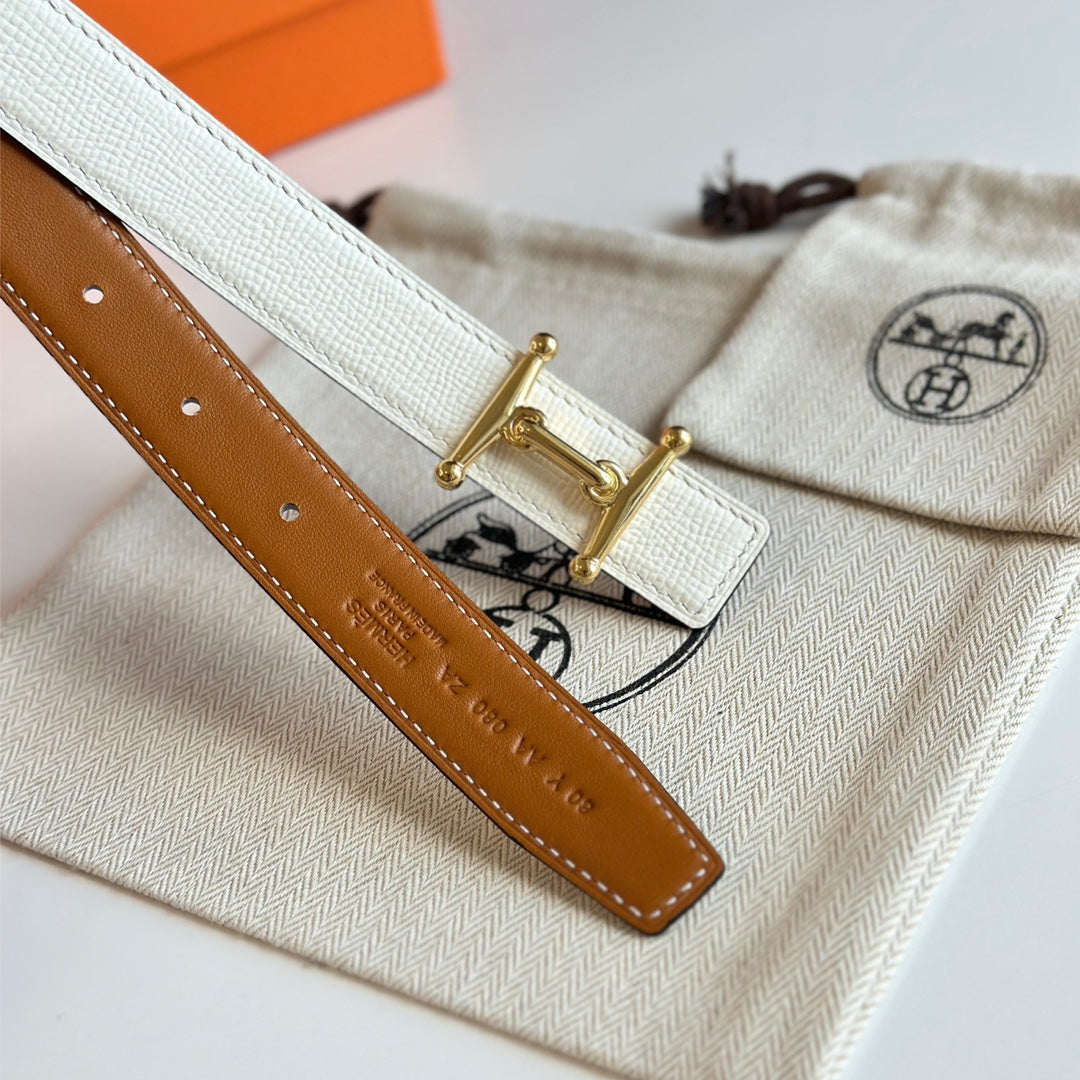 HM Gold Mors H buckle & Reversible 24 mm belt Brown White leather 125364