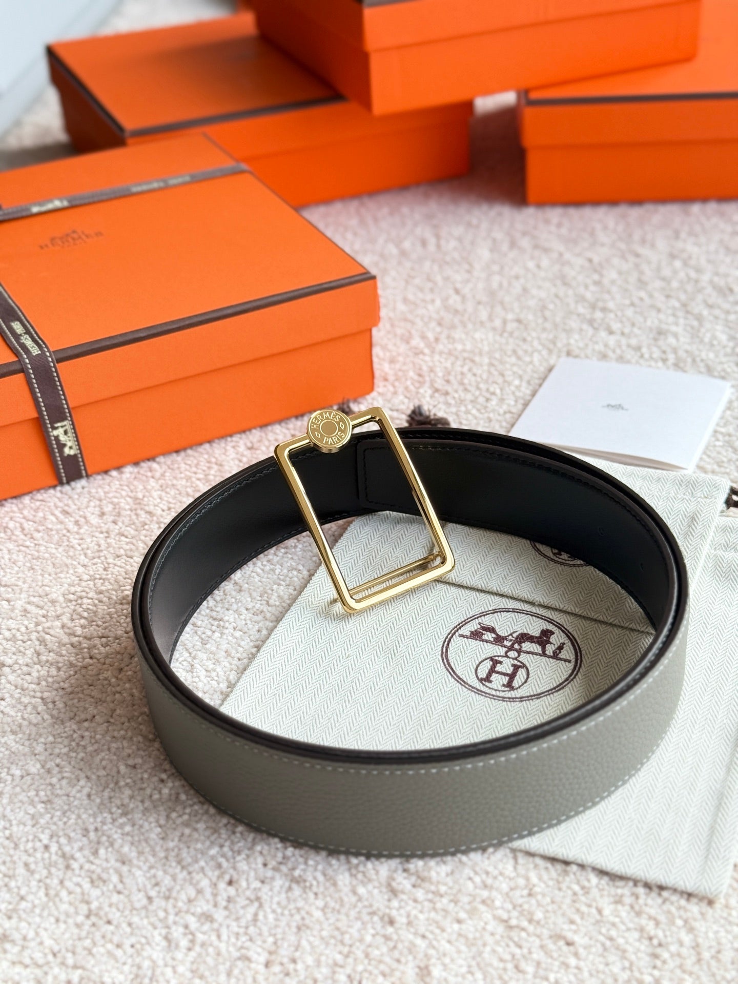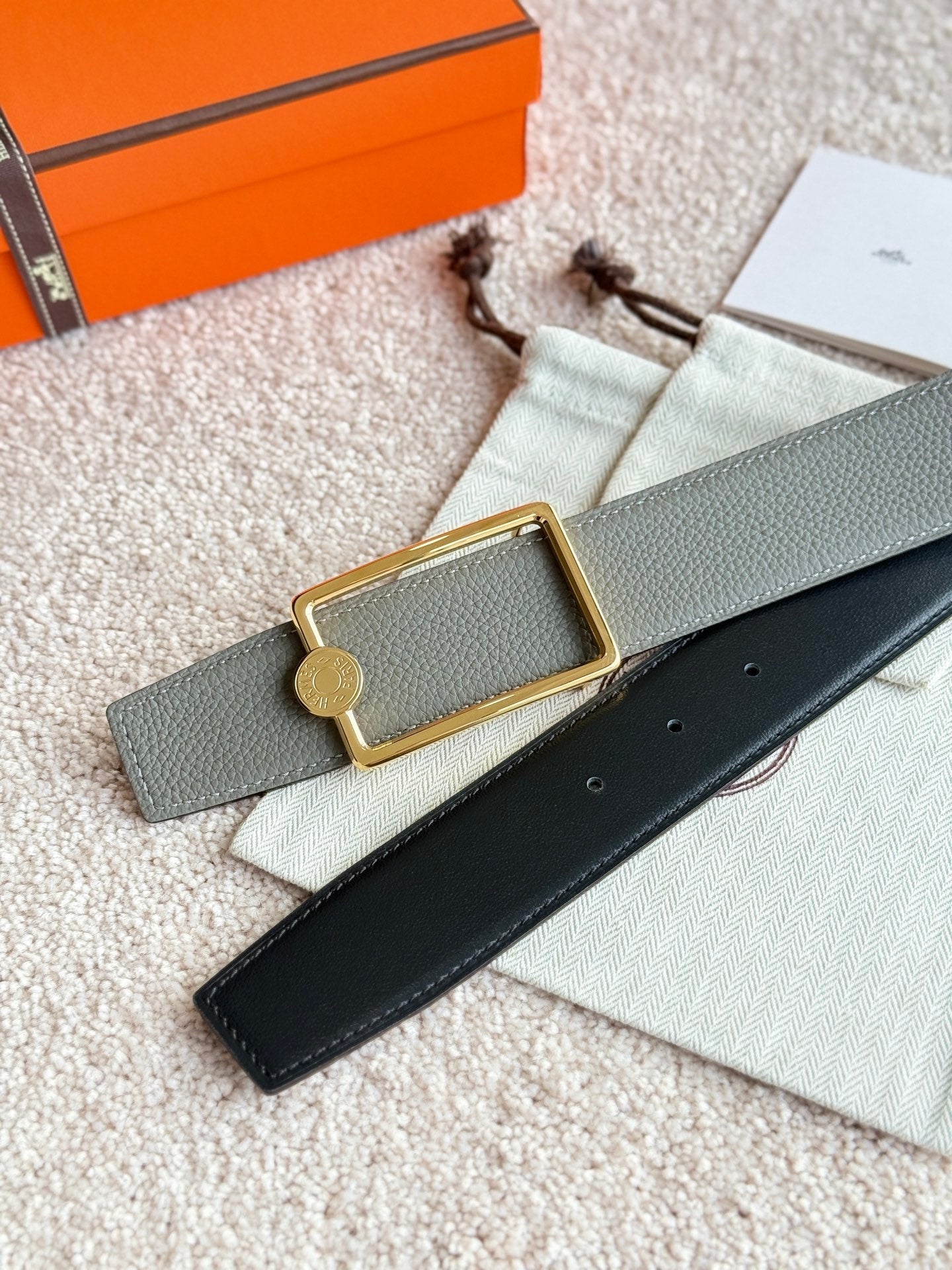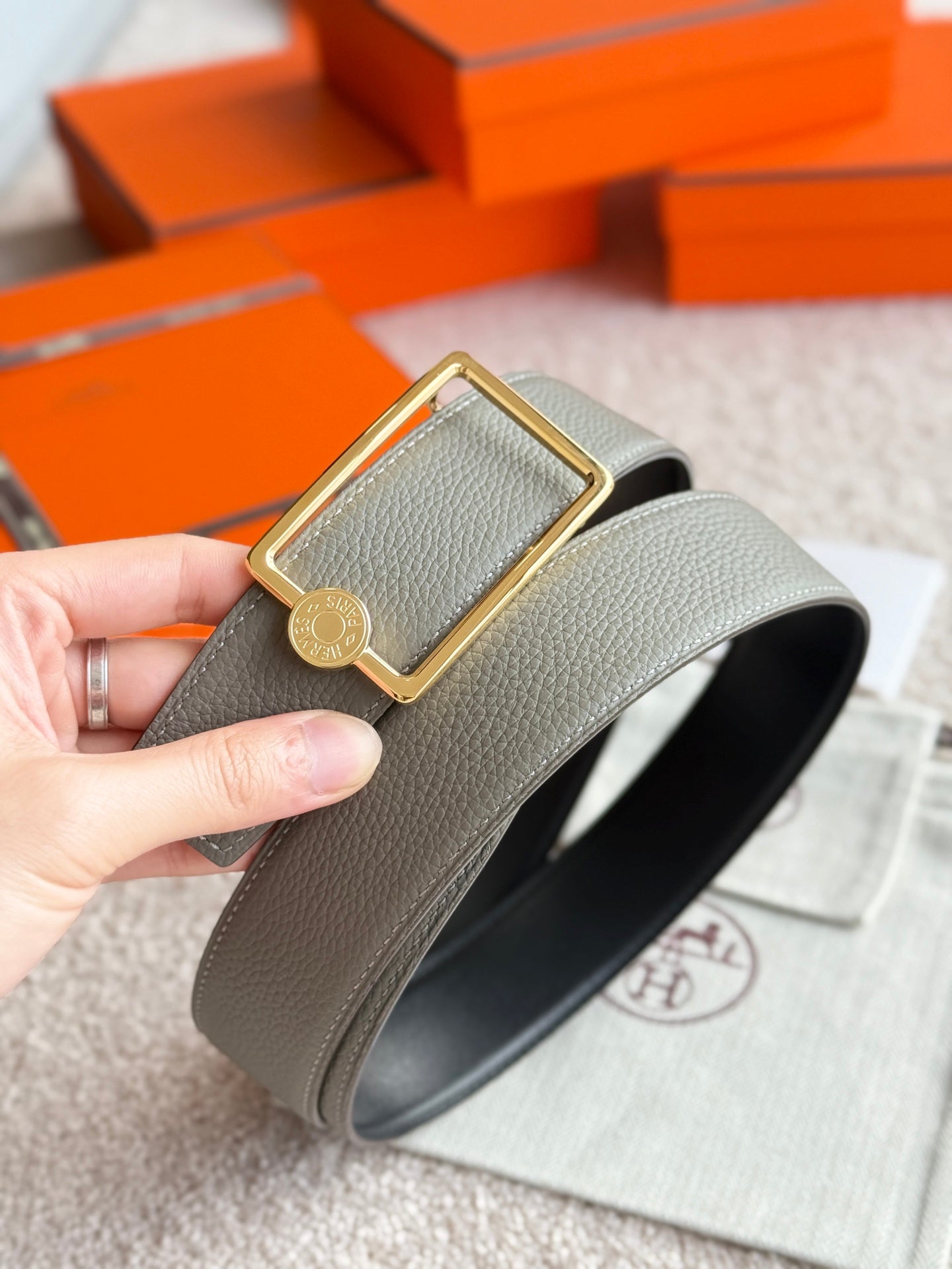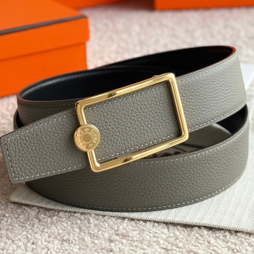 HM Gold Oscar Buckle Belt 38mm Meyer gray Leather 187783