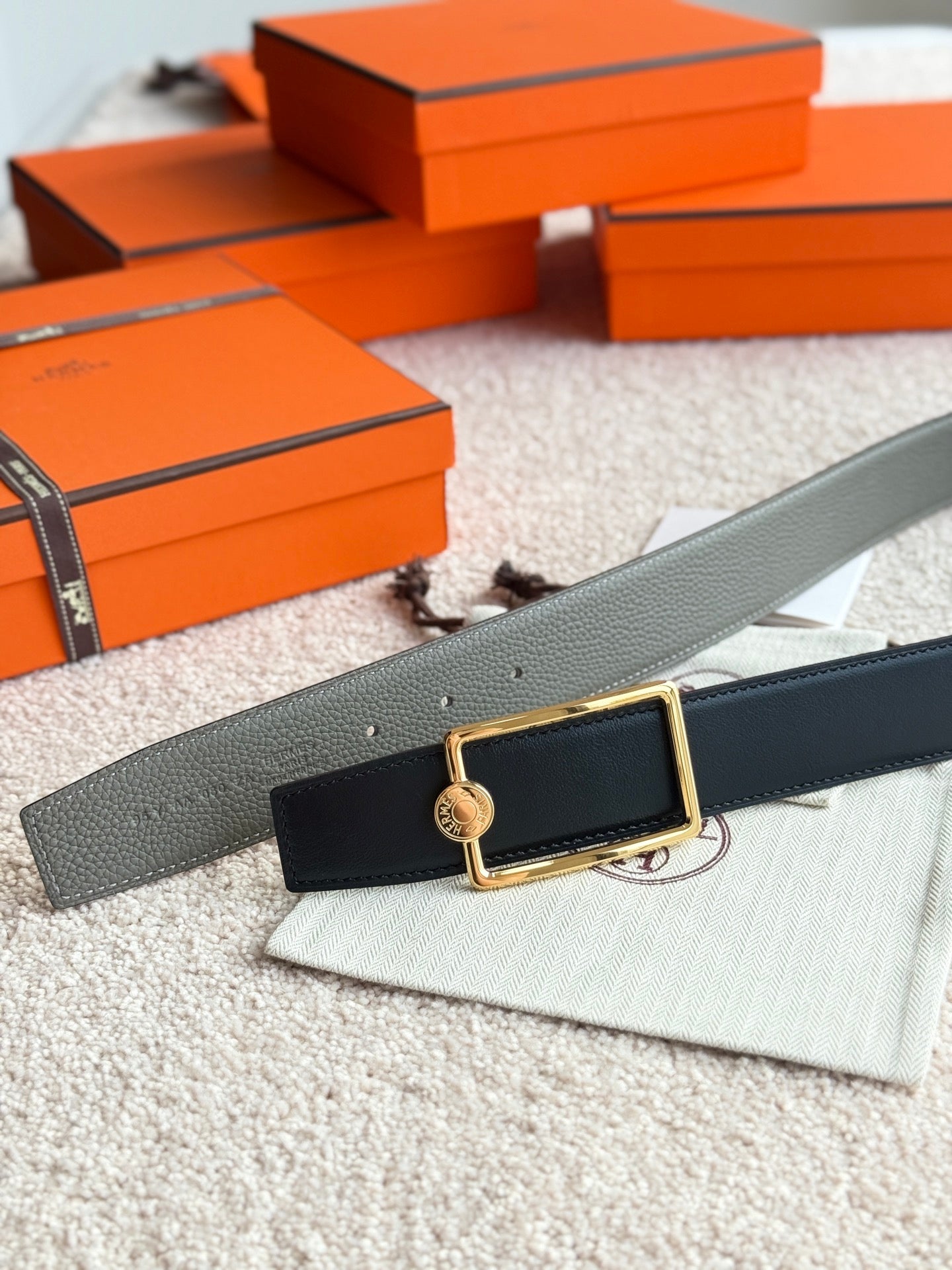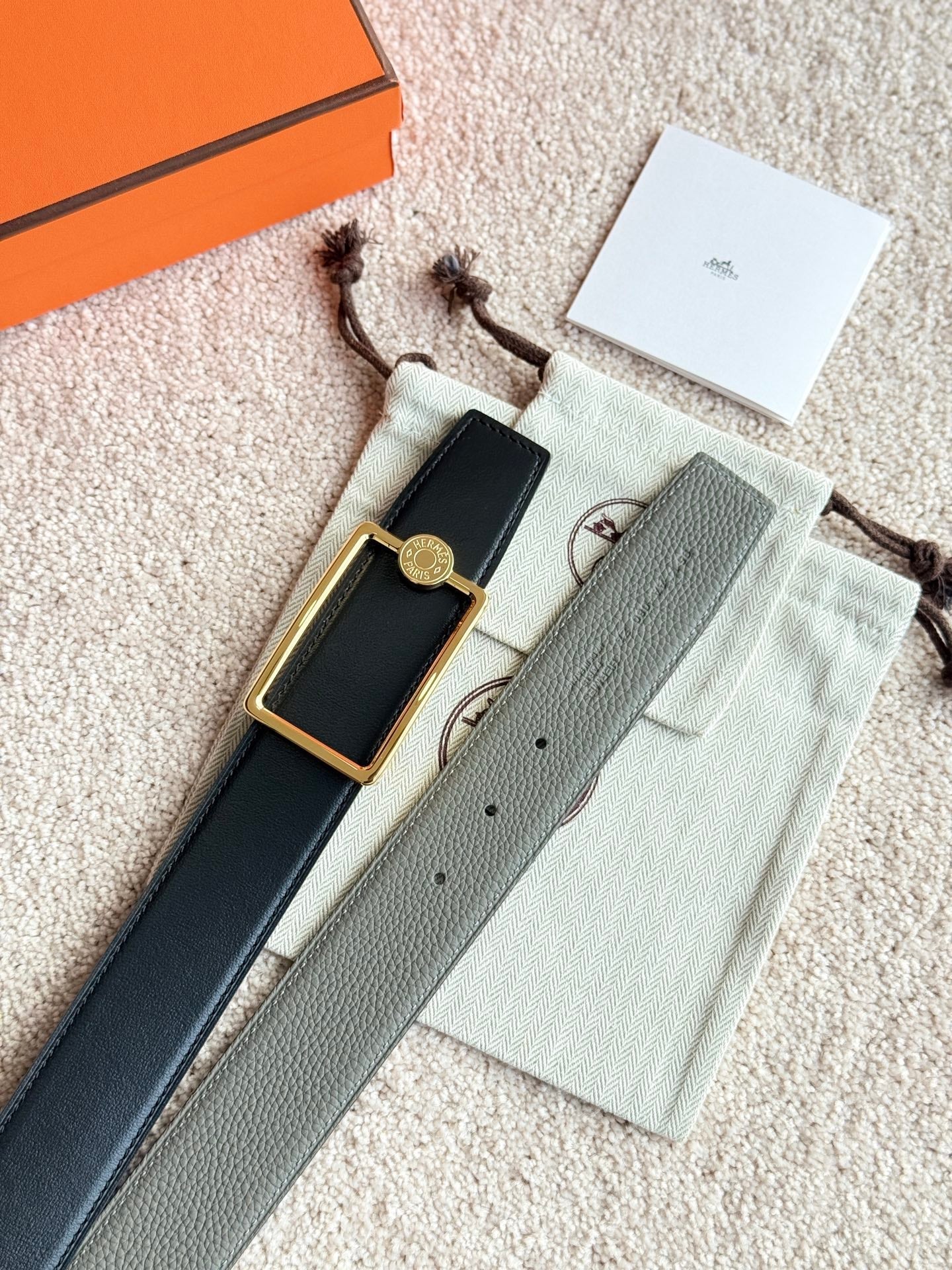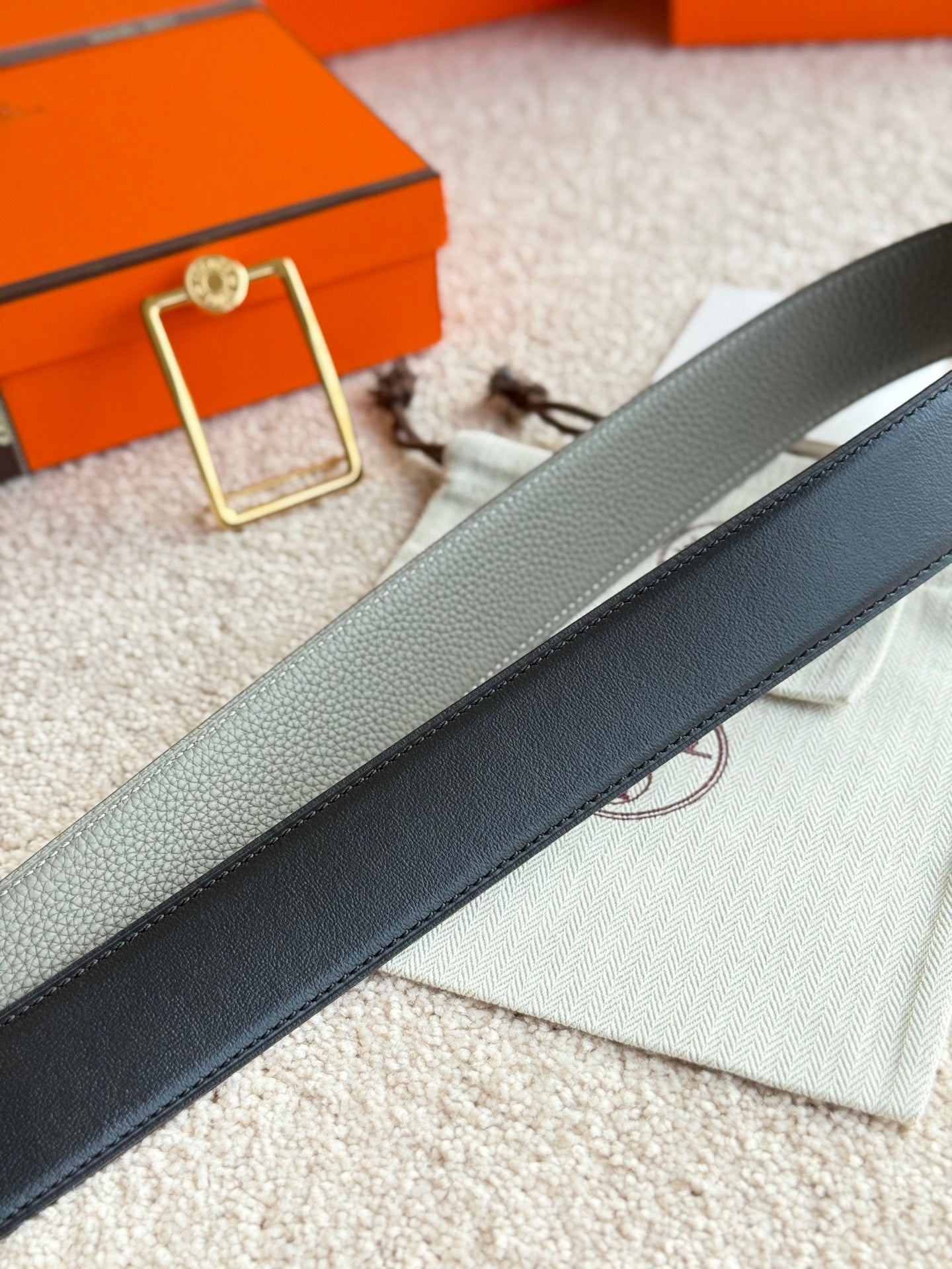 HM Gold Oscar Buckle Belt 38mm Meyer gray Leather 187783