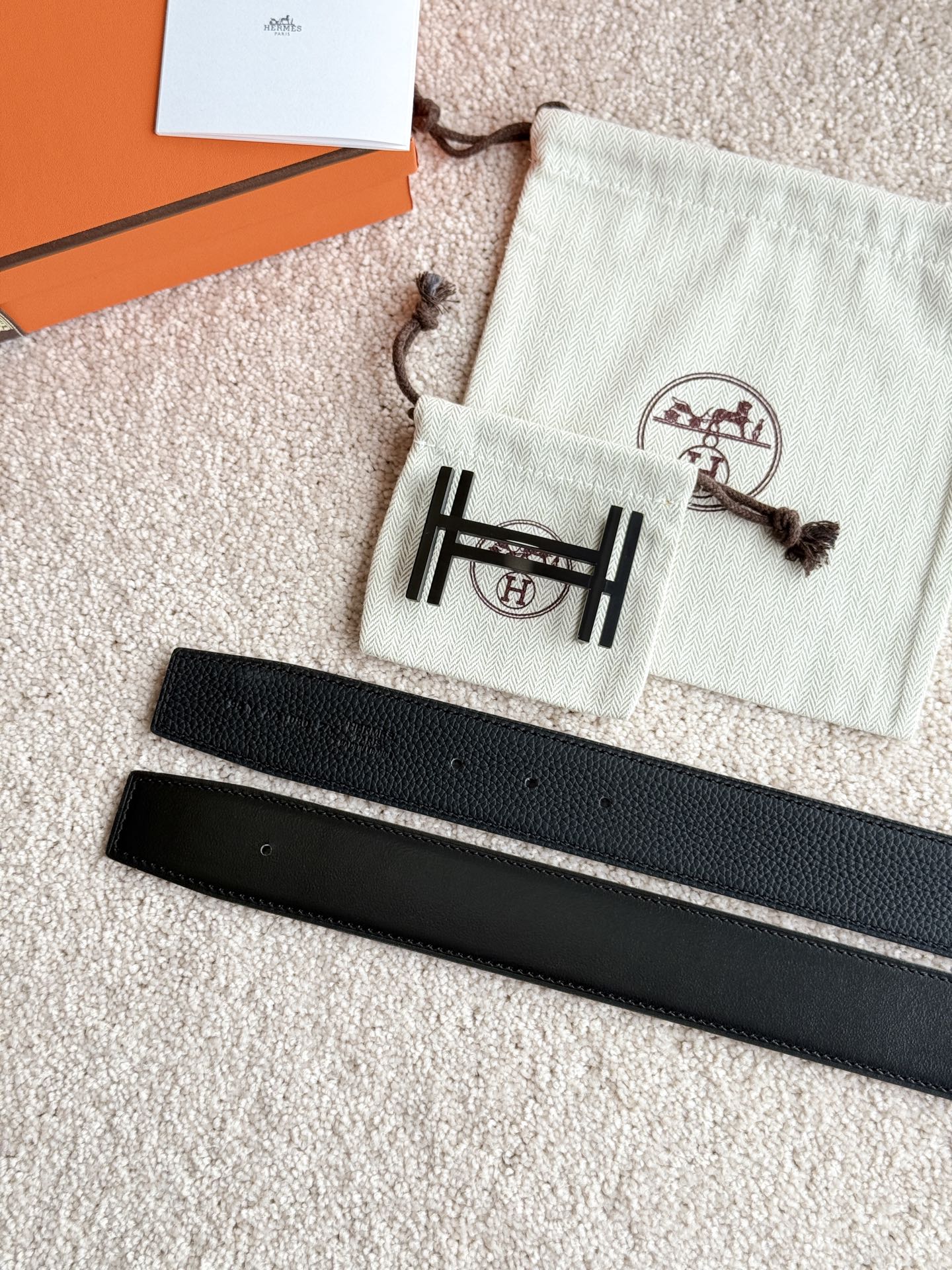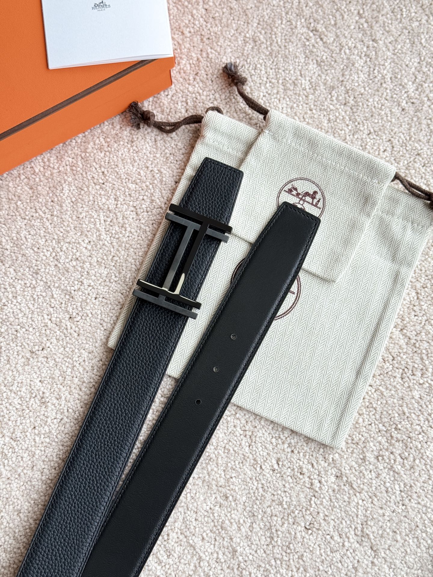 HM H Au Carre Buckle Belt 38mm Black Calfskin 187506