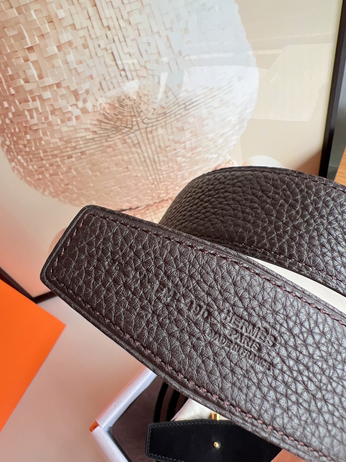HM H D'ANCRE BELT BUCKLE & REVERSIBLE CHOCOLATE BROWN LEATHER STRAP 38 MM GOLD HARDWARE