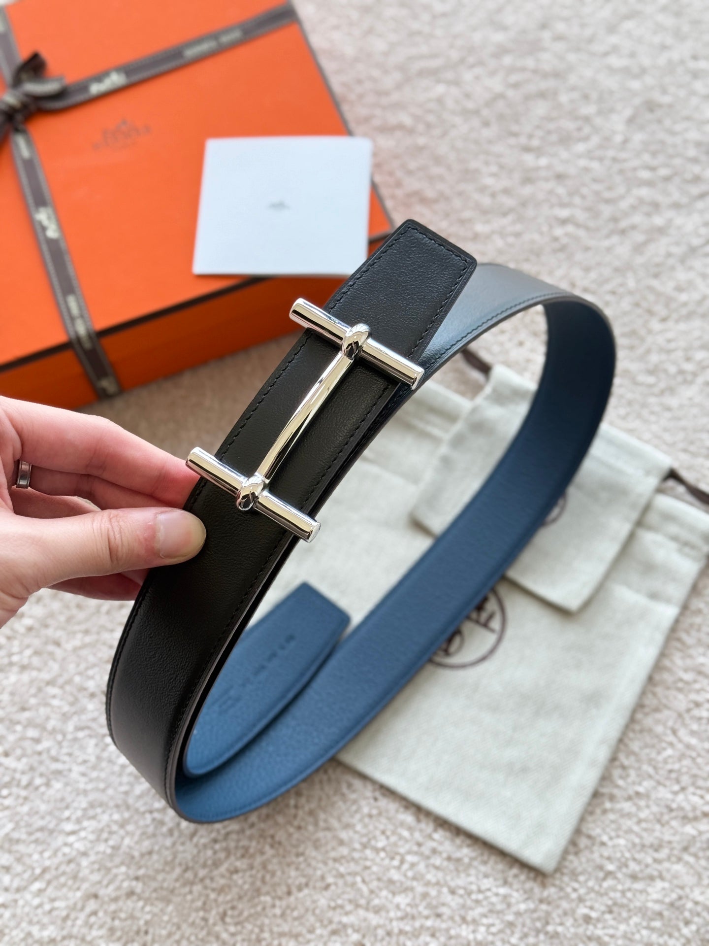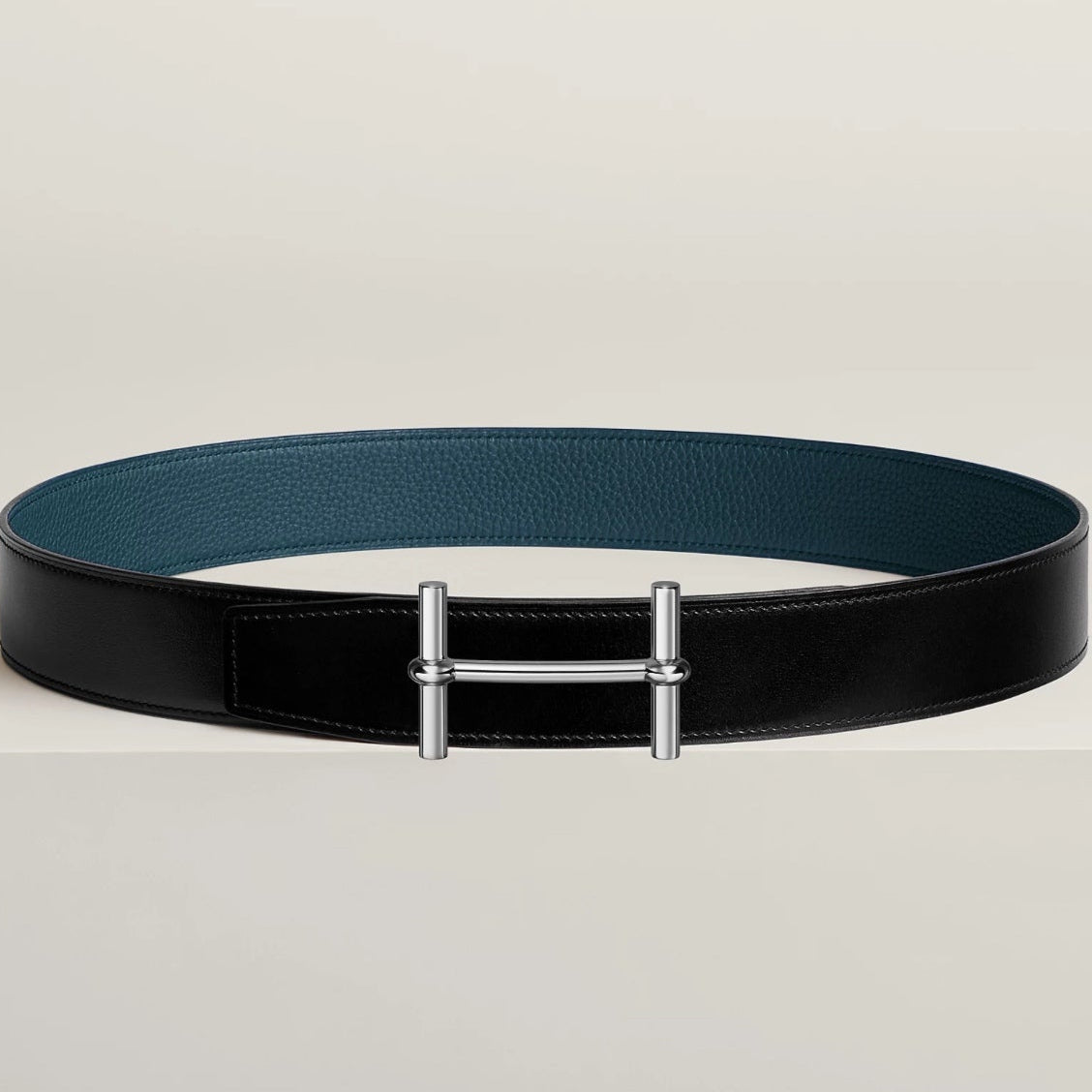 HM H D'Ancre Buckle Belt 38mm Prussian blue Black Leather 187519