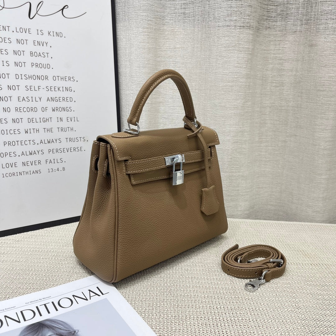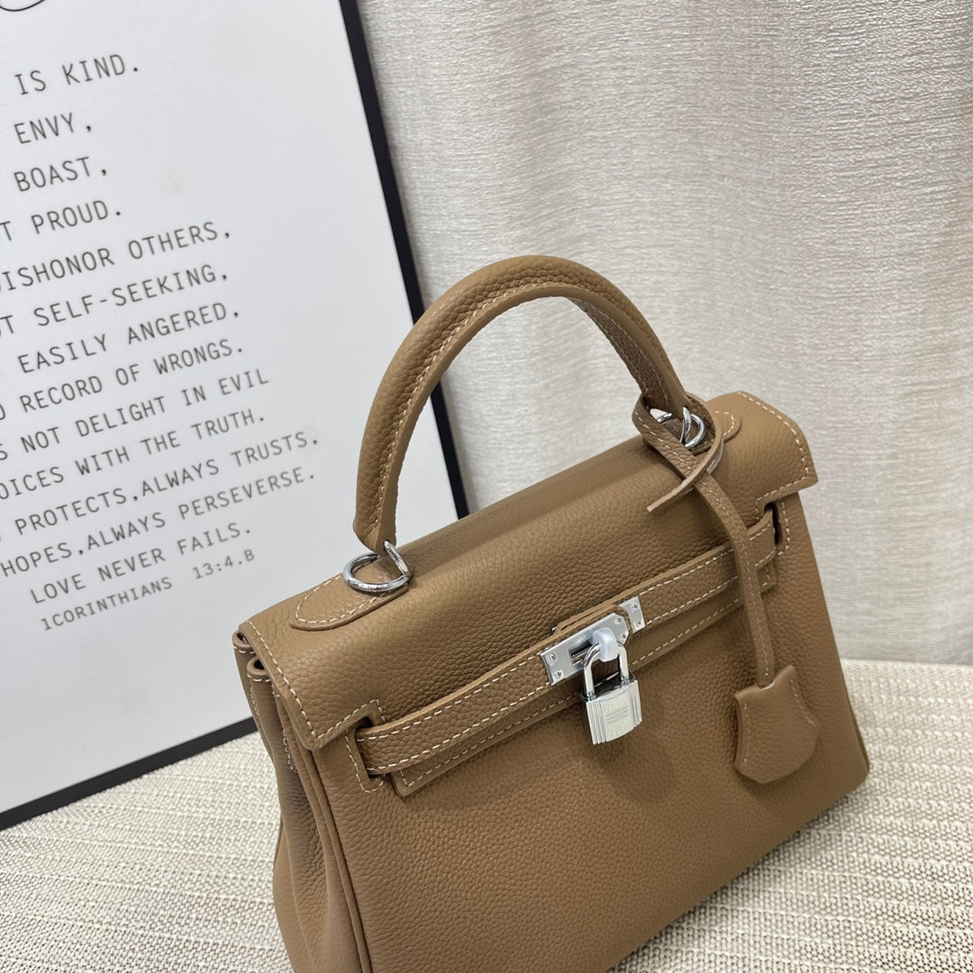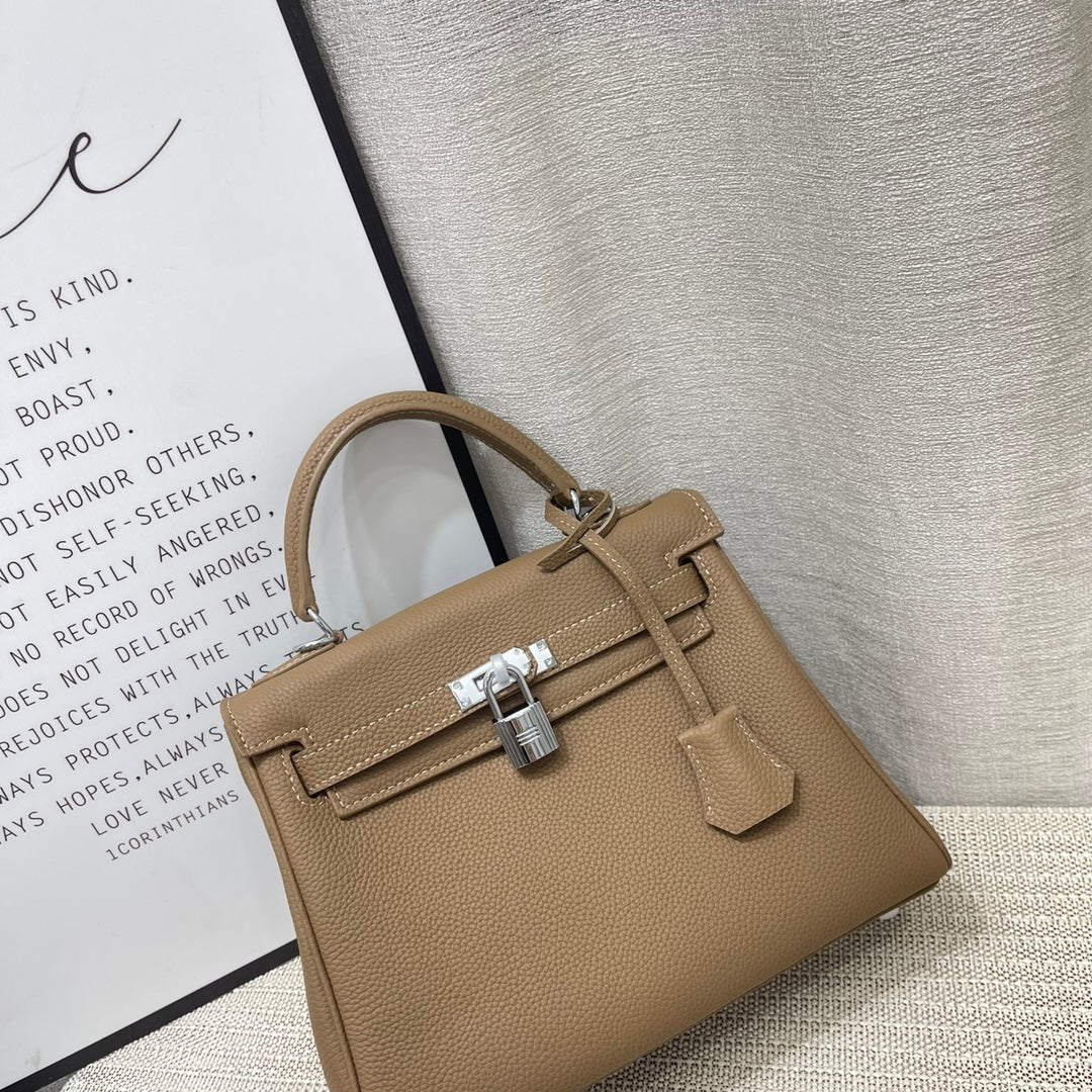 HM Kelly 25cm Etoupe Togo Leather Silver Hardware