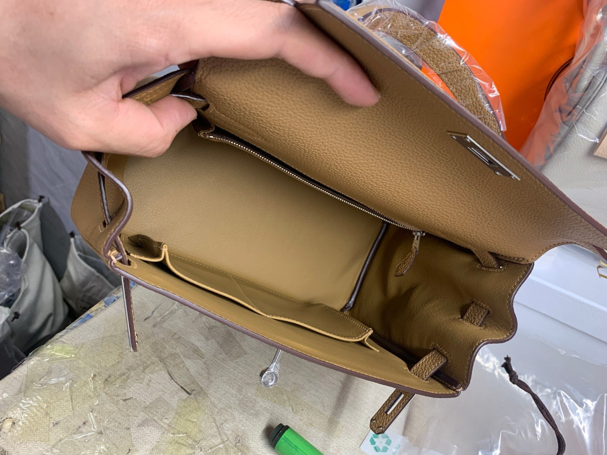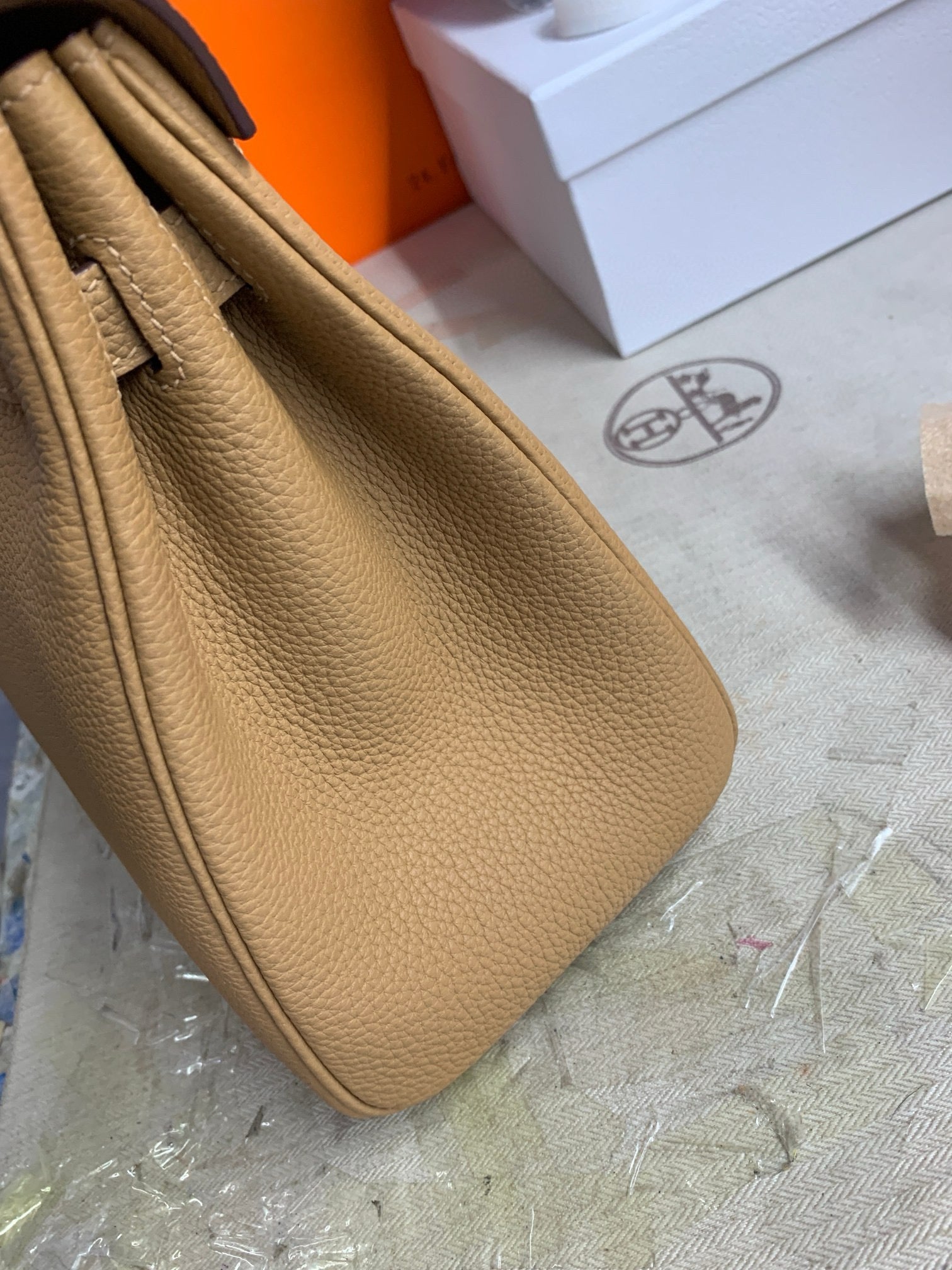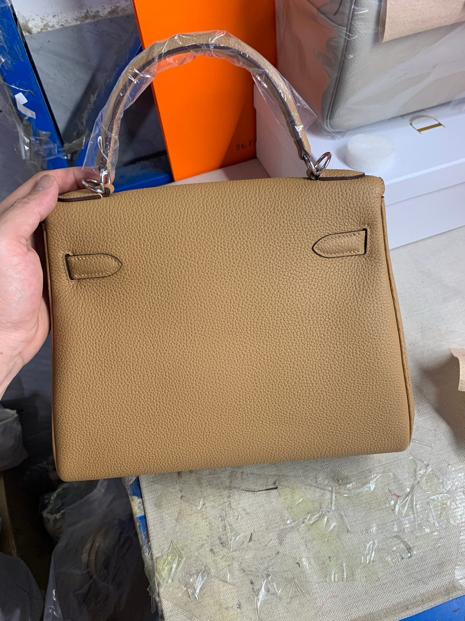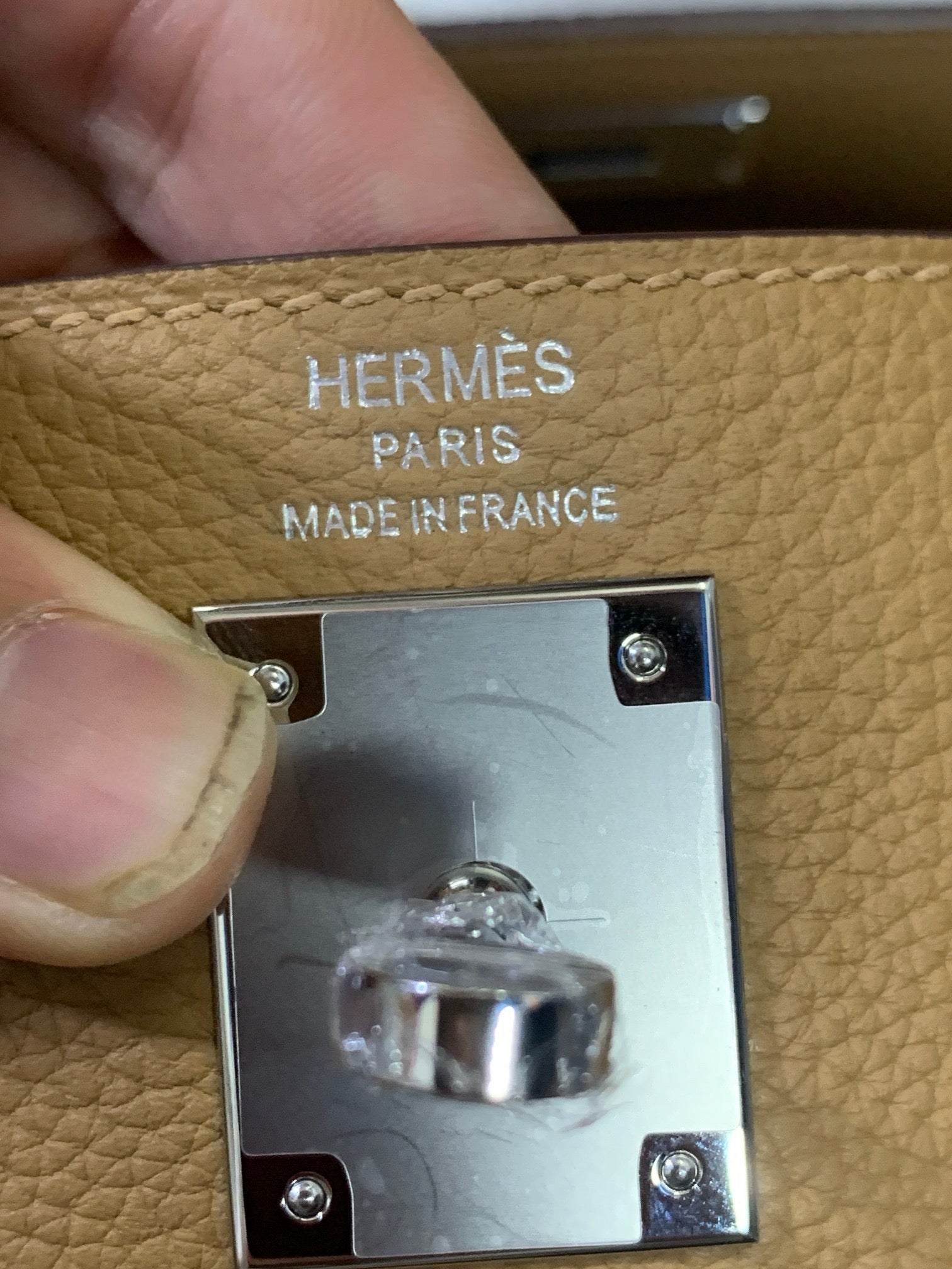 HM KELLY BEIGE TOGO SILVER HARDWARE