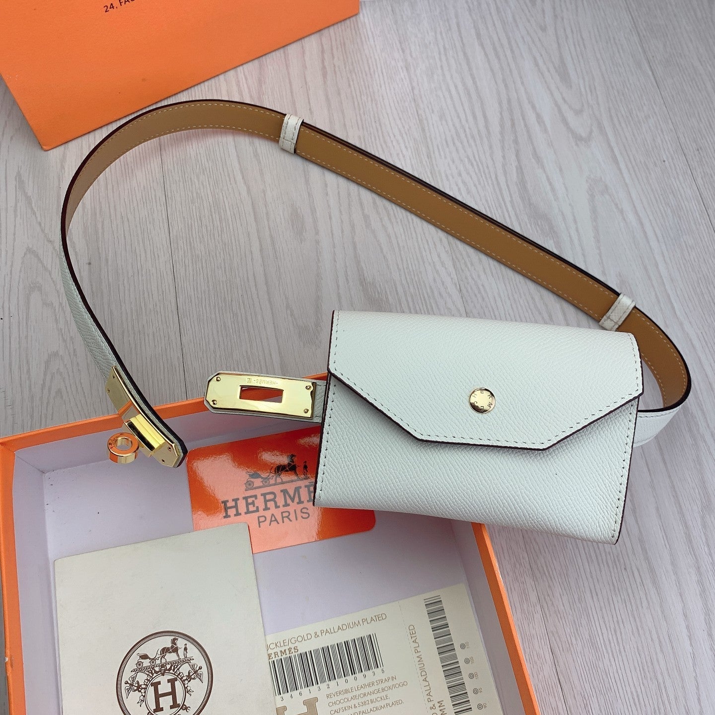 hm kelly belt 18mm with pocket white calfskin gold buckle
