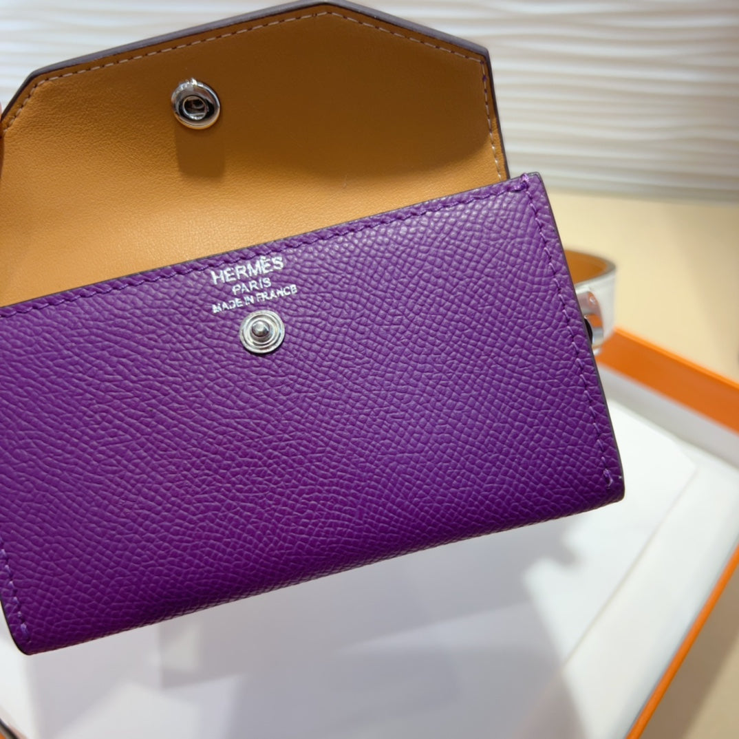 HM KELLY VIOLET PURPLE POCKET 18MM BELT WHITE LEATHER SILVER HARDWARE