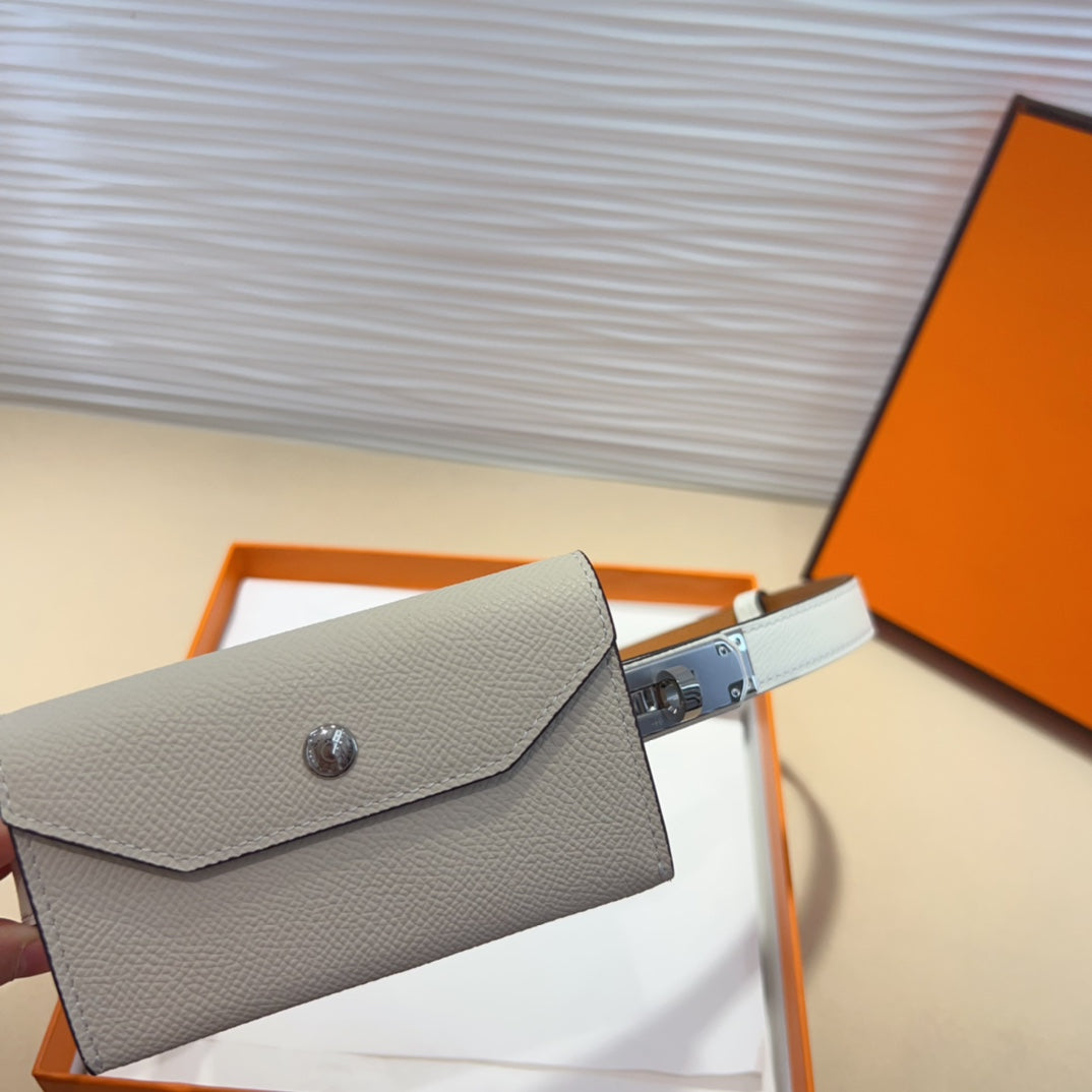 HM KELLY WHITE POCKET 18MM BELT LEATHER SILVER HARDWARE