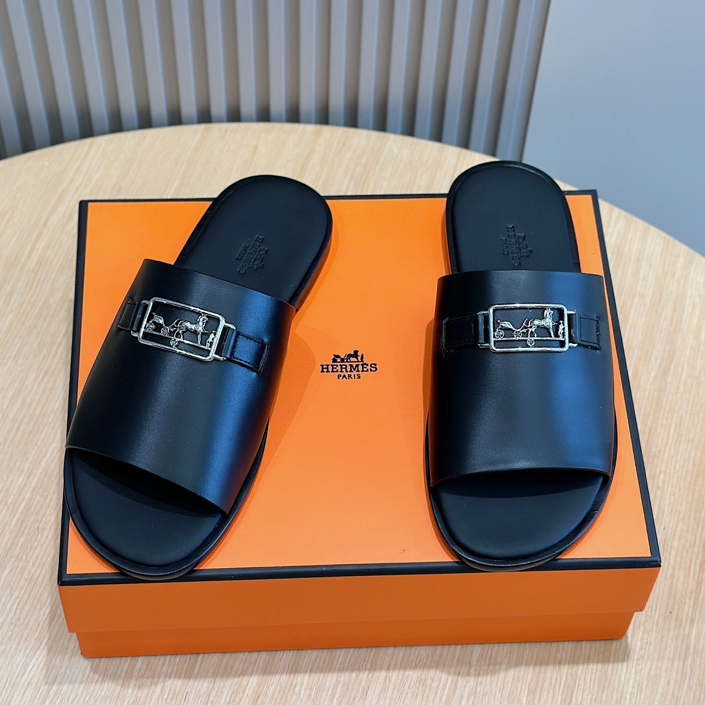 HM Men's Tenor Slide Black Calfskin 547659