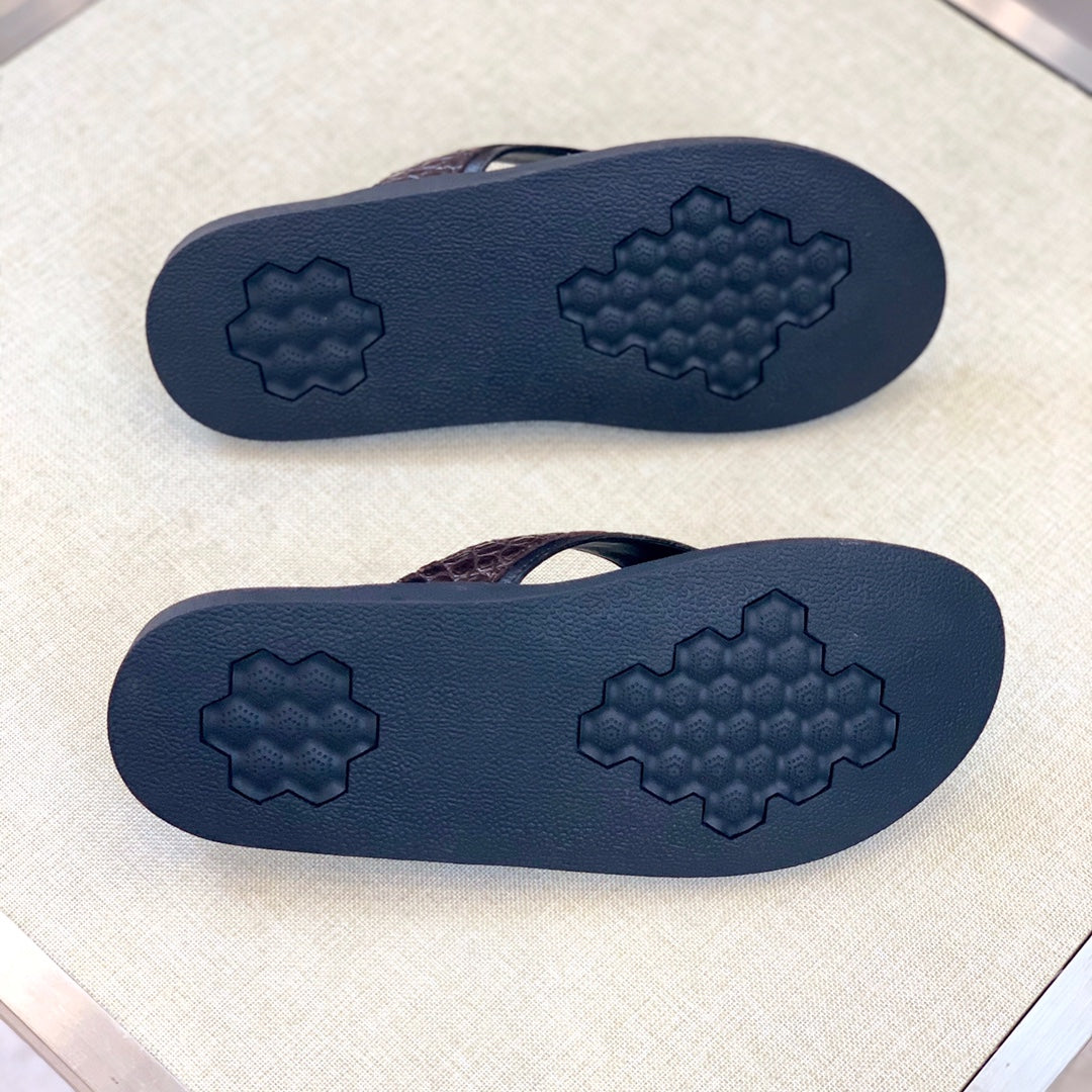 HM Men's Thong Sandals Brown Rubber Sheepskin 561669