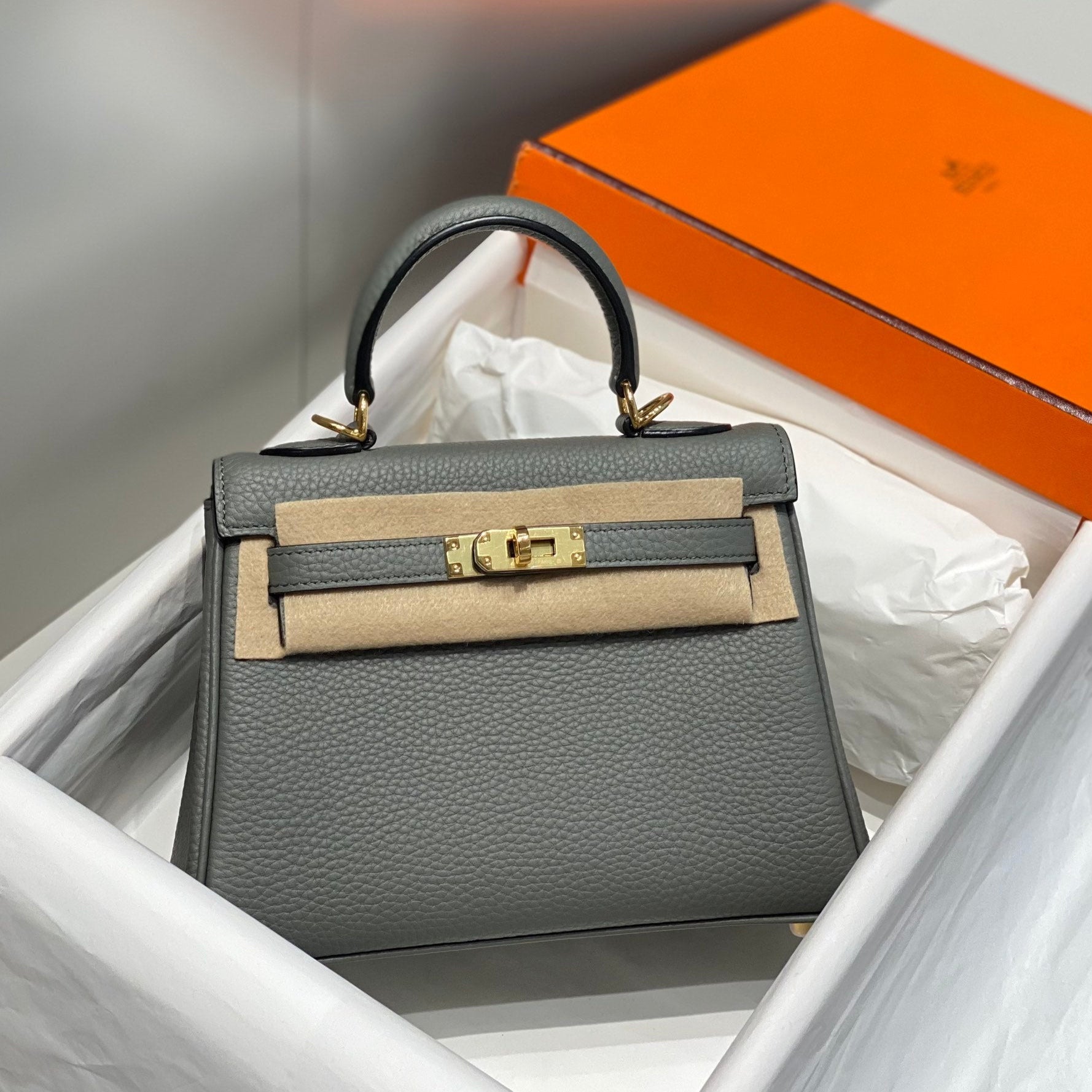 HM Mini Kelly 20cm Gris Meyer Togo Leather Gold Hardware