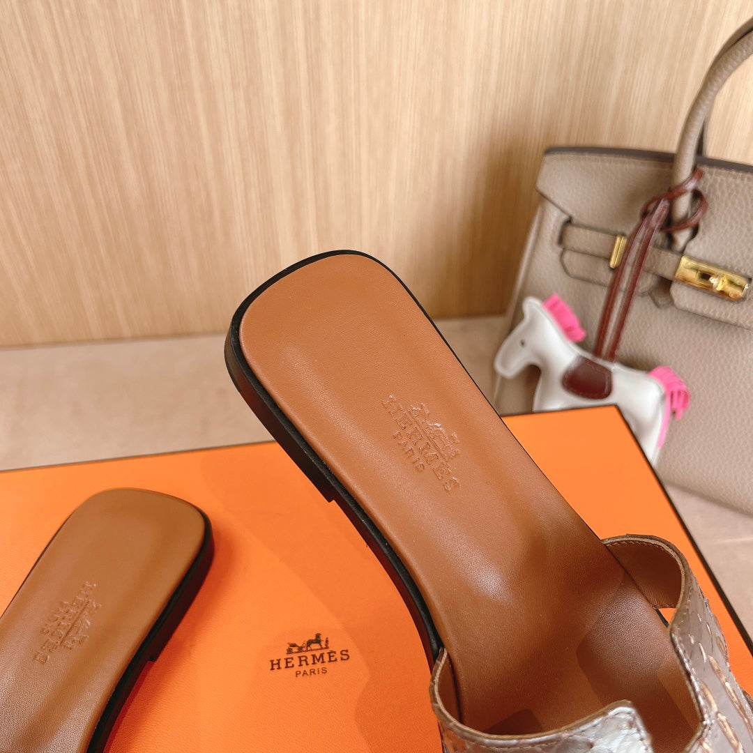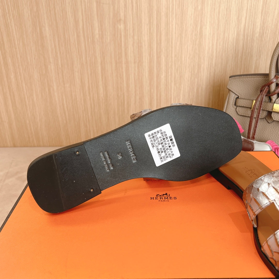 HM Oran Sandals Brown Sliver Calfskin 312774