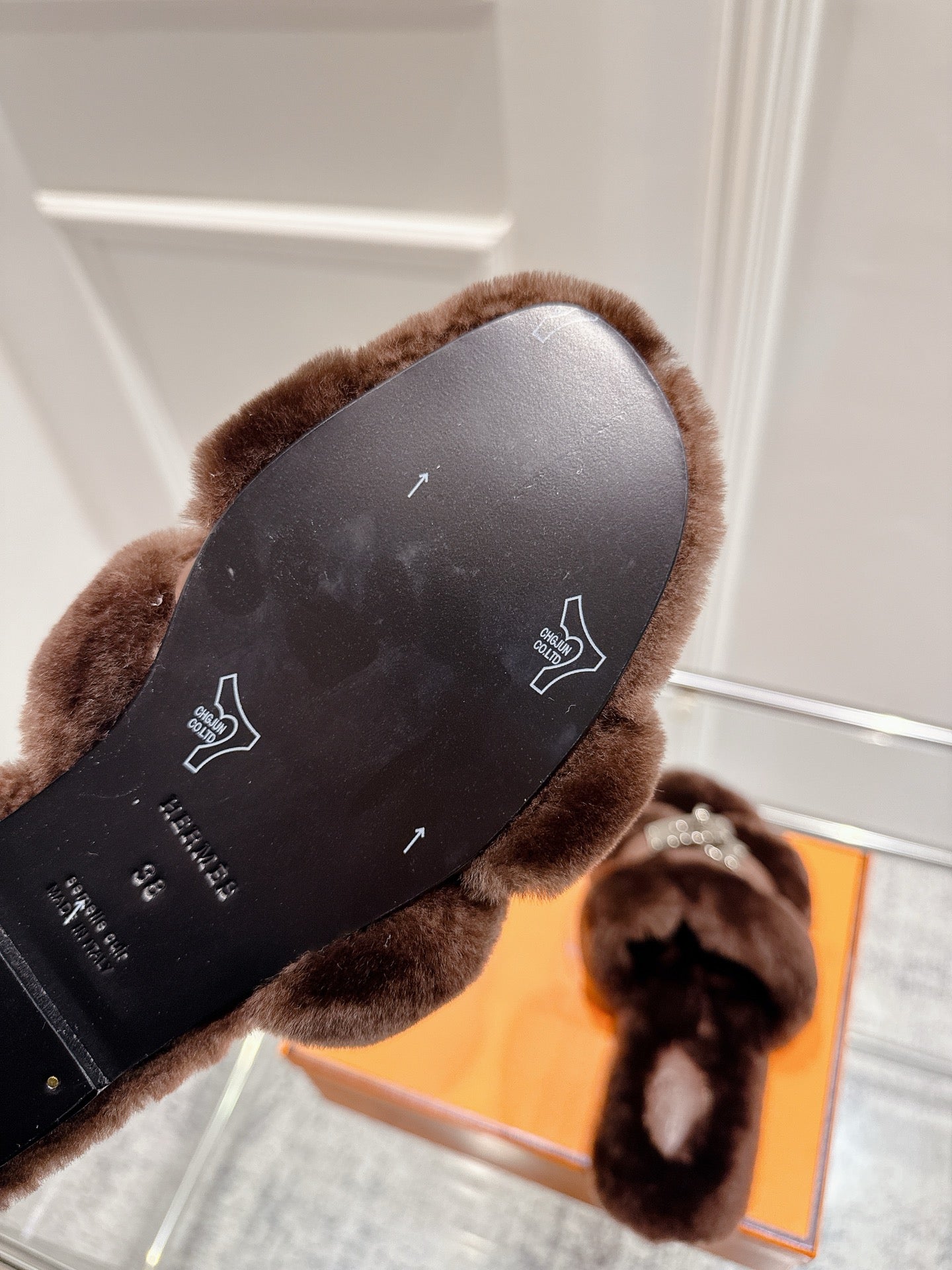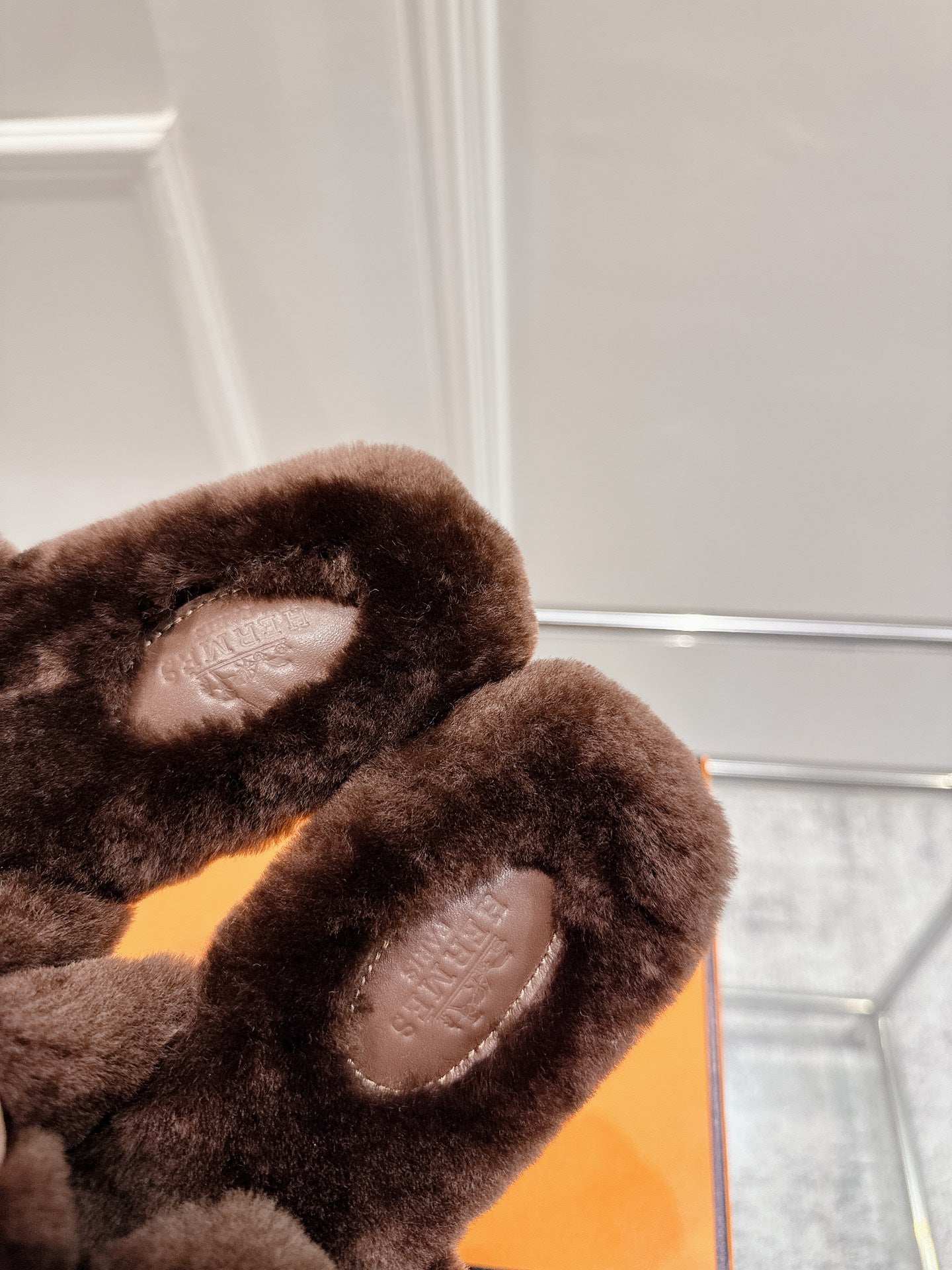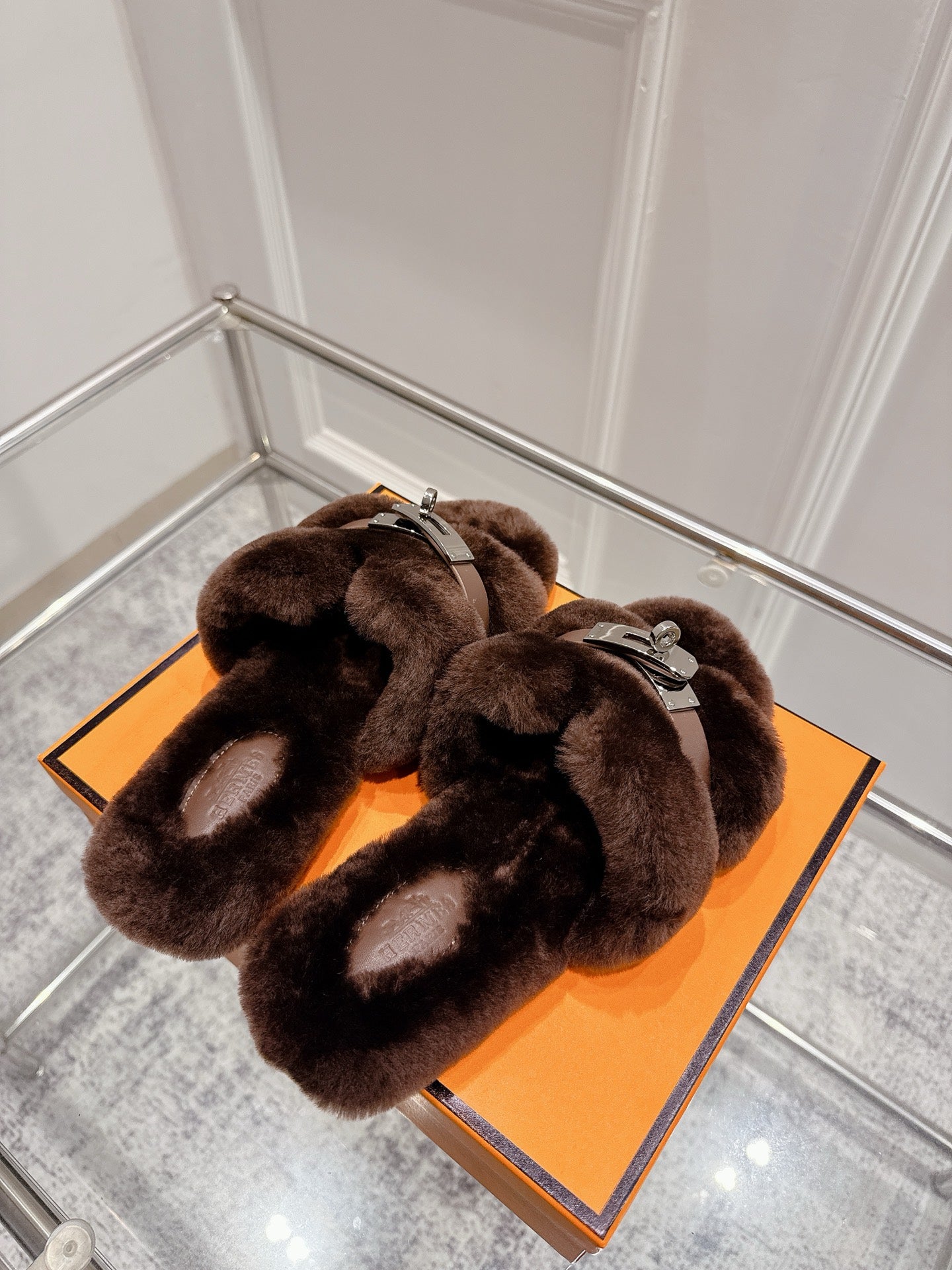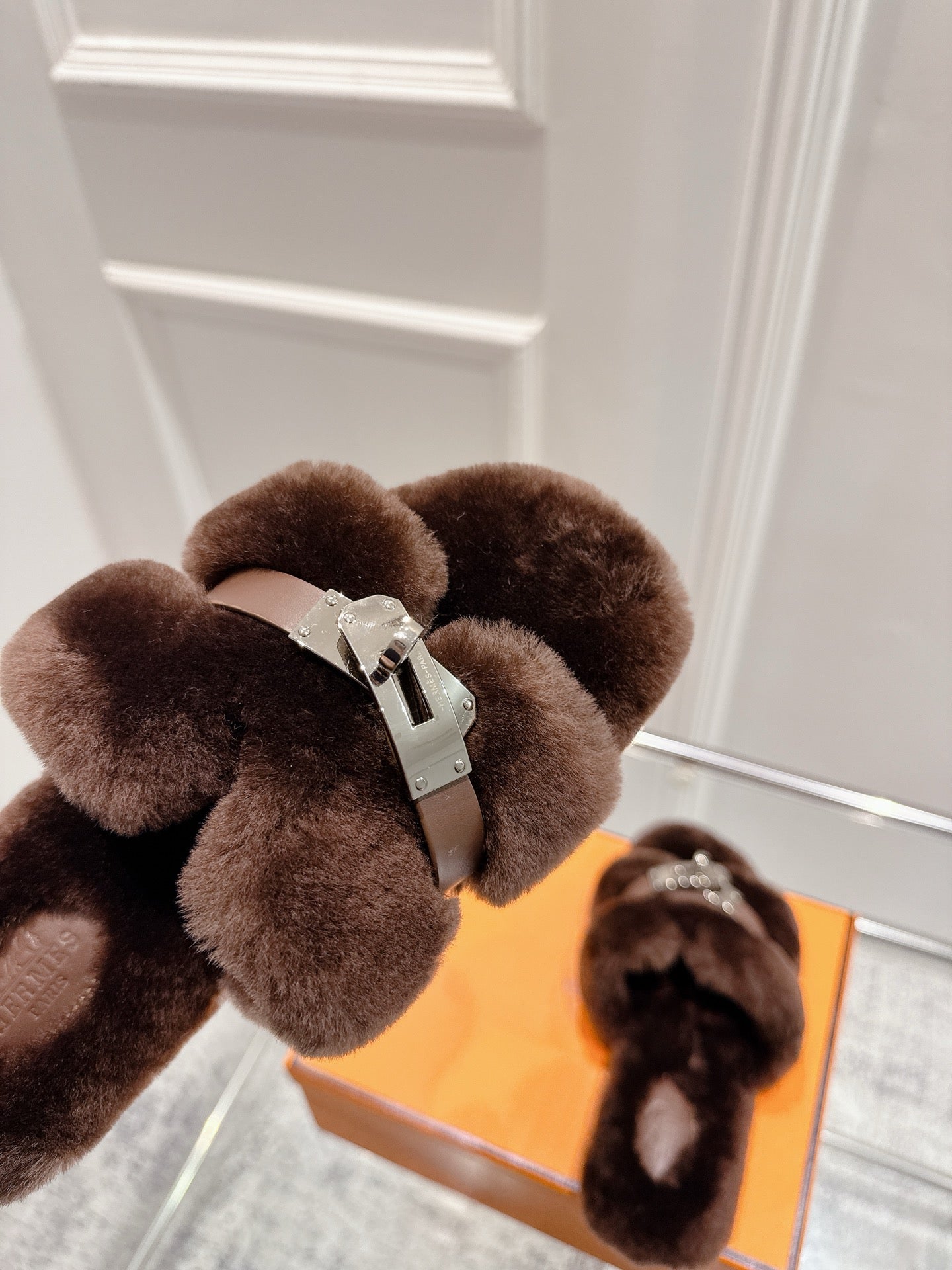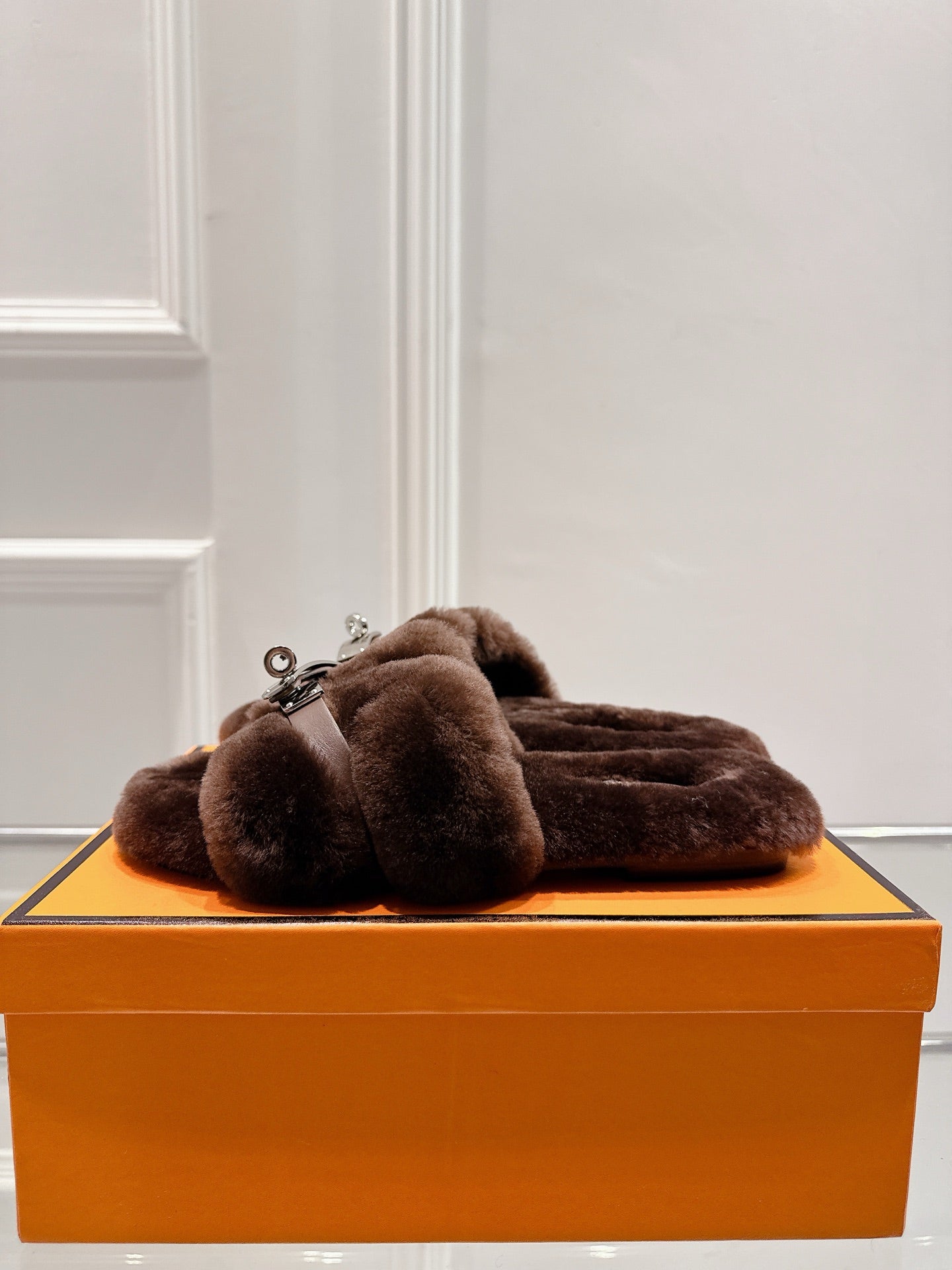 HM Oran slippers sliver buckle dark brown wool