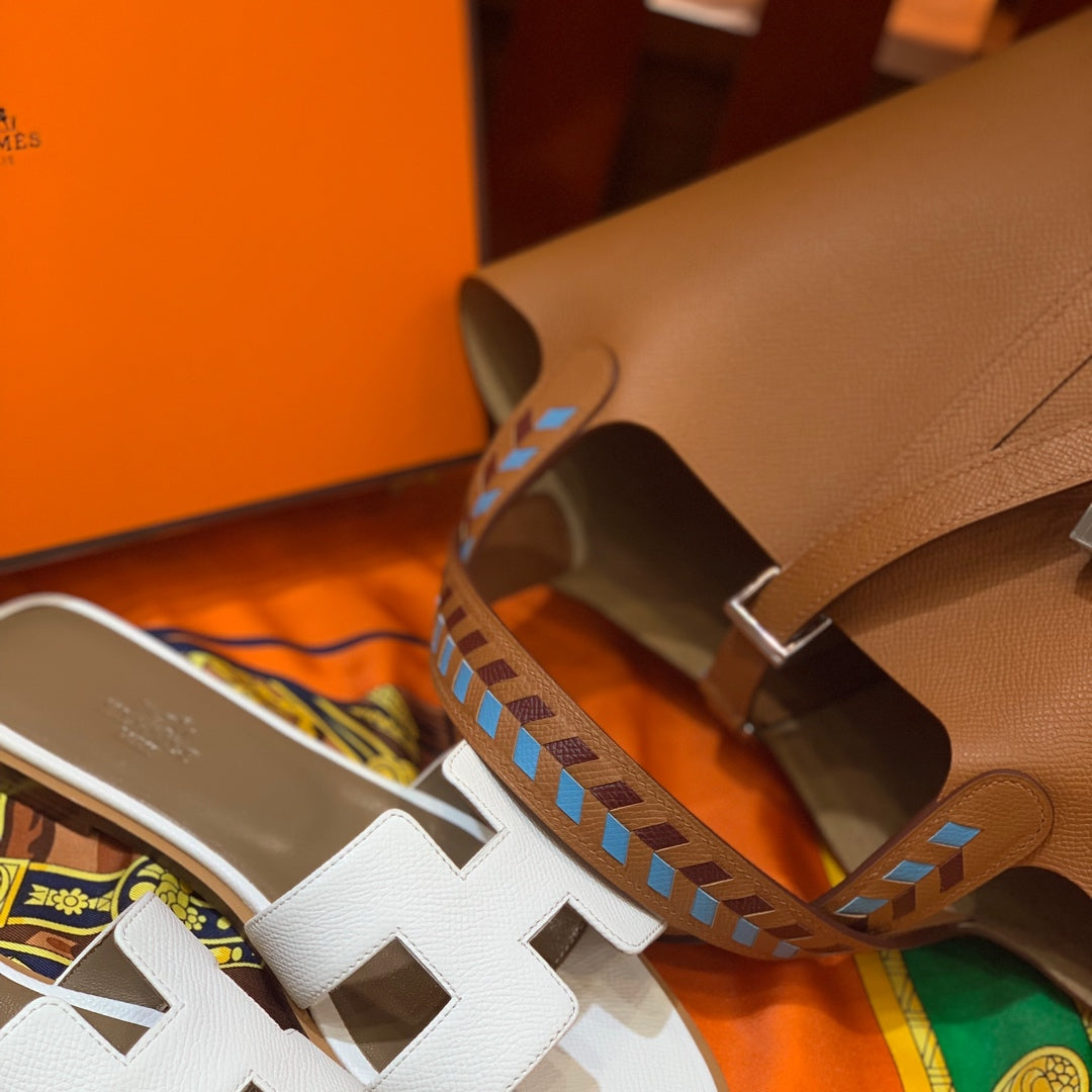 HM PICOTIN LOCK 22 COPPER EPSOM WITH BRAID STRAP