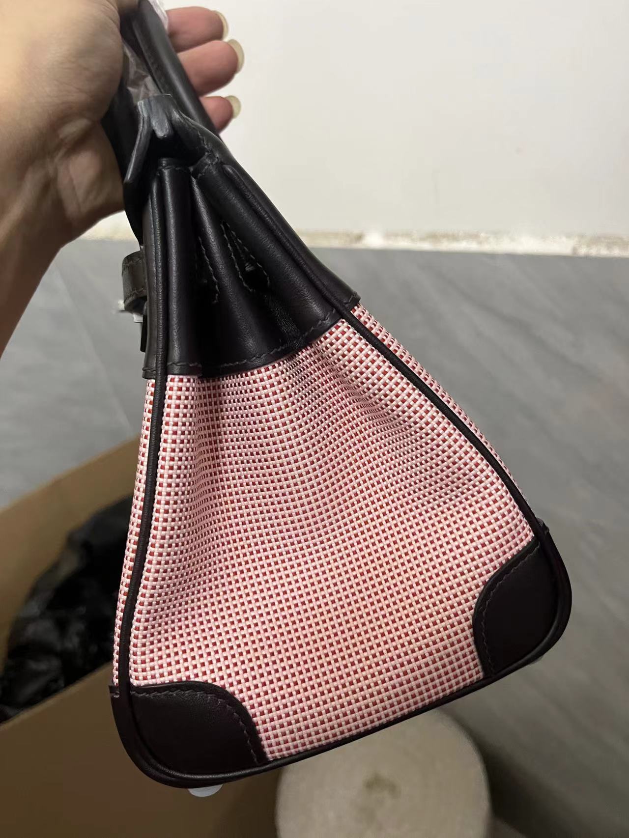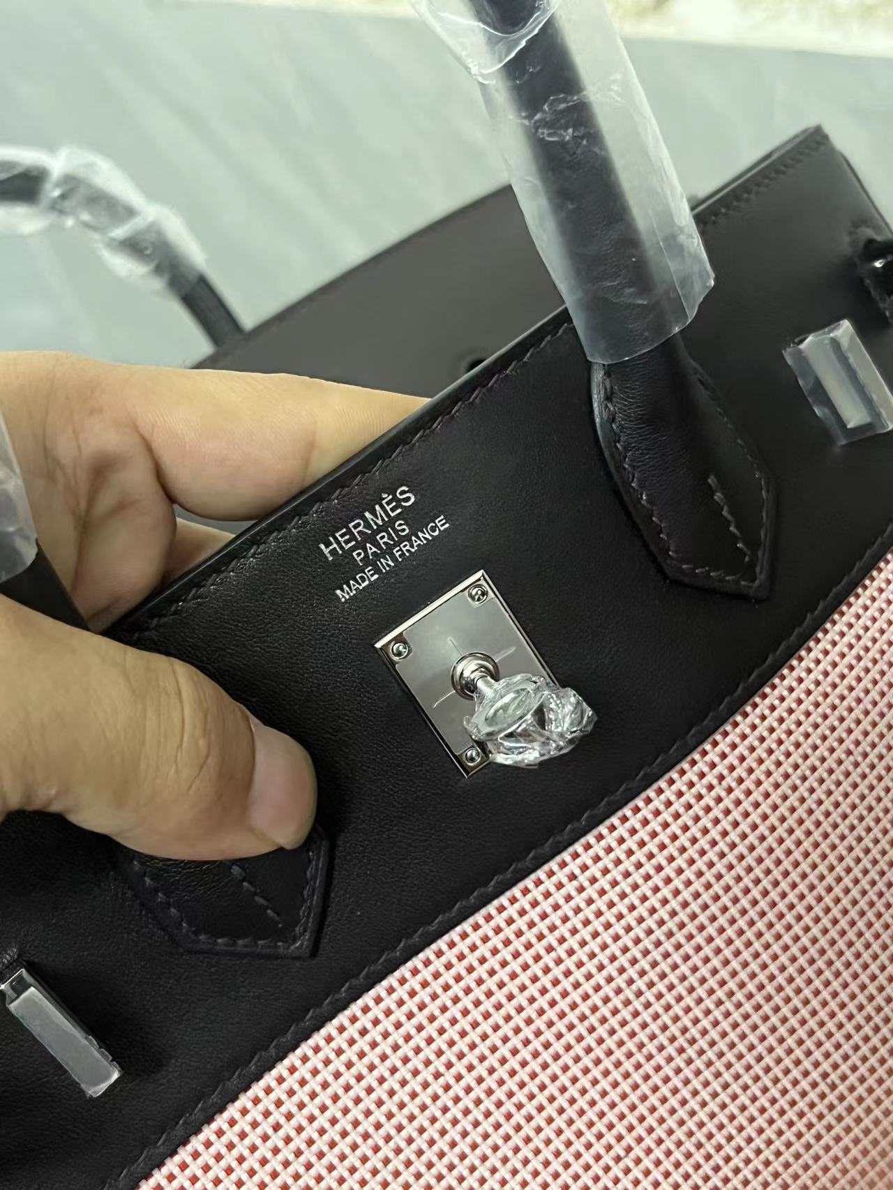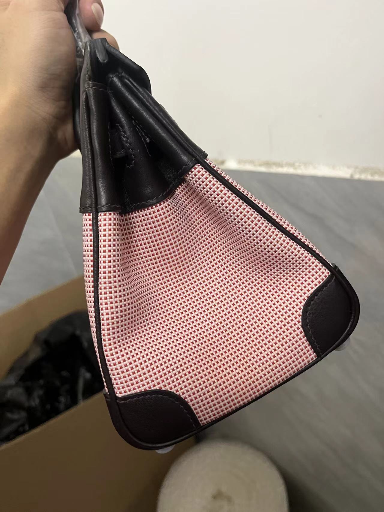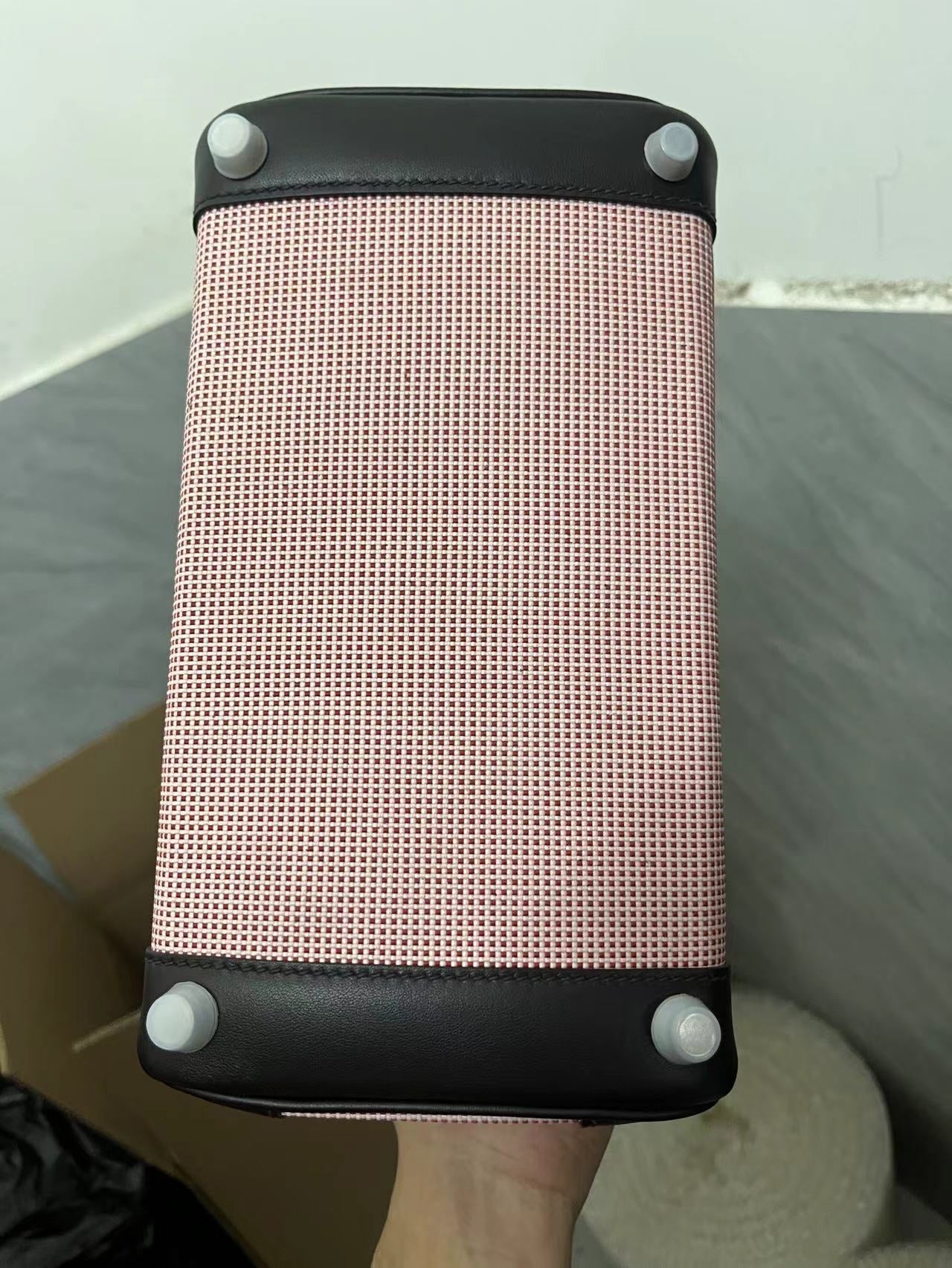 HM Quadrille Birkin 25cm Black Swift Leather Pink Toile