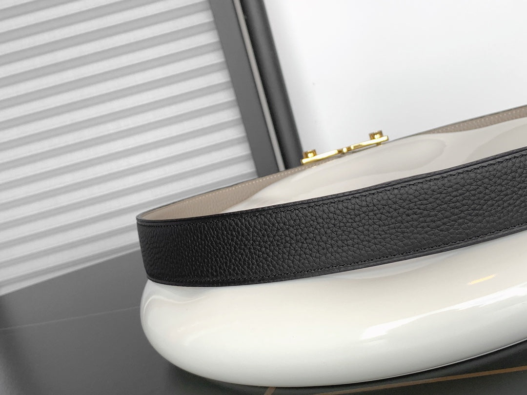HM REVERSIBLE BLACK AND BLACK AND KHAKI BROWN LEATHER STRAP 32 MM GOLD HARDWARE