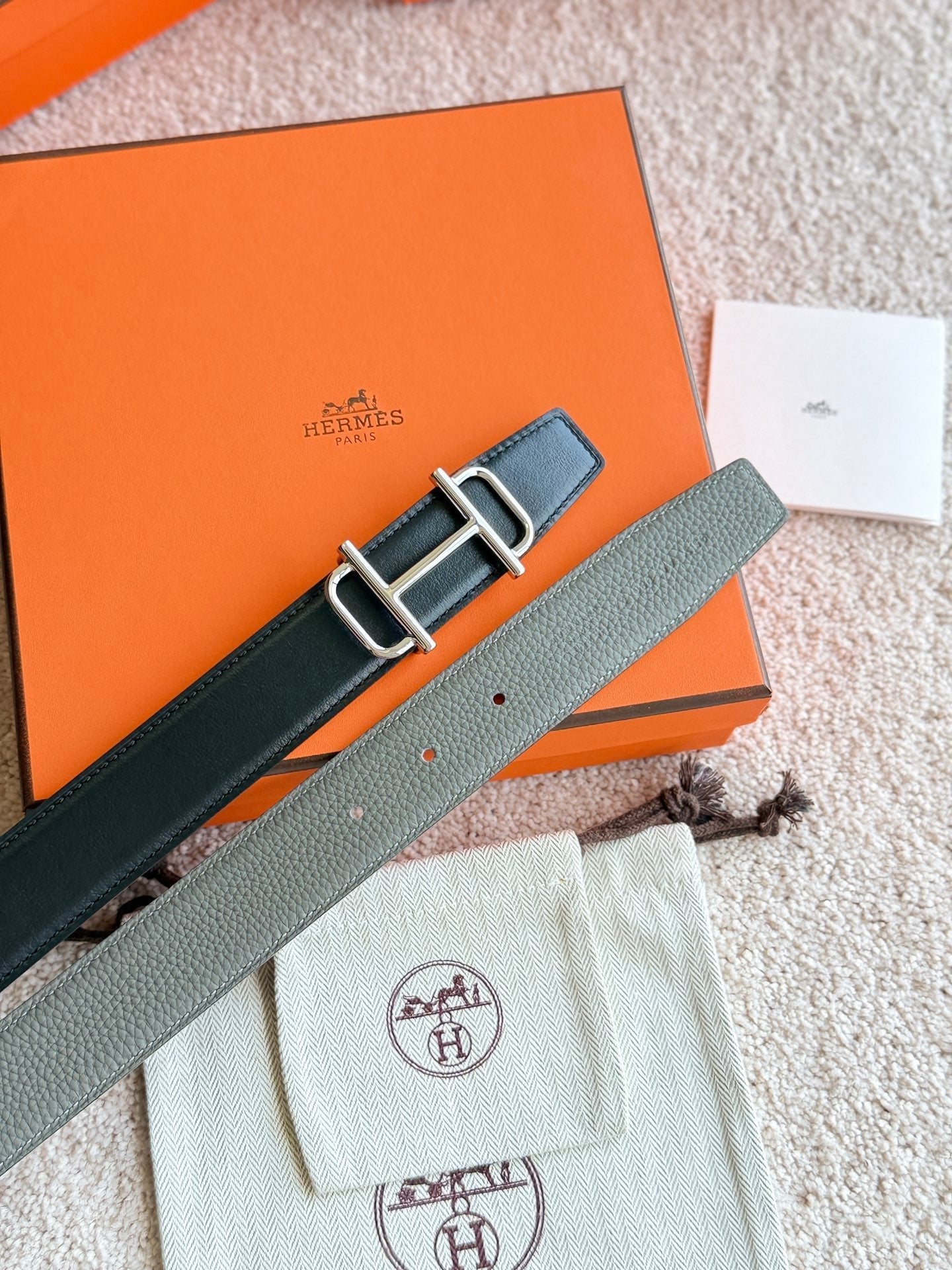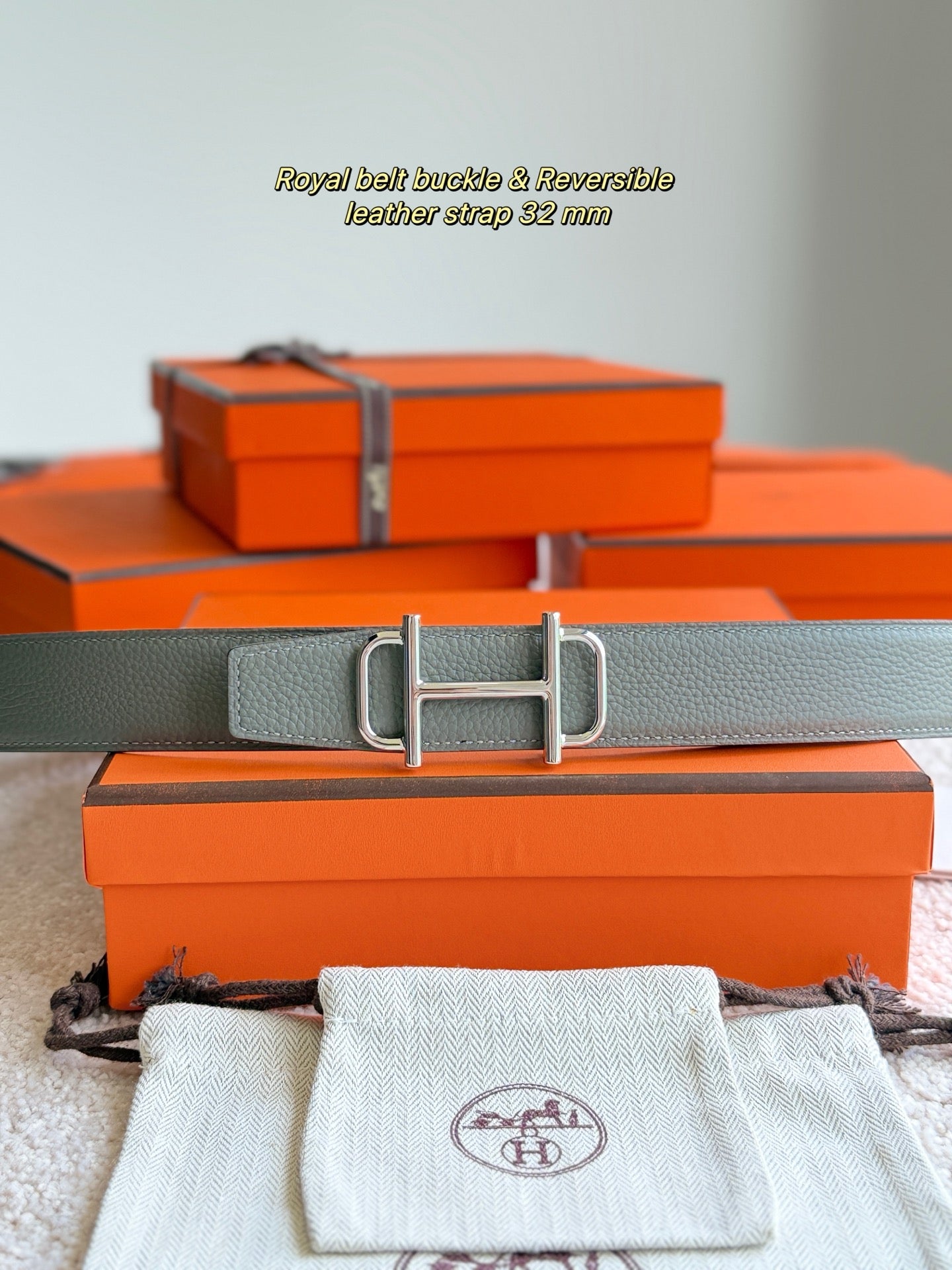 HM Silver Buckle 32mm Royal Belt Gray Brown Leather 188422
