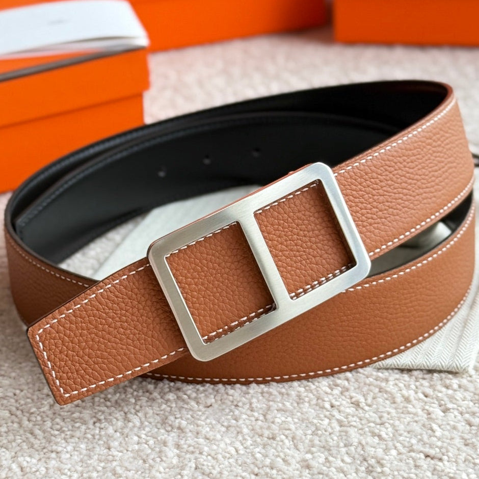HM Silver Buckle Belt 38mm Brown Black Leather 187556
