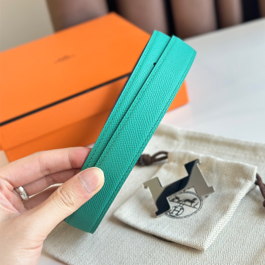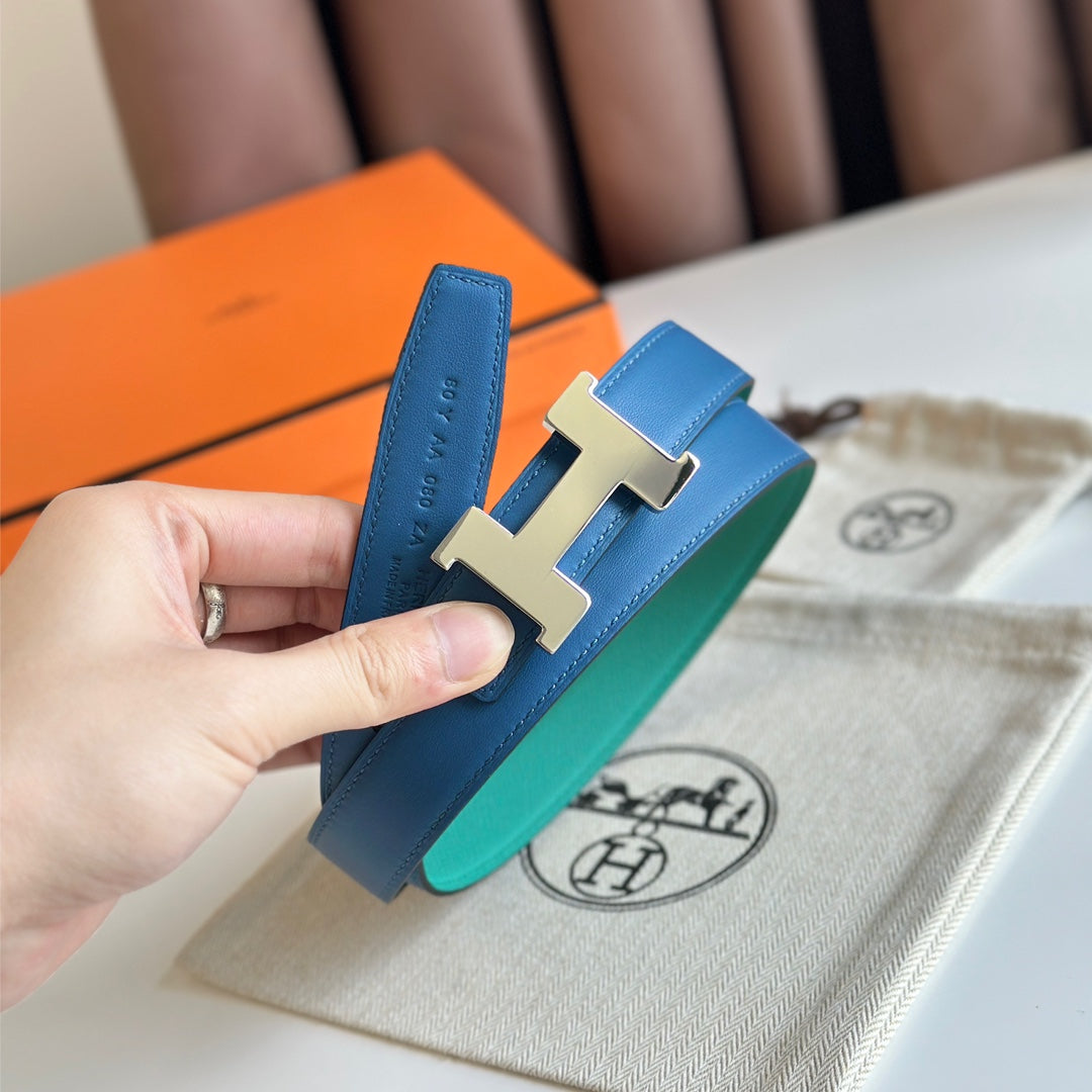 HM Silver Constance & Reverible Belt Blue Green Leather 125373