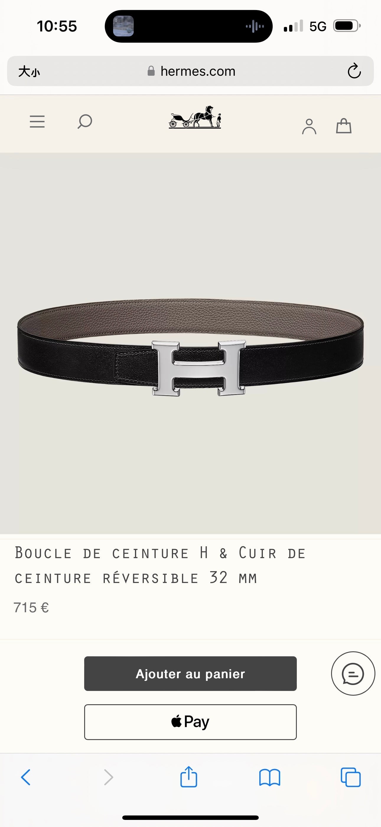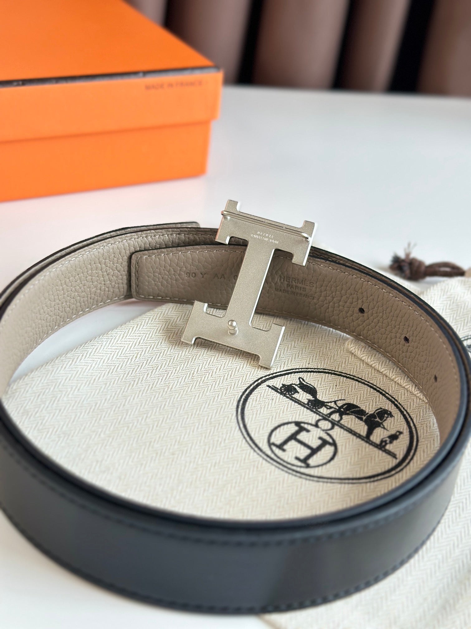 HM Silver H Buckle & Reversible 32mm Belt Beige mix Black leather 124653