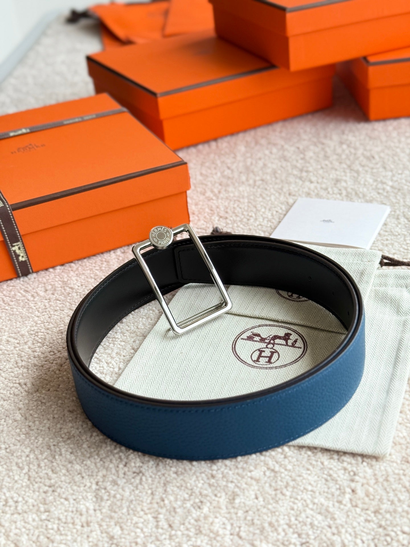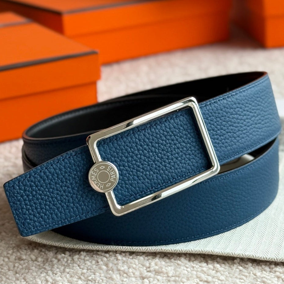 HM Silver Oscar Buckle Belt 38mm Prussian Blue Leather 187786