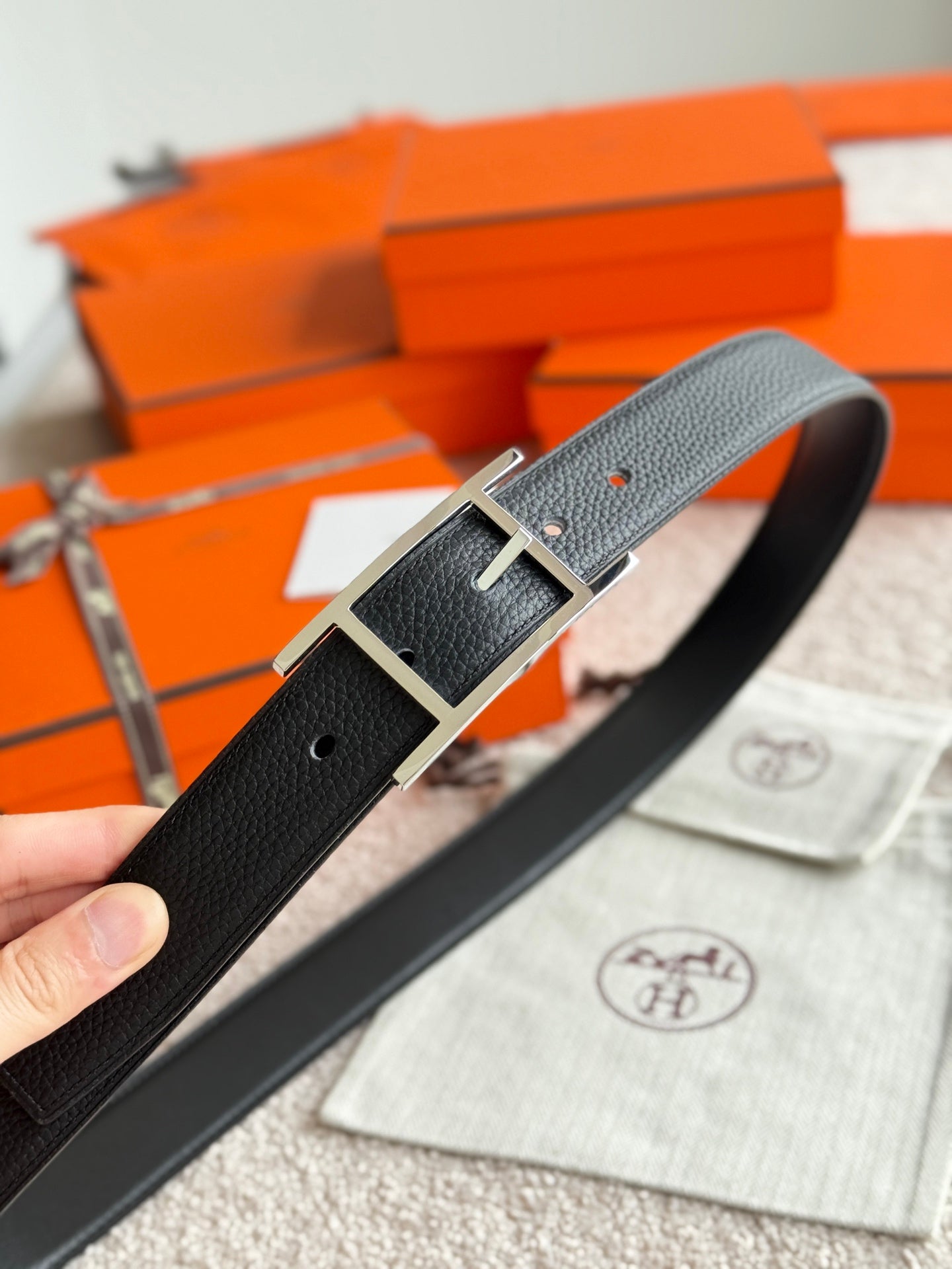 HM Silver Quentin Reversible 32mm Belt Black Leather 188086