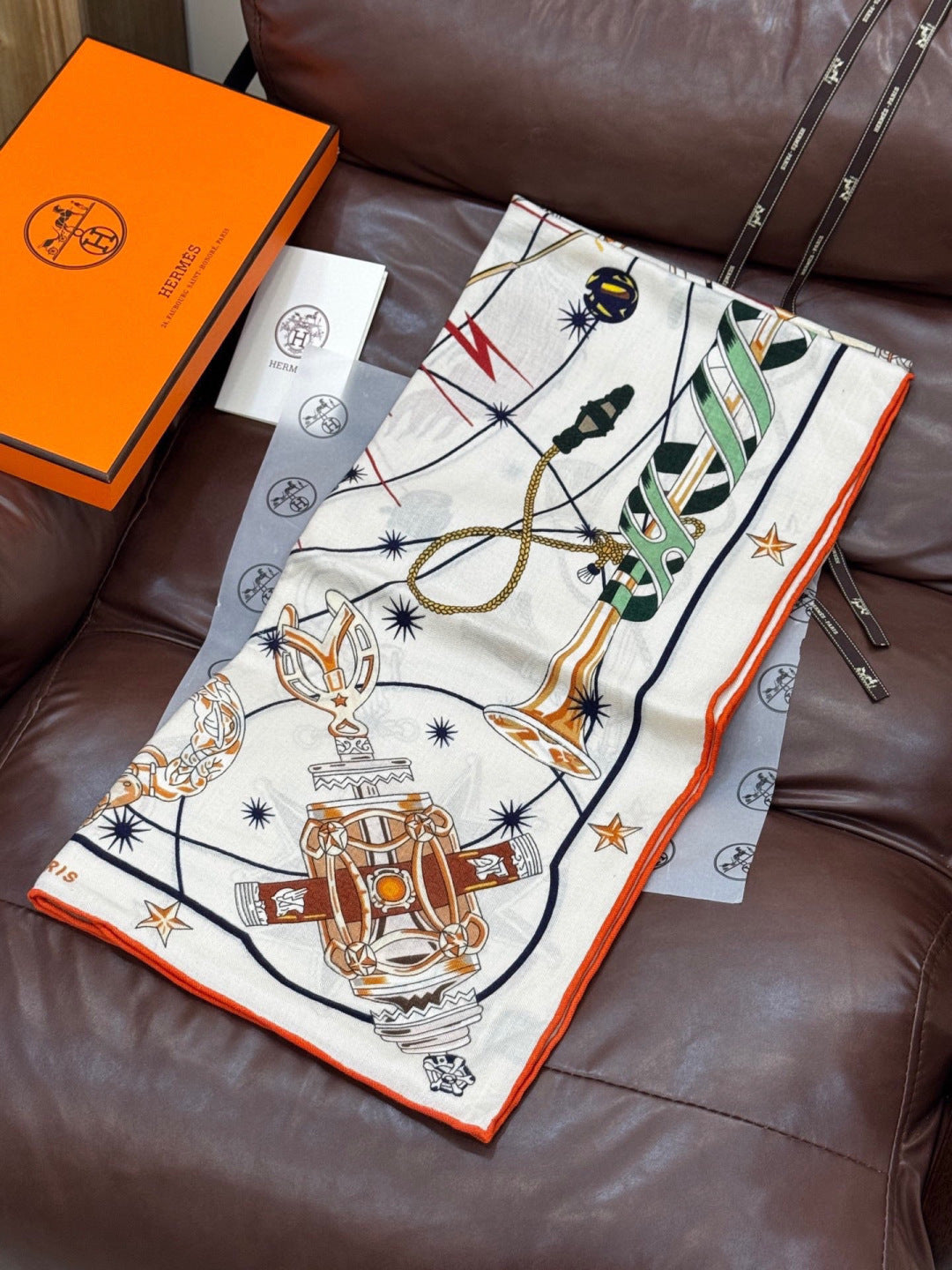 HM Starry Night Chorus Scarf 140cm White Yellow Cashmere 970974
