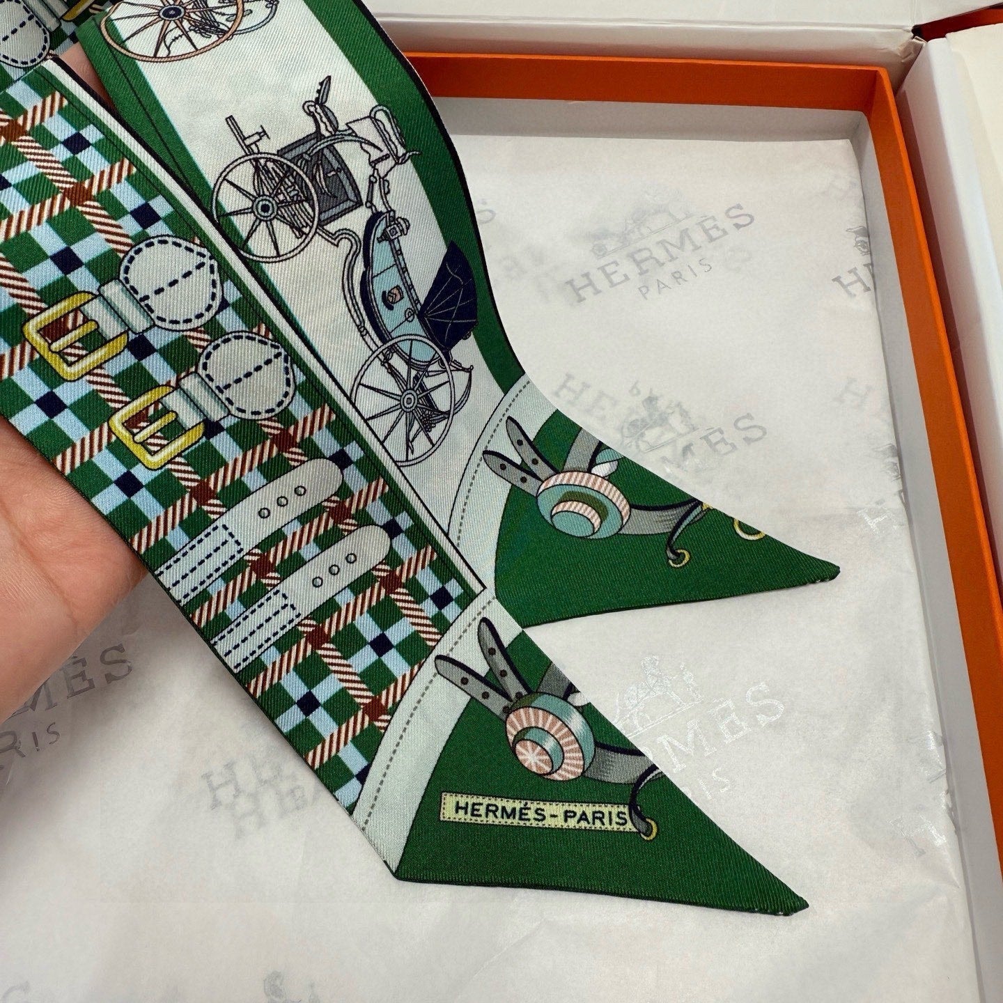 HM Twilly Mini Scarf 86CM Green Mulberry Silk 968840