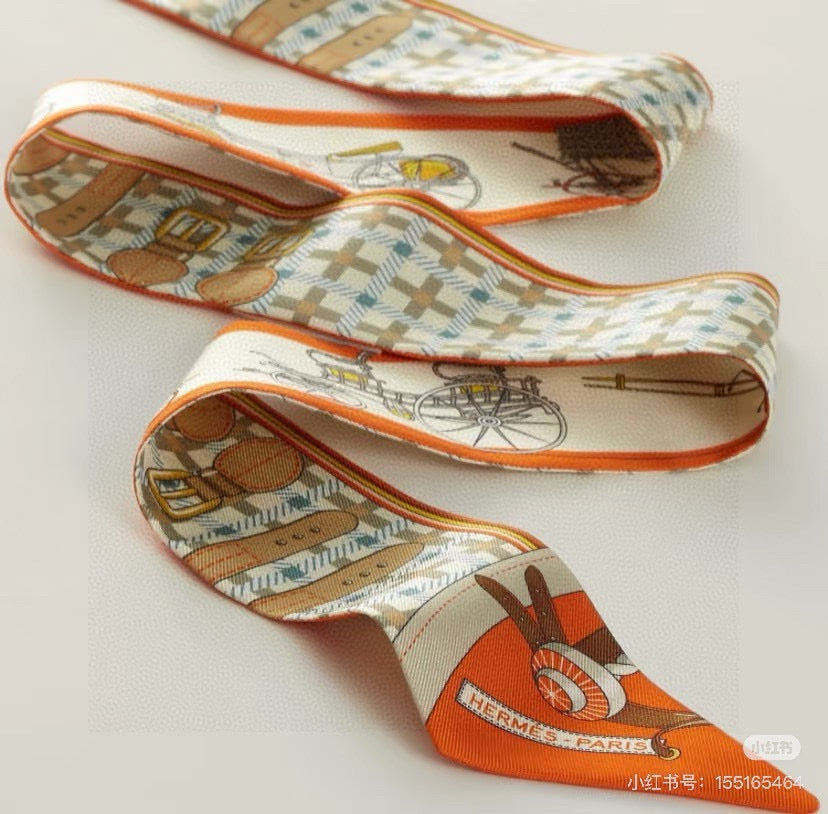 HM Twilly Mini Scarf 86CM Orange Beige Mulberry Silk 968843
