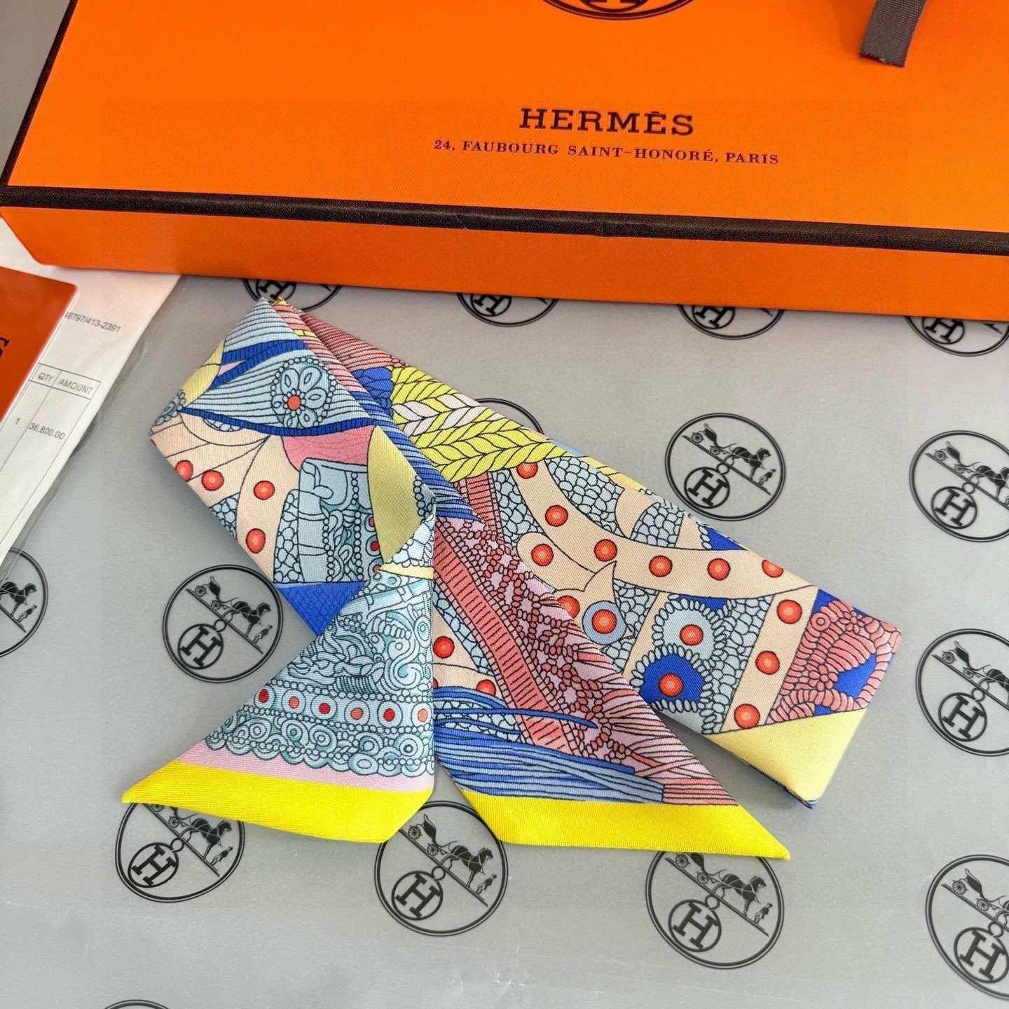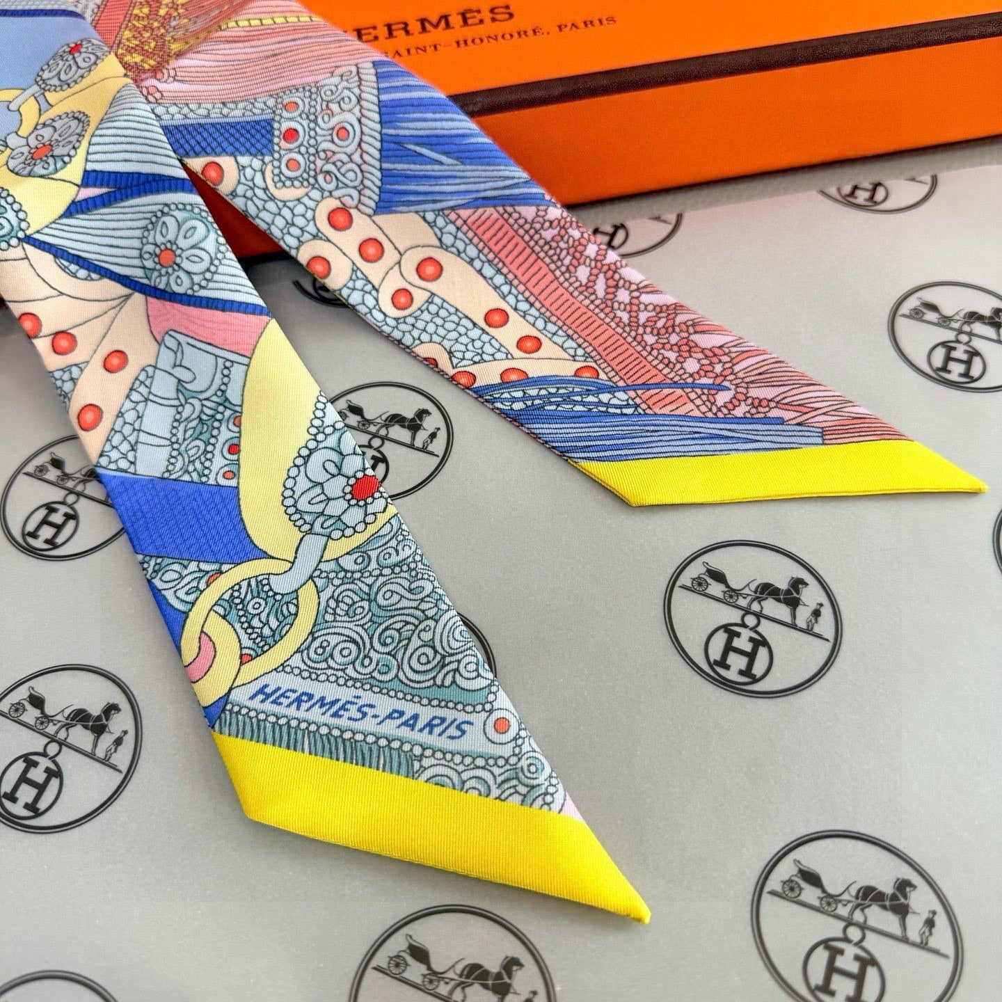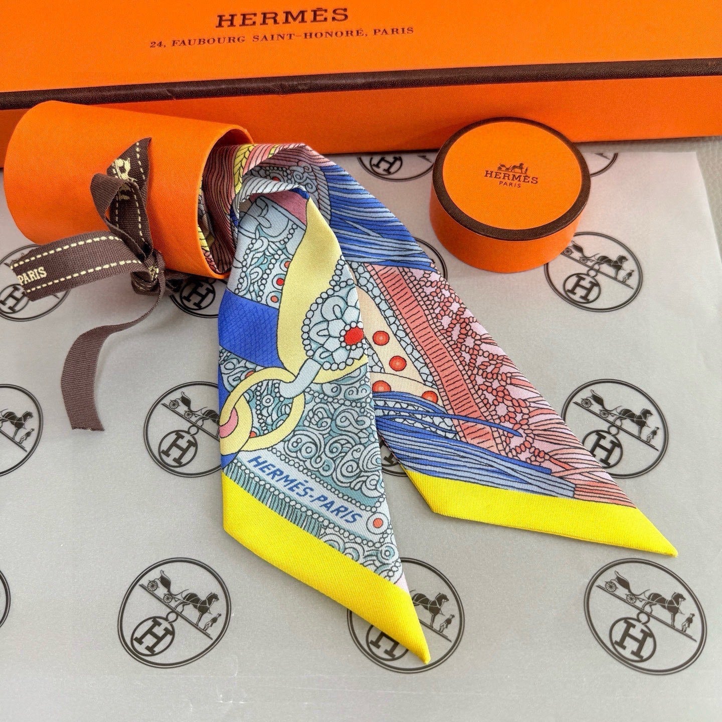 HM Twilly Mini Scarf 86CM Yellow Blue Mulberry Silk 965637