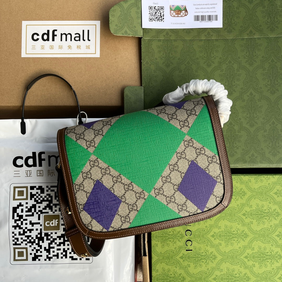 HORSEBIT 1955 SADDLE BAG 25 IN COLORFUL CANVAS AND BROWN LEATHER TRIM GOLD HARDWARE