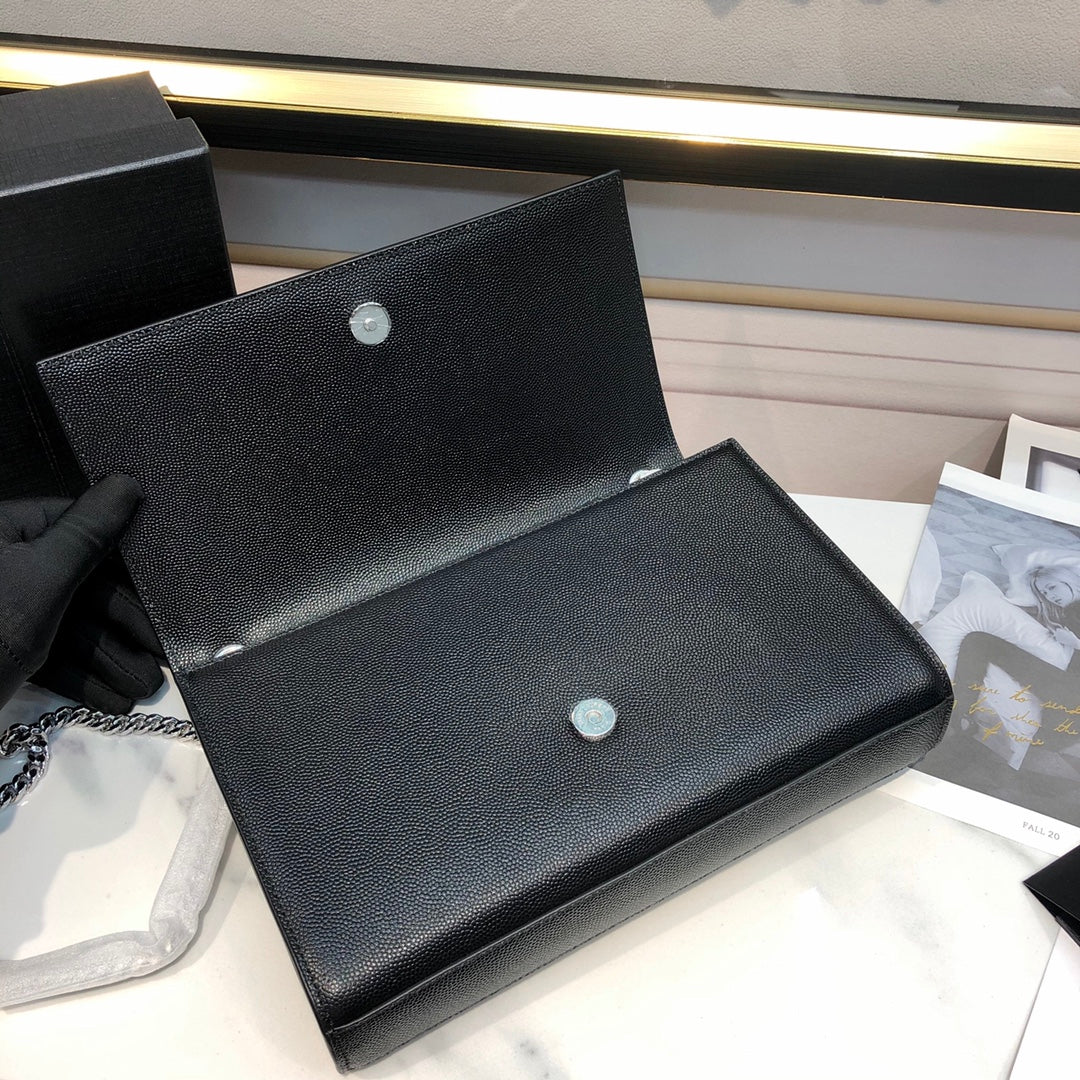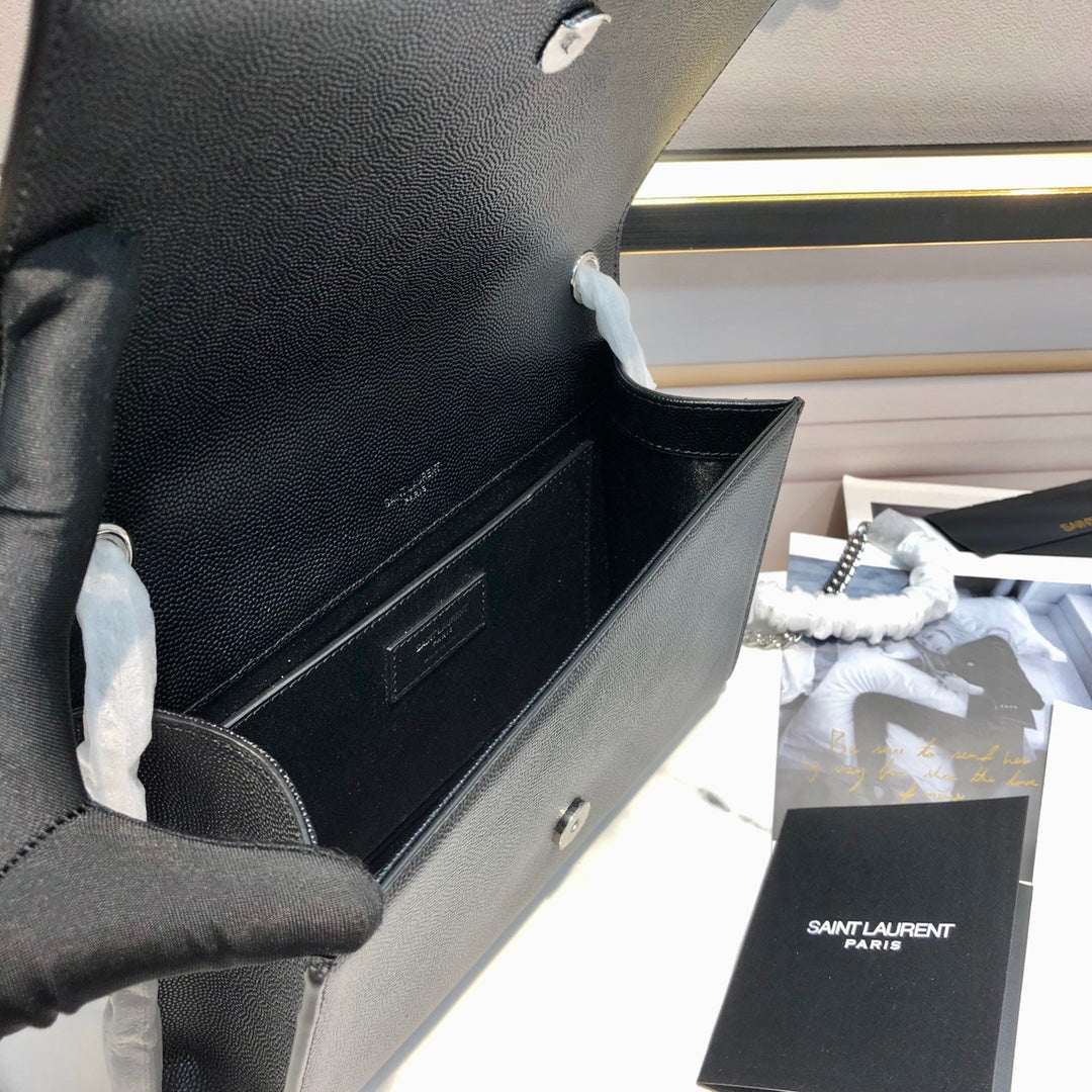 kate medium 24cm black grained calfskin silver hardware