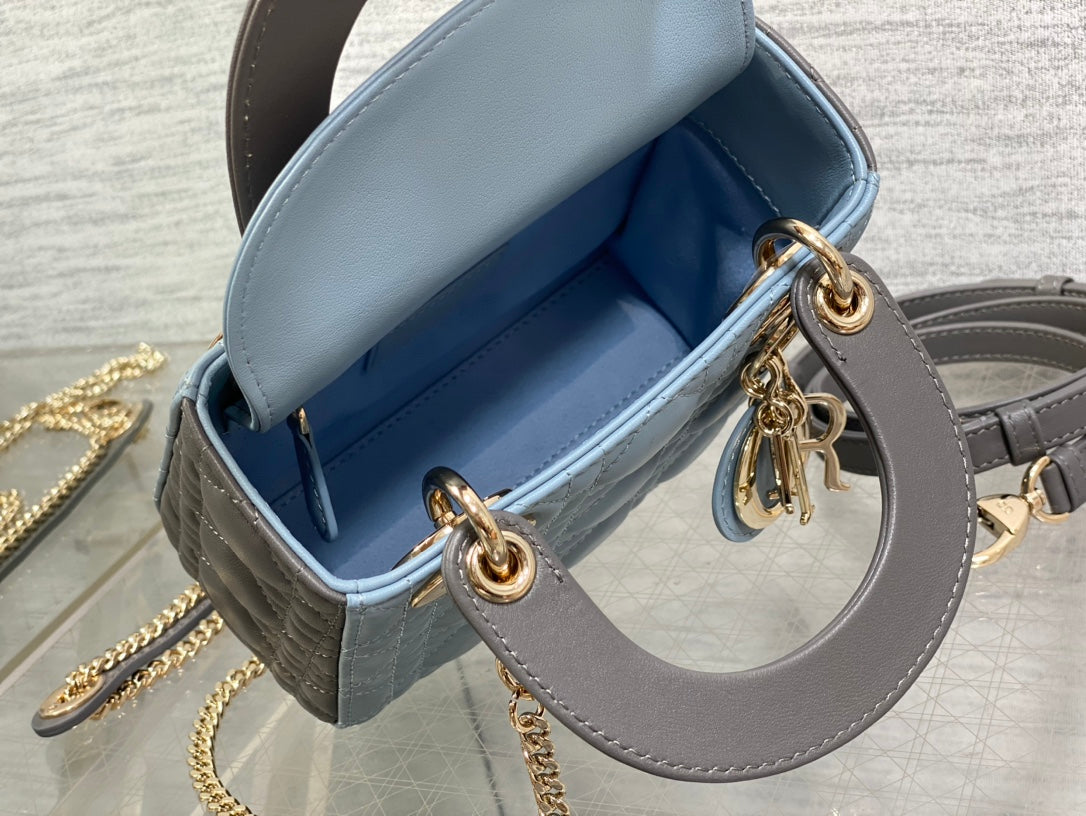 Lady Bag 17cm Celeste Blue Grey Lambskin