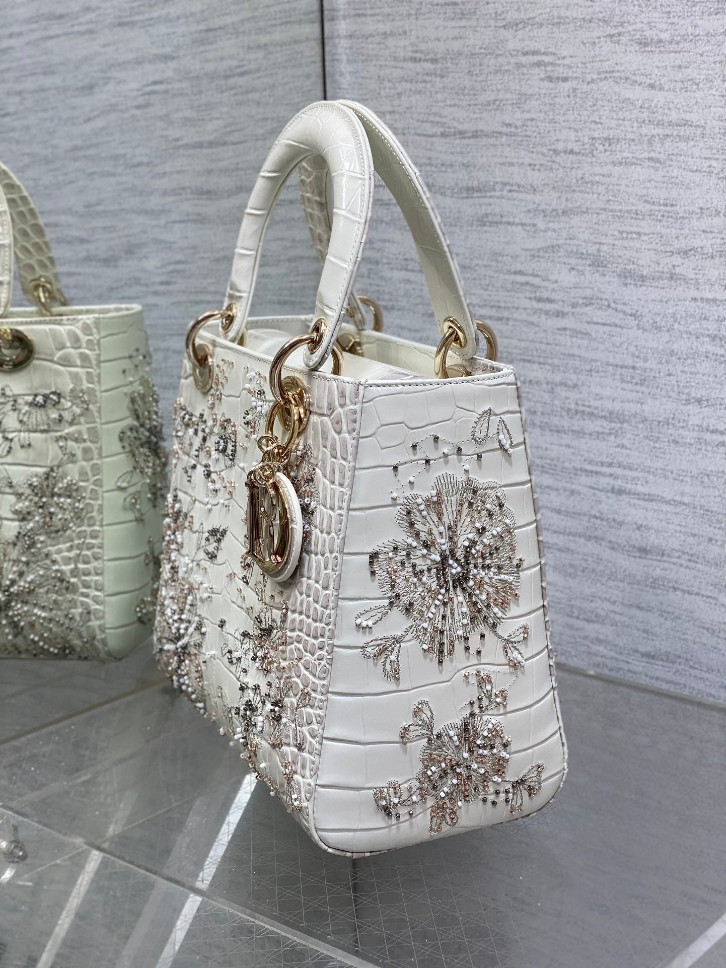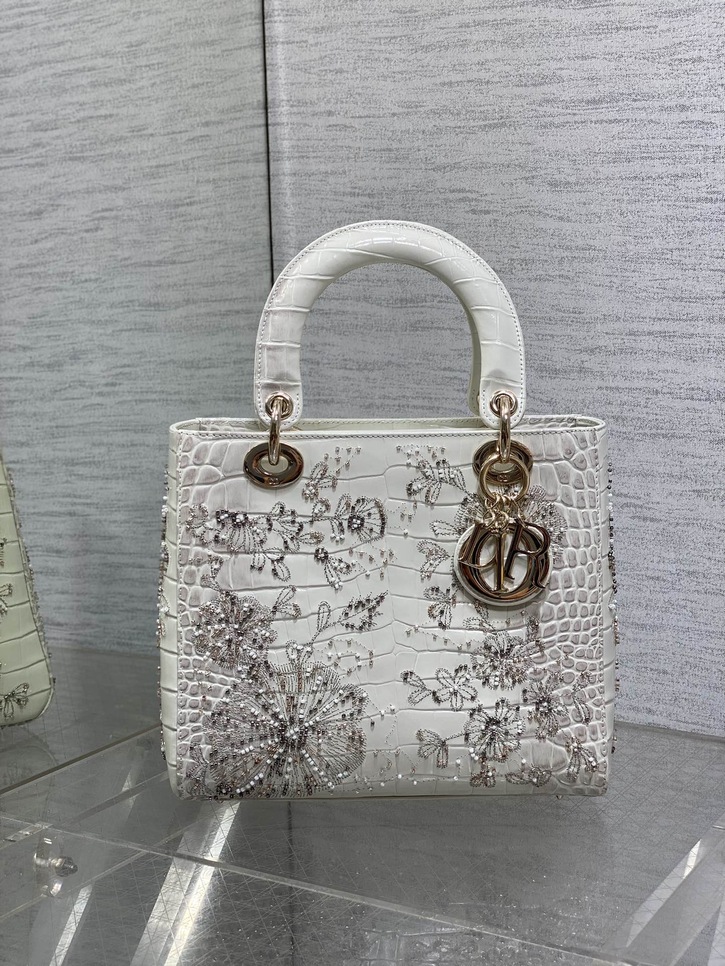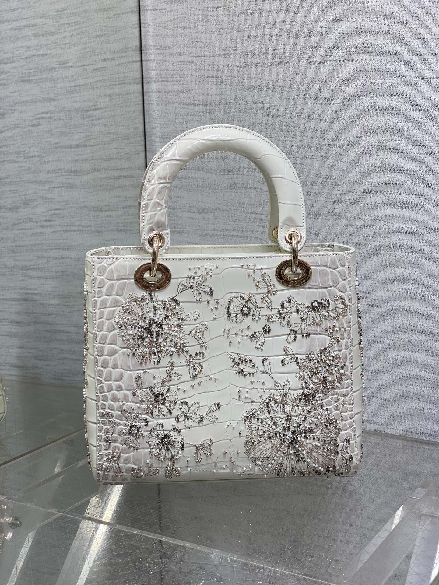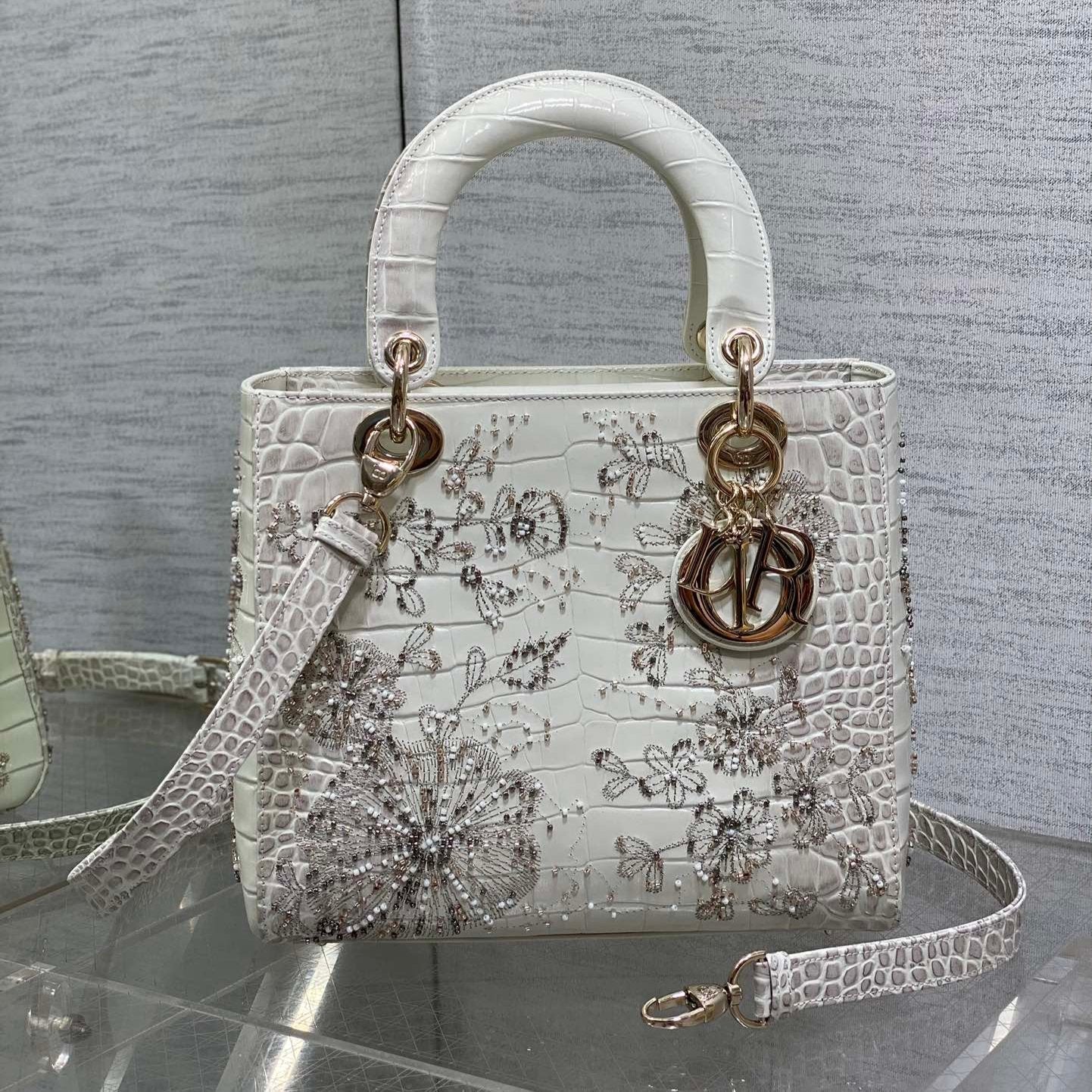 Lady Bag 20cm Grey Crocodile Leather