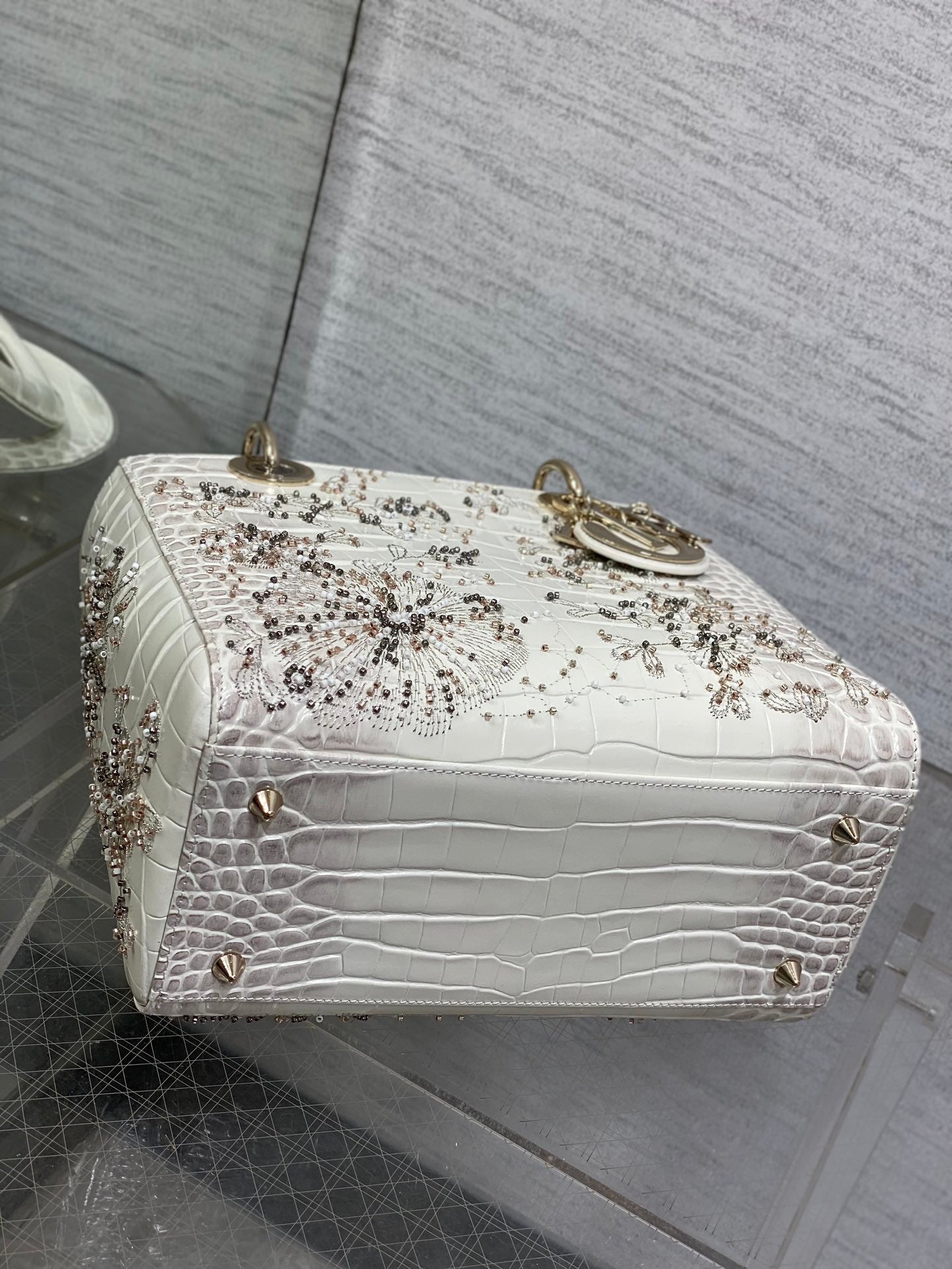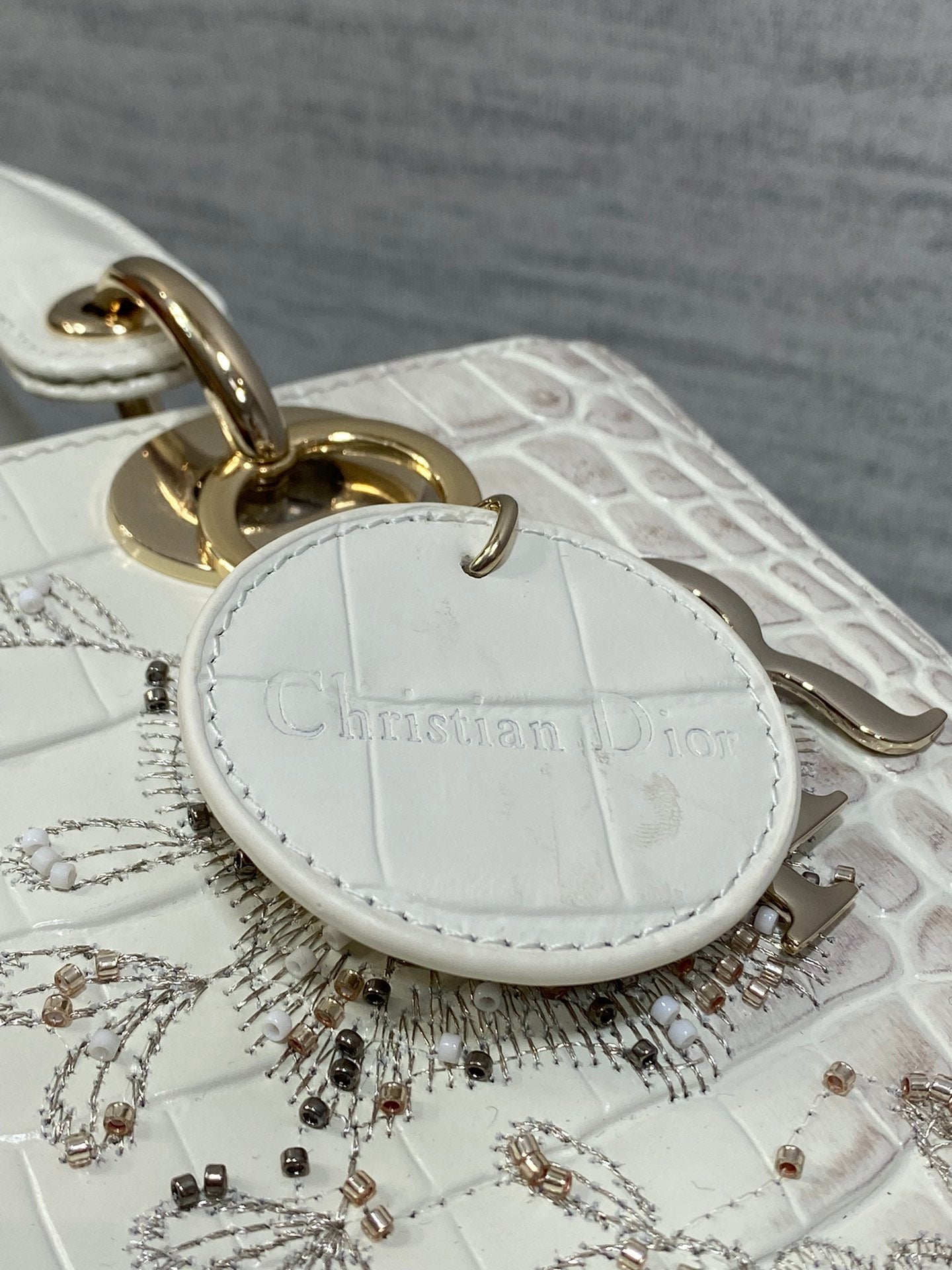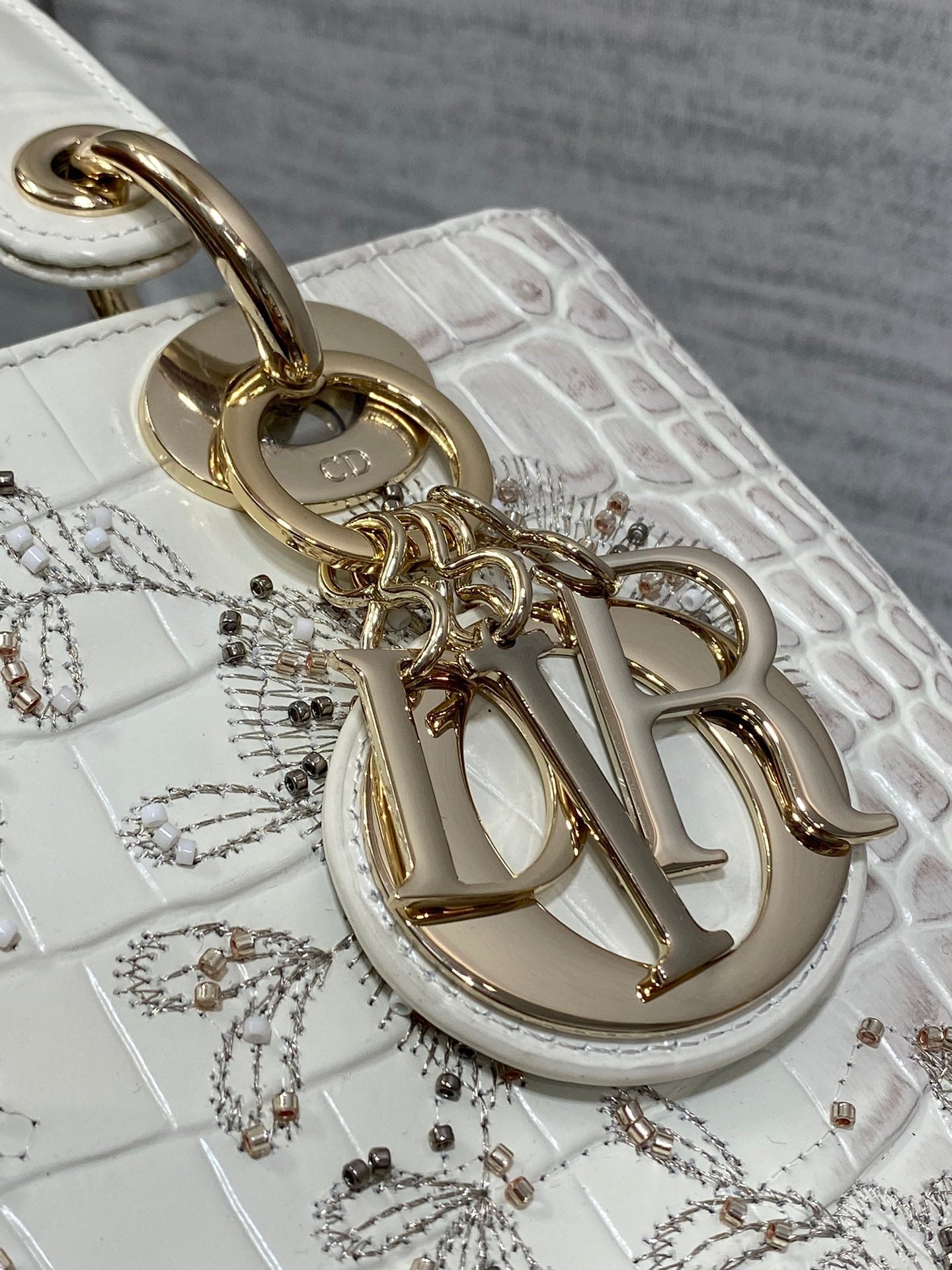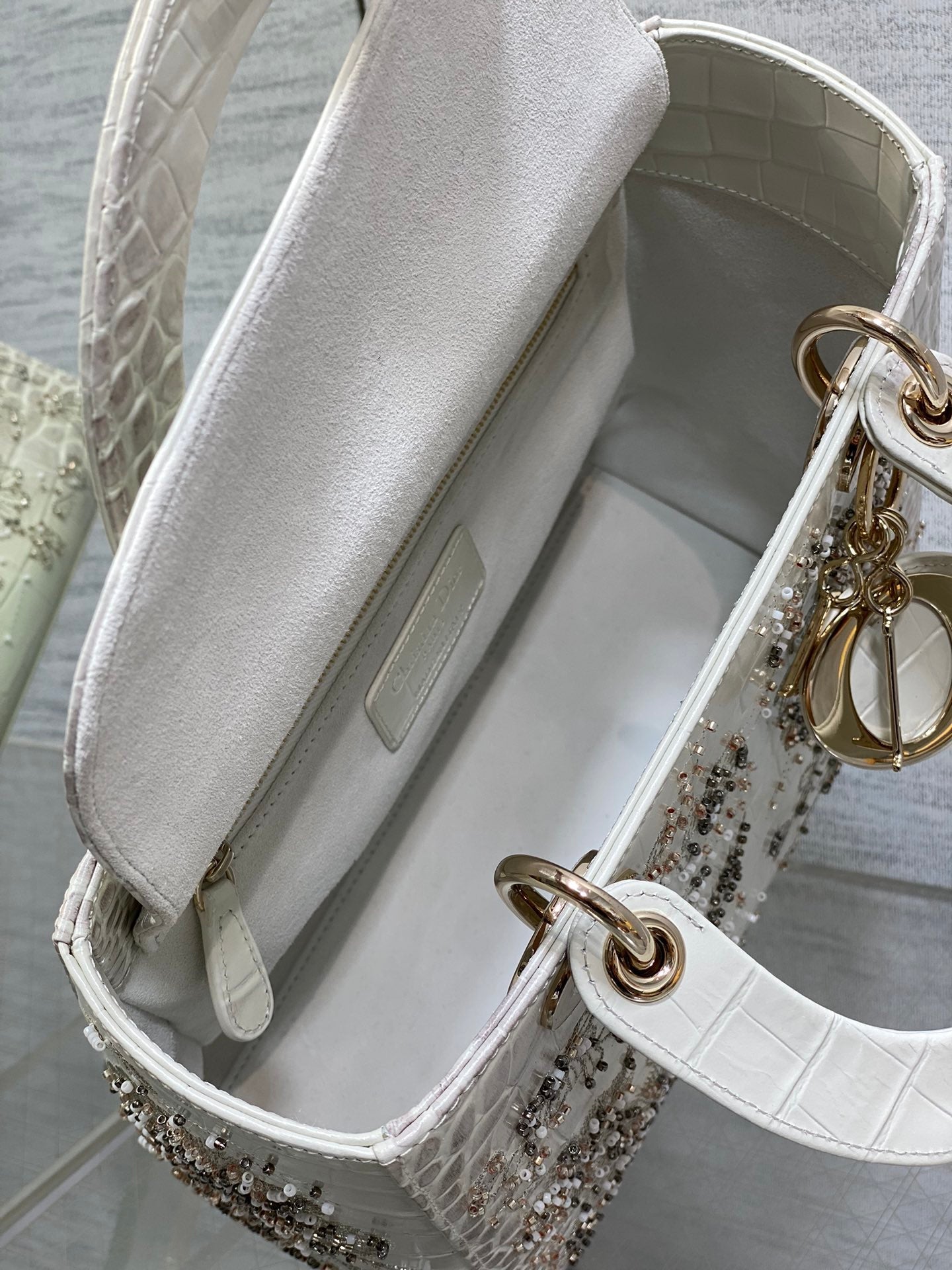 Lady Bag 20cm Grey Crocodile Leather