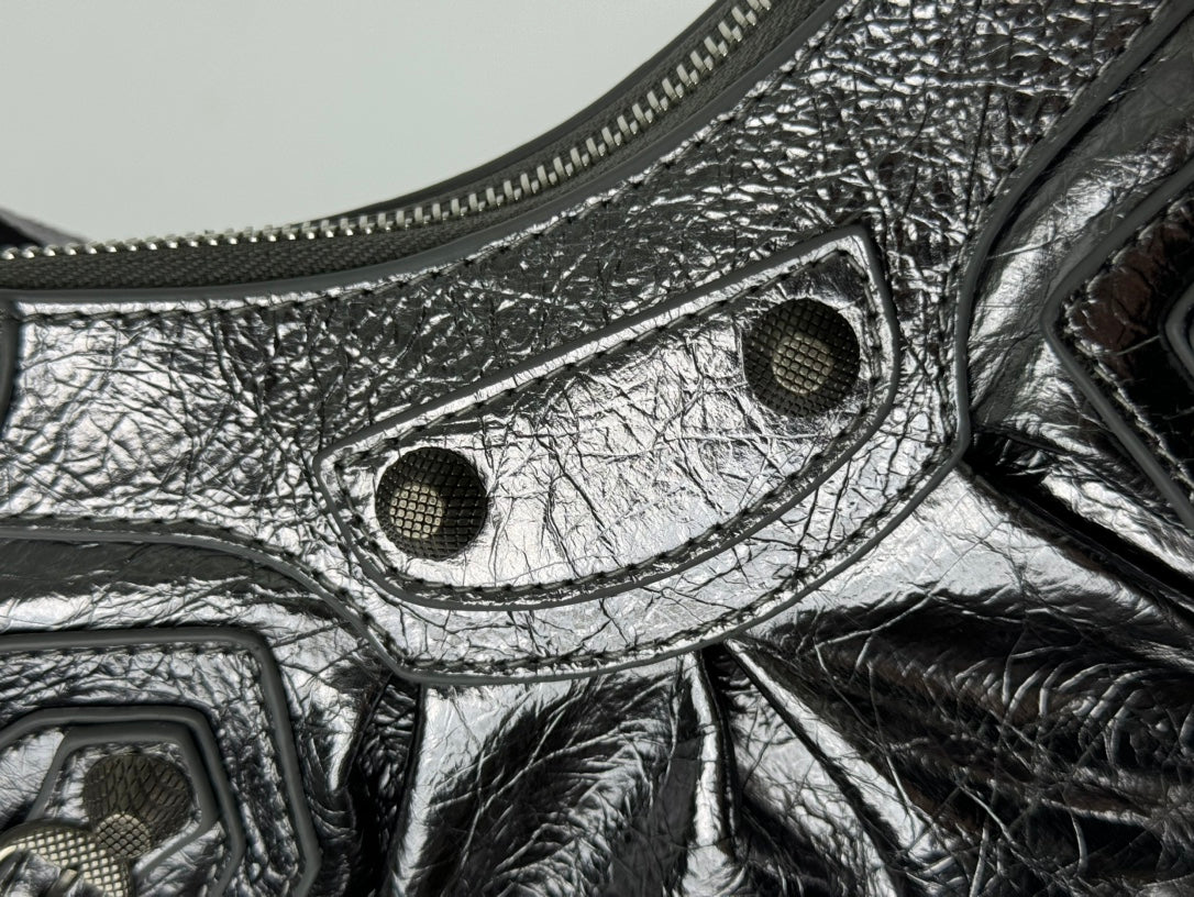 LE CAGOLE SMALL SHOULDER BAG 26 WITH RHINESTONES IN SILVER METALLIC ARENA LAMBSKIN