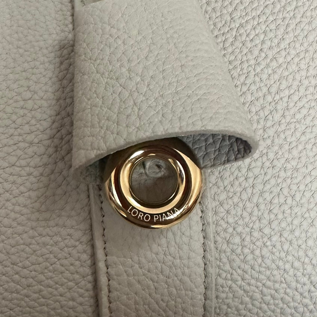 LOOM BAG 25 IN PALE GRAY SMOOTH CALFSKIN WITH GOLD HARDWARE