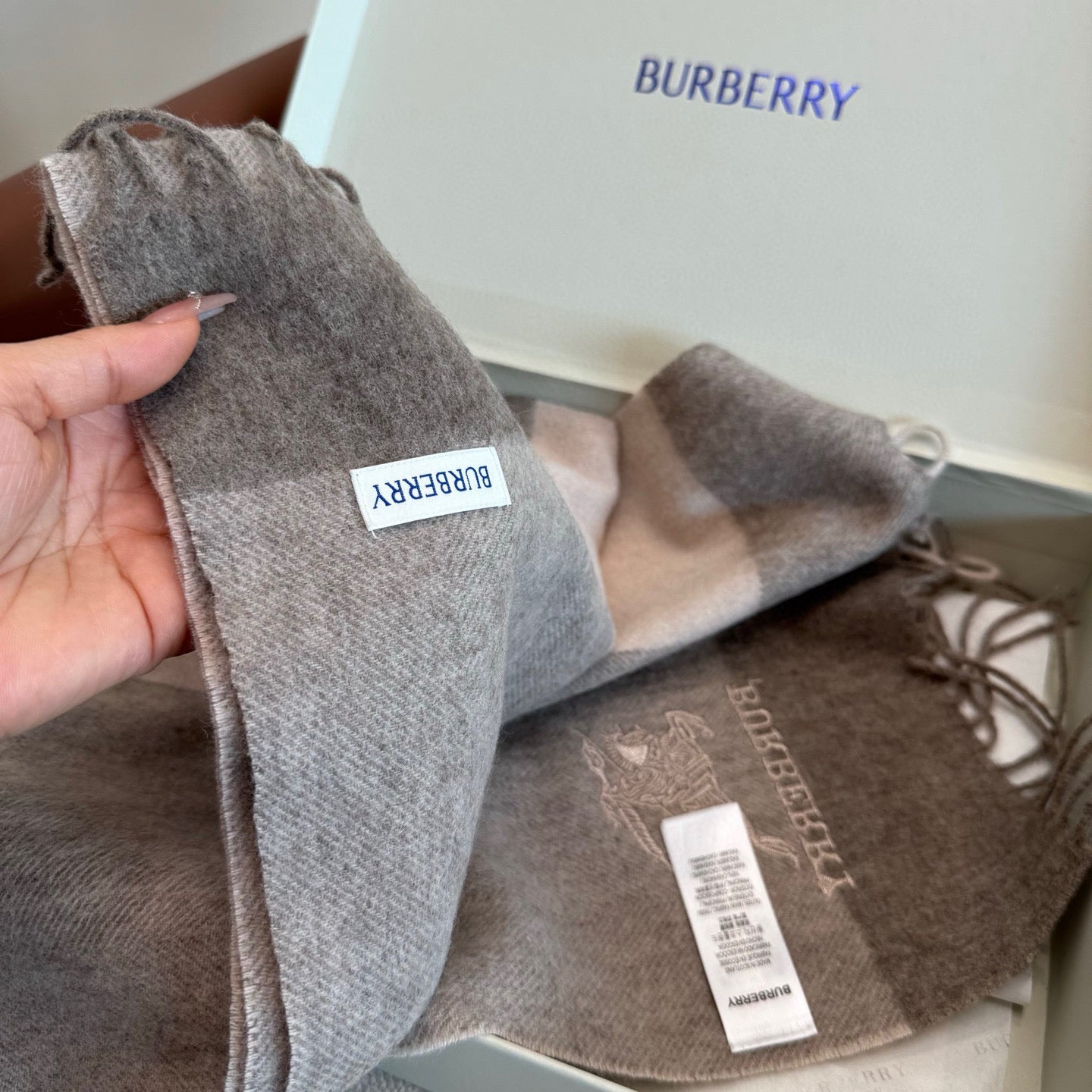 BBR Classic Embroidered Scarf 185CM Gray Brown Cashmere 292812