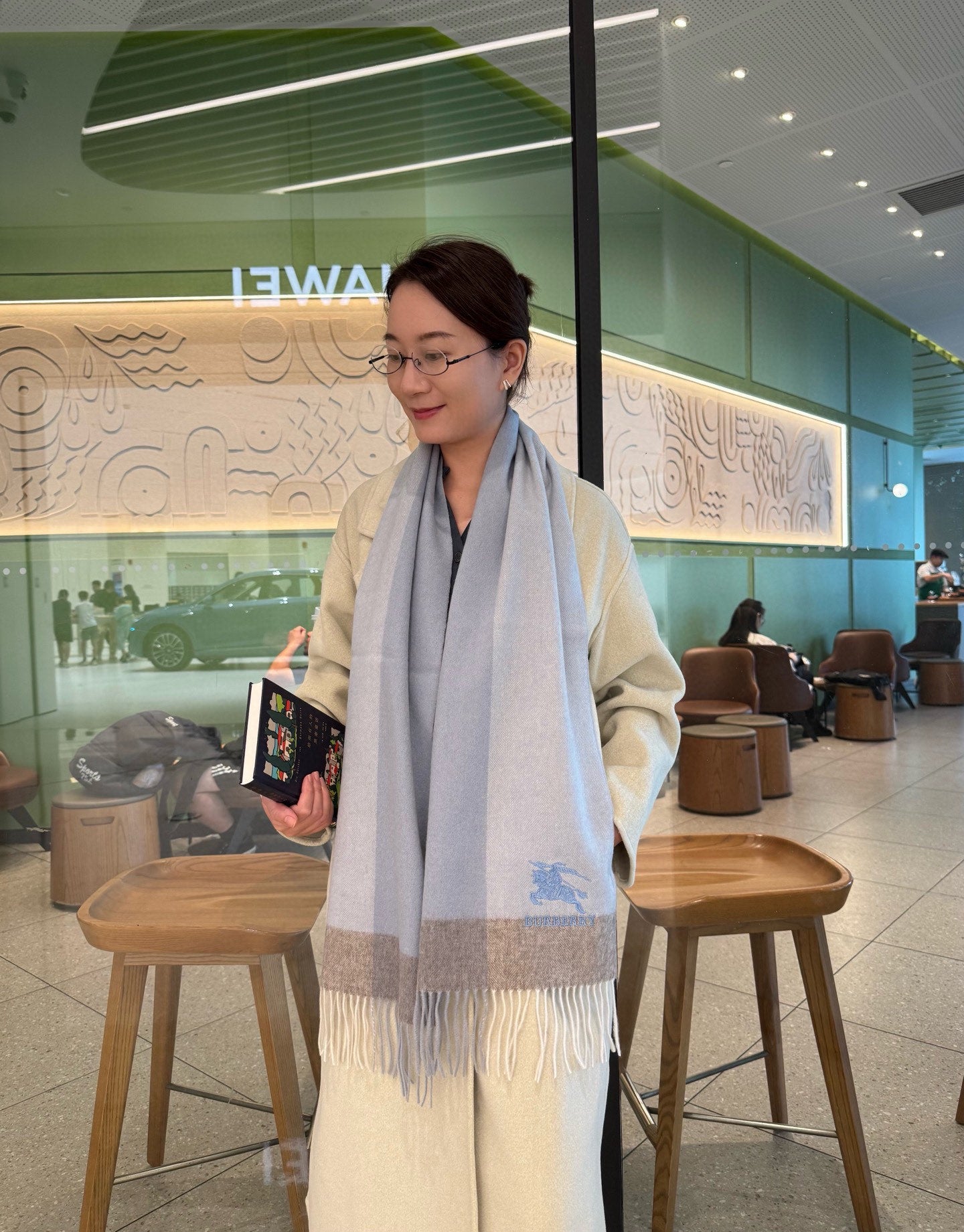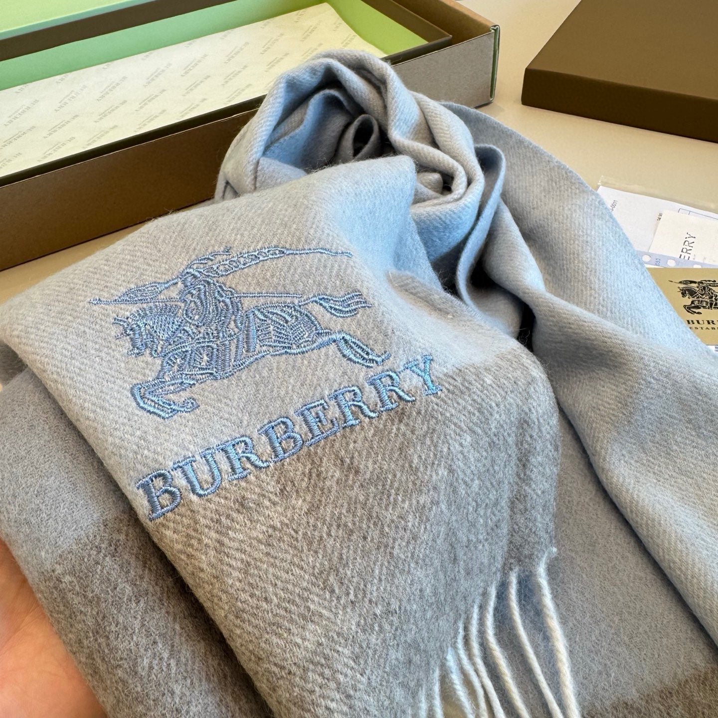 BBR Classic Embroidered Scarf 185CM Light Blue Cashmere 292813