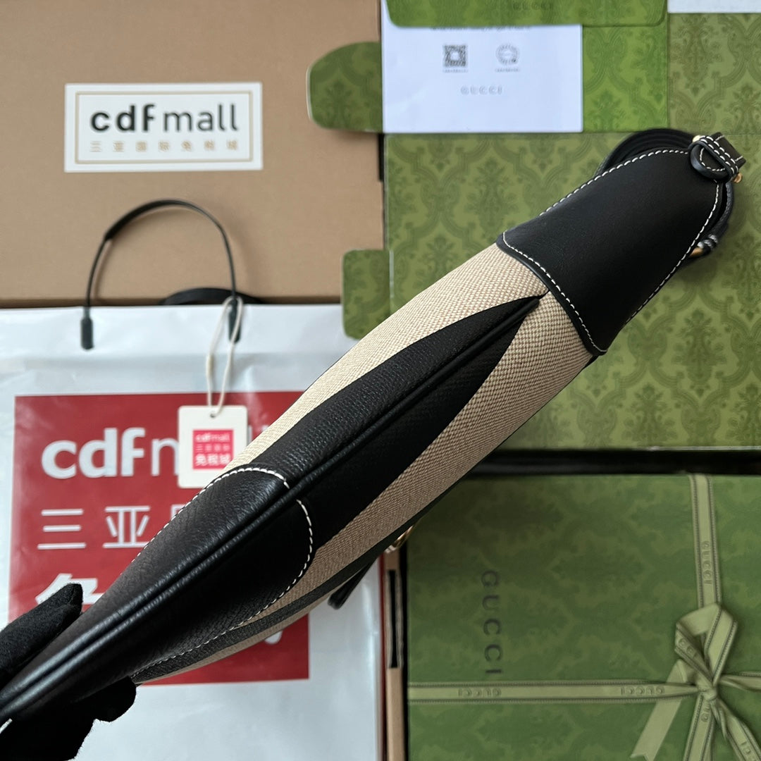 MEDIUM SHOULDER BAG 39 IN BEIGE CANVAS MIX BLACK CALFSKIN GOLD HARDWARE