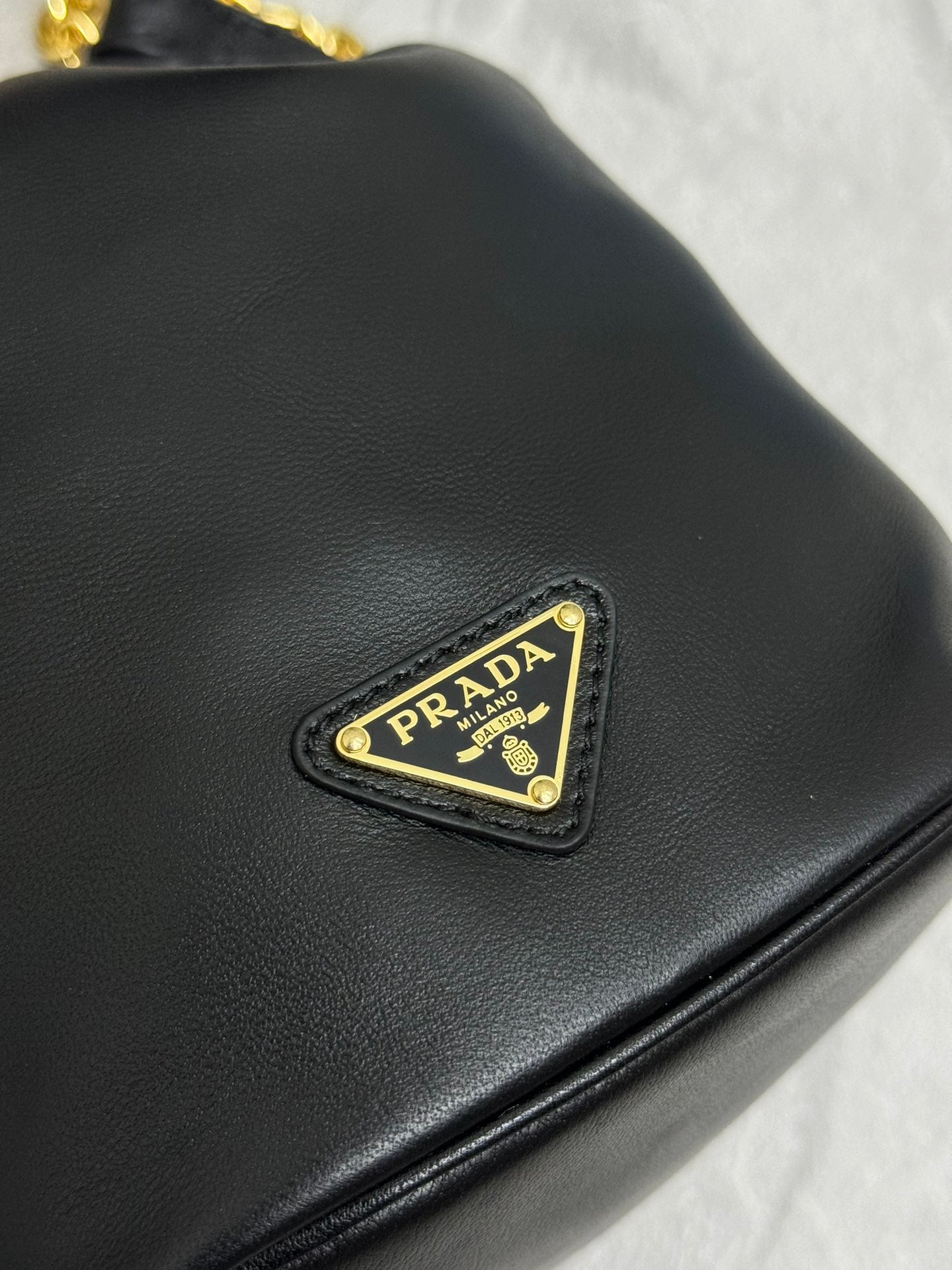MINI BUCKET BAG 19 IN BLACK SOFT NAPPA LAMBSKIN GOLD HARDWARE