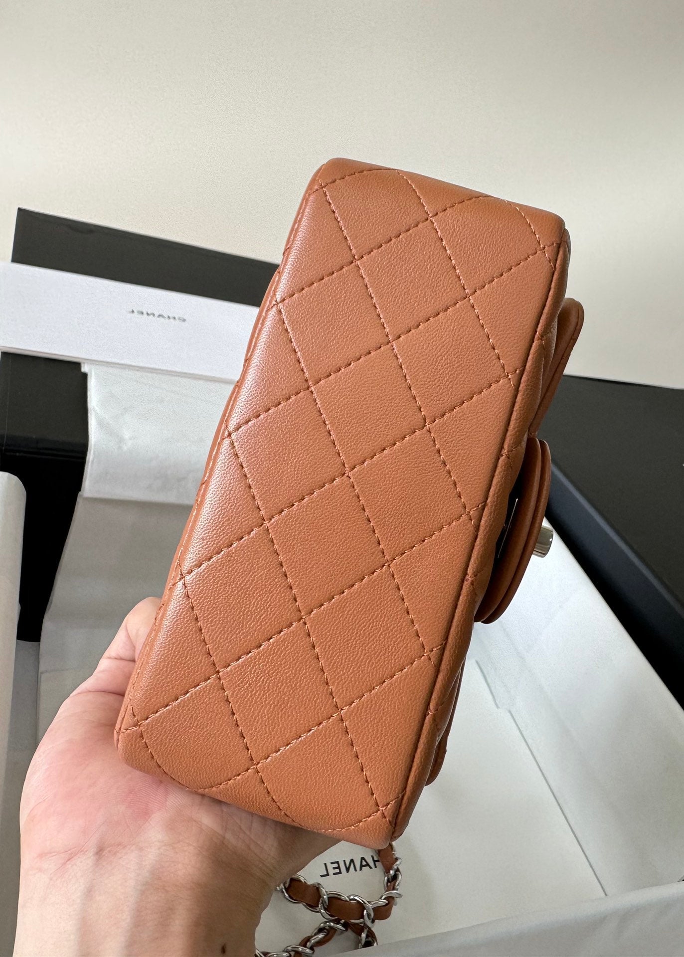 mini flap bag 17 brown lambskin silver hardware