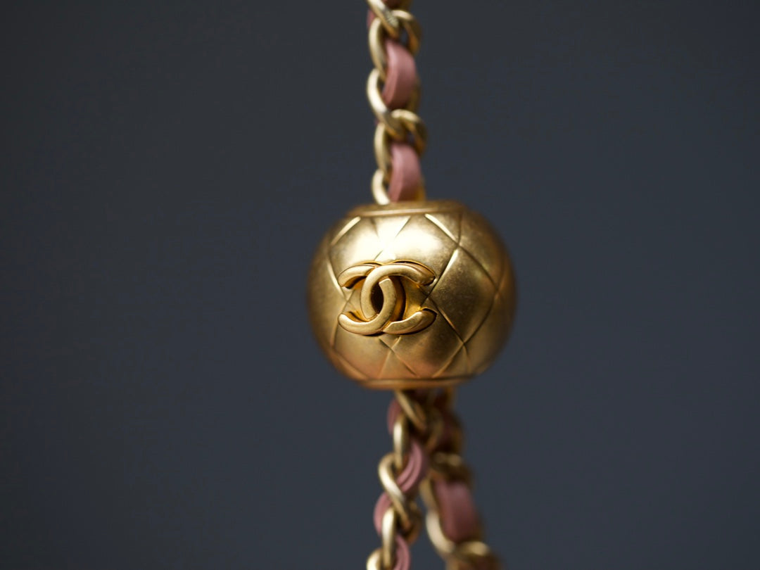 - Color: Light Pink leather, Gold hardware