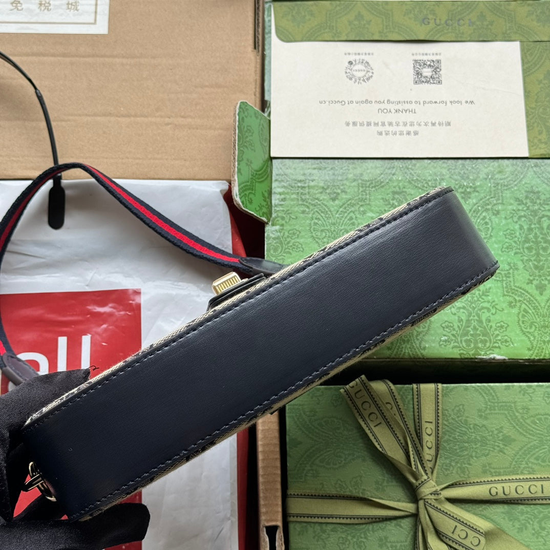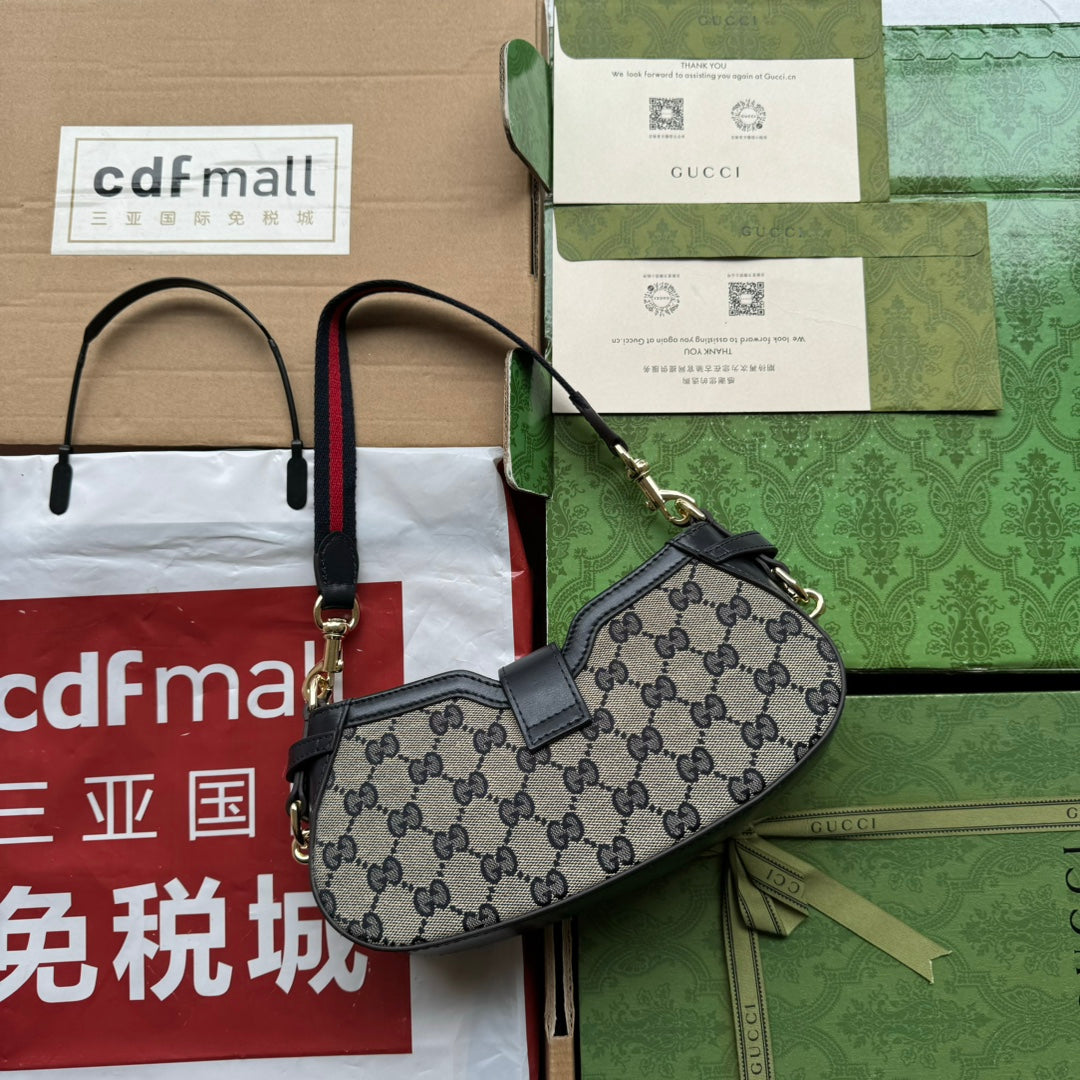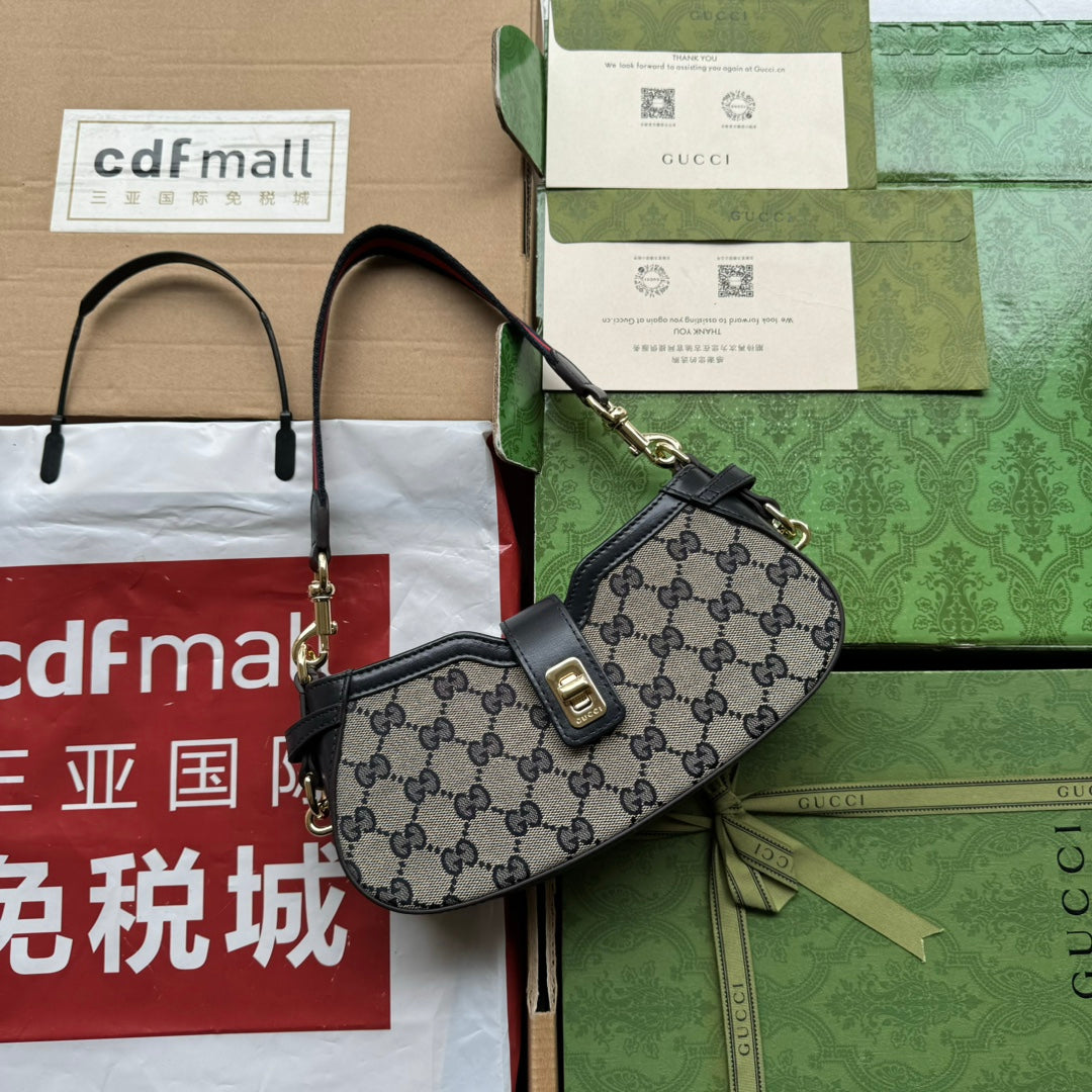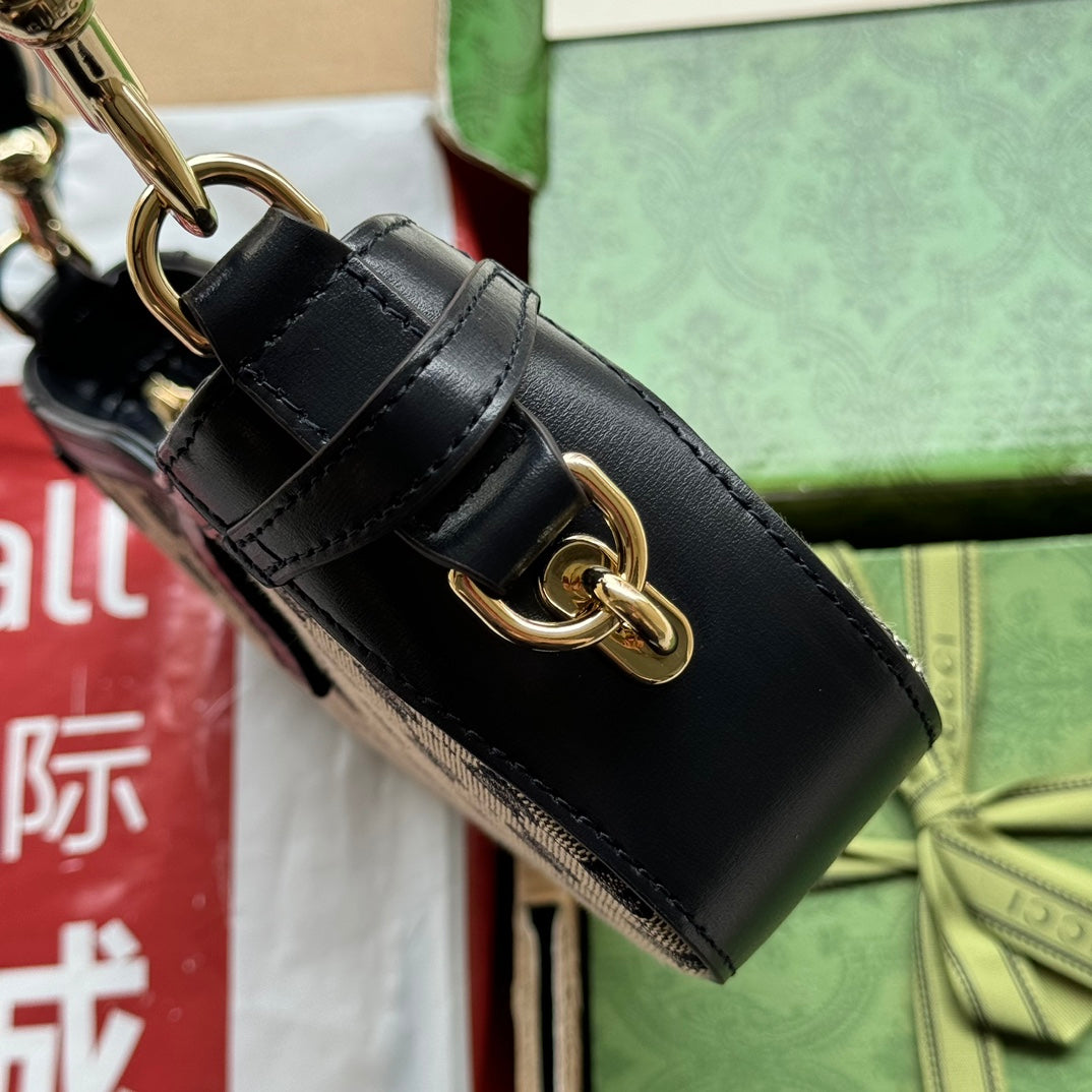 MOON SIDE SHOULDER BAG 24 IN BEIGE CANVAS AND BLACK LEATHER TRIM