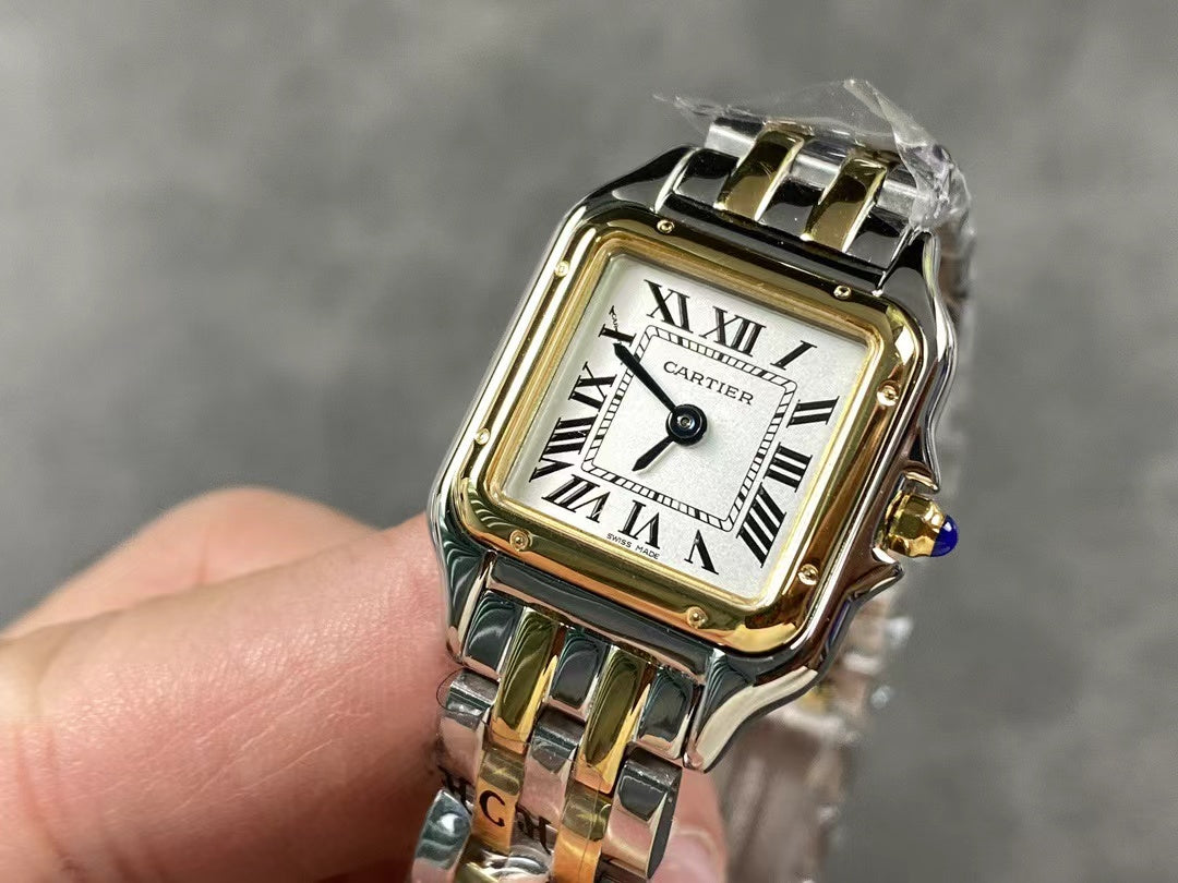 PANTHERE DE CARTIE 22MM QUARTZ GOLD STEEL WHITE DIAL